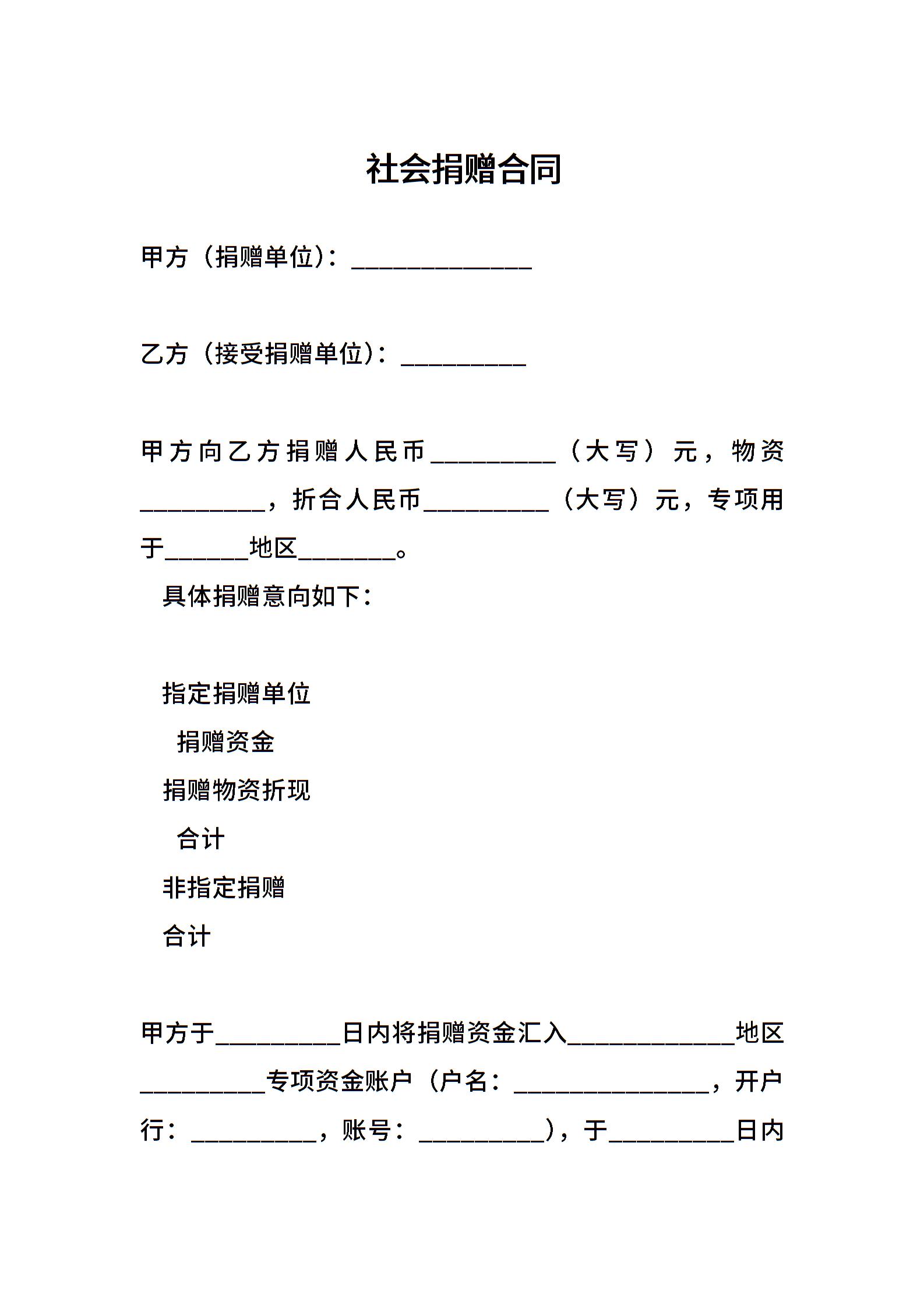 社会捐赠合同