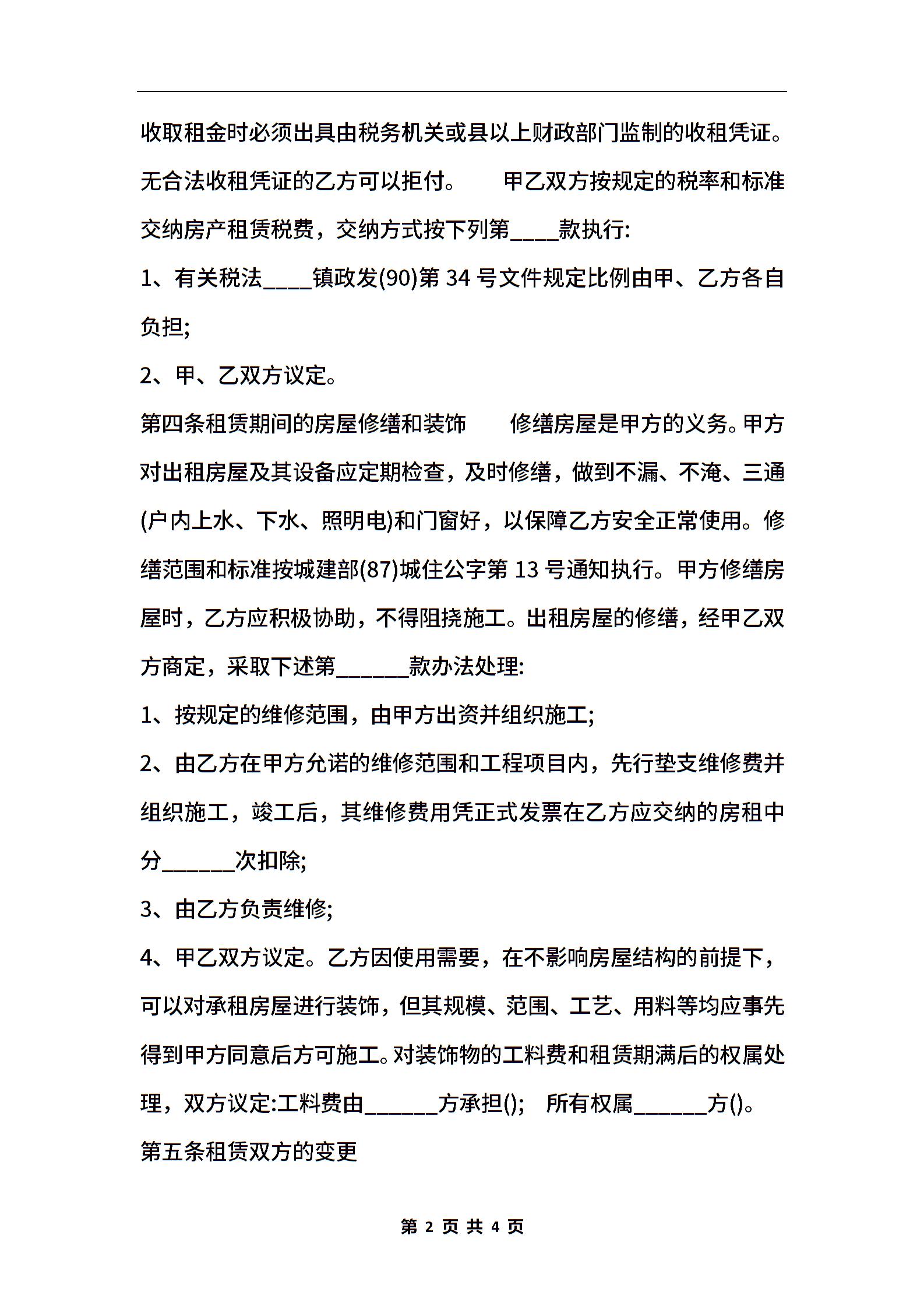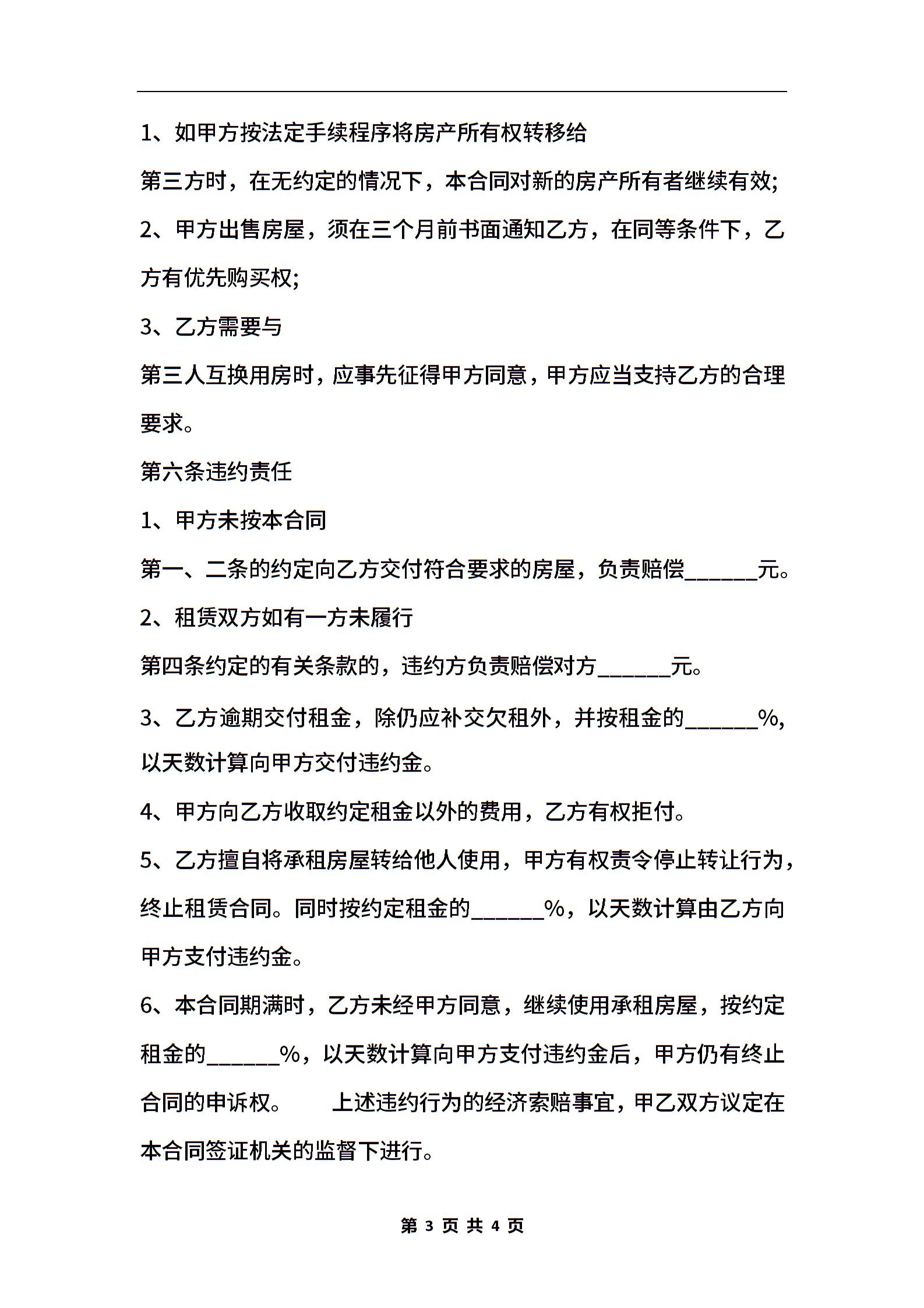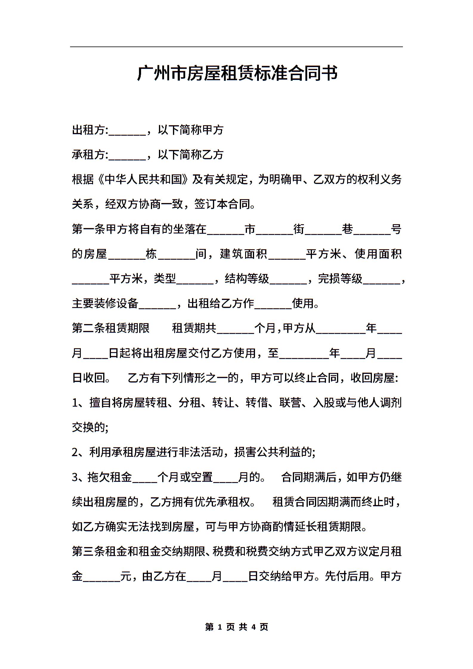 广州市房屋租赁标准合同书