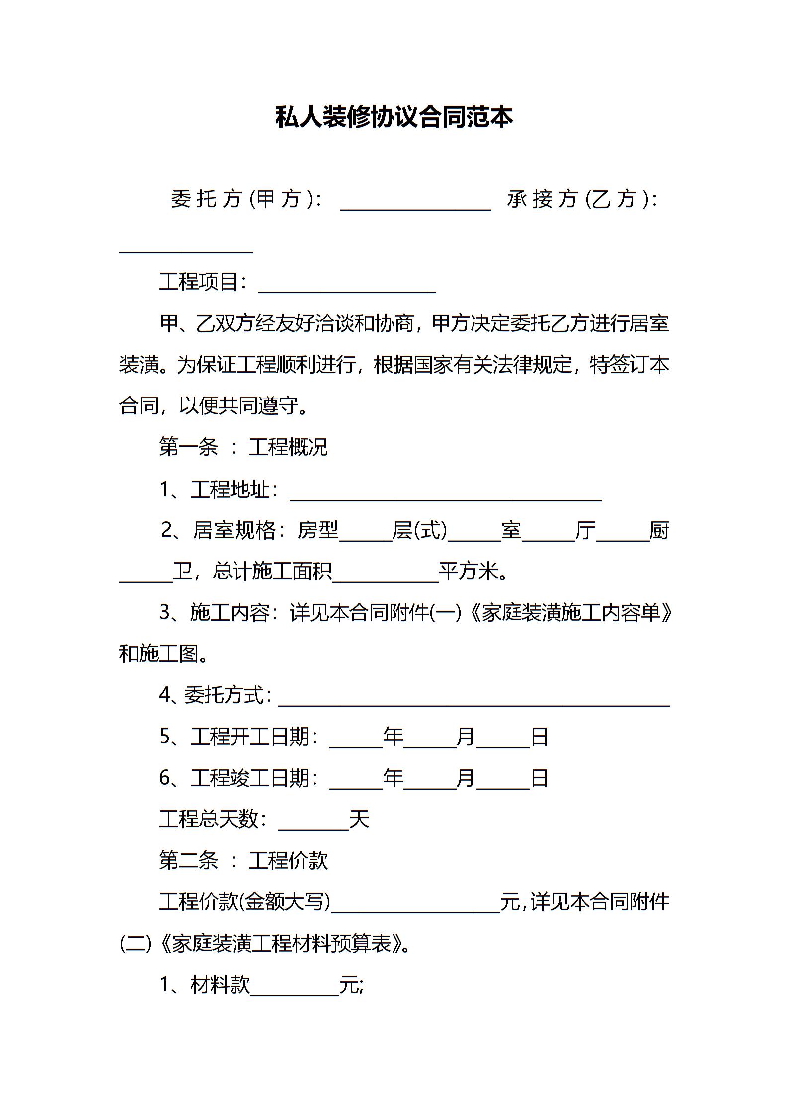 私人装修协议合同范本