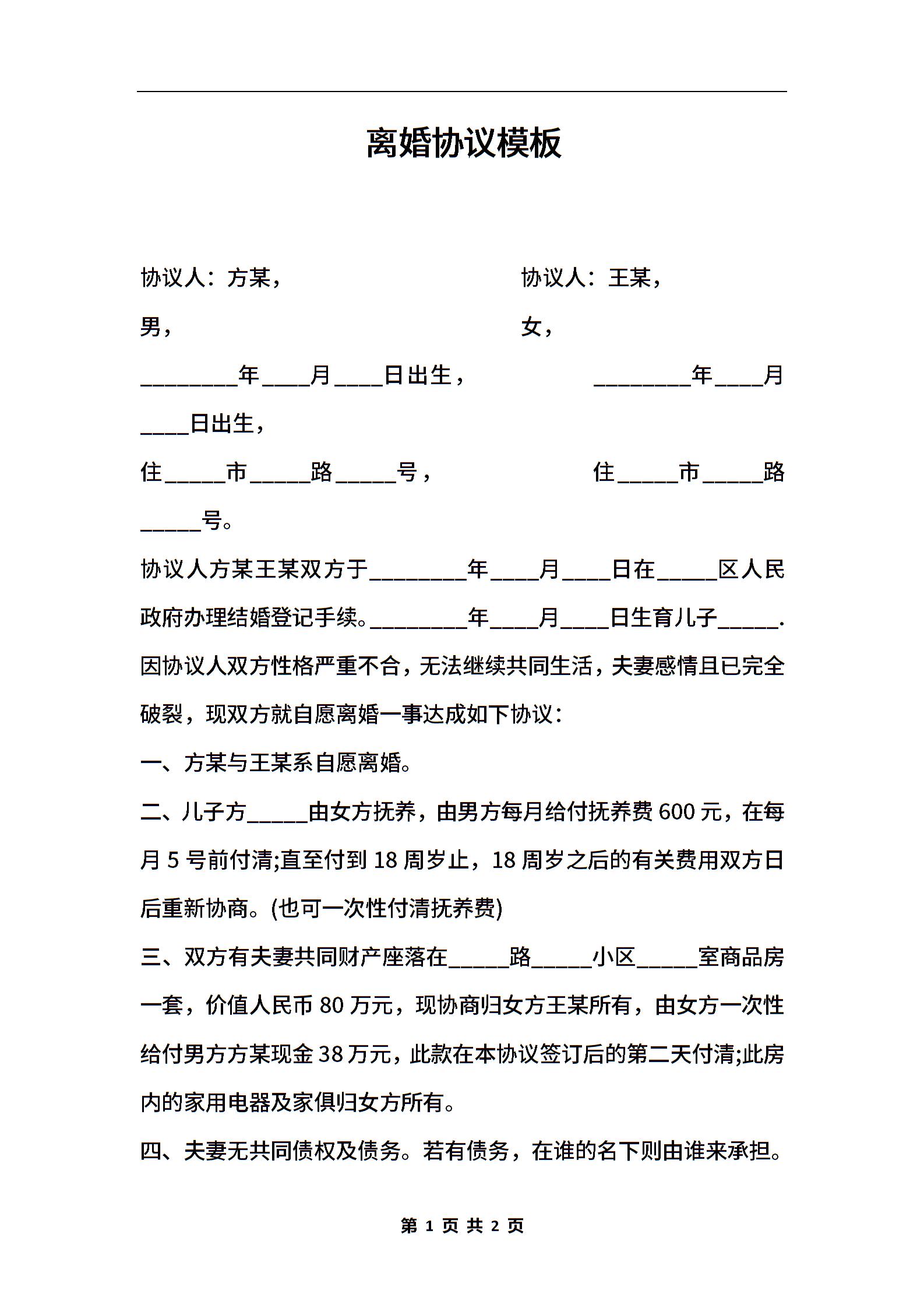 当前位置:量子办公 > 合同模板 > 离婚协议 >