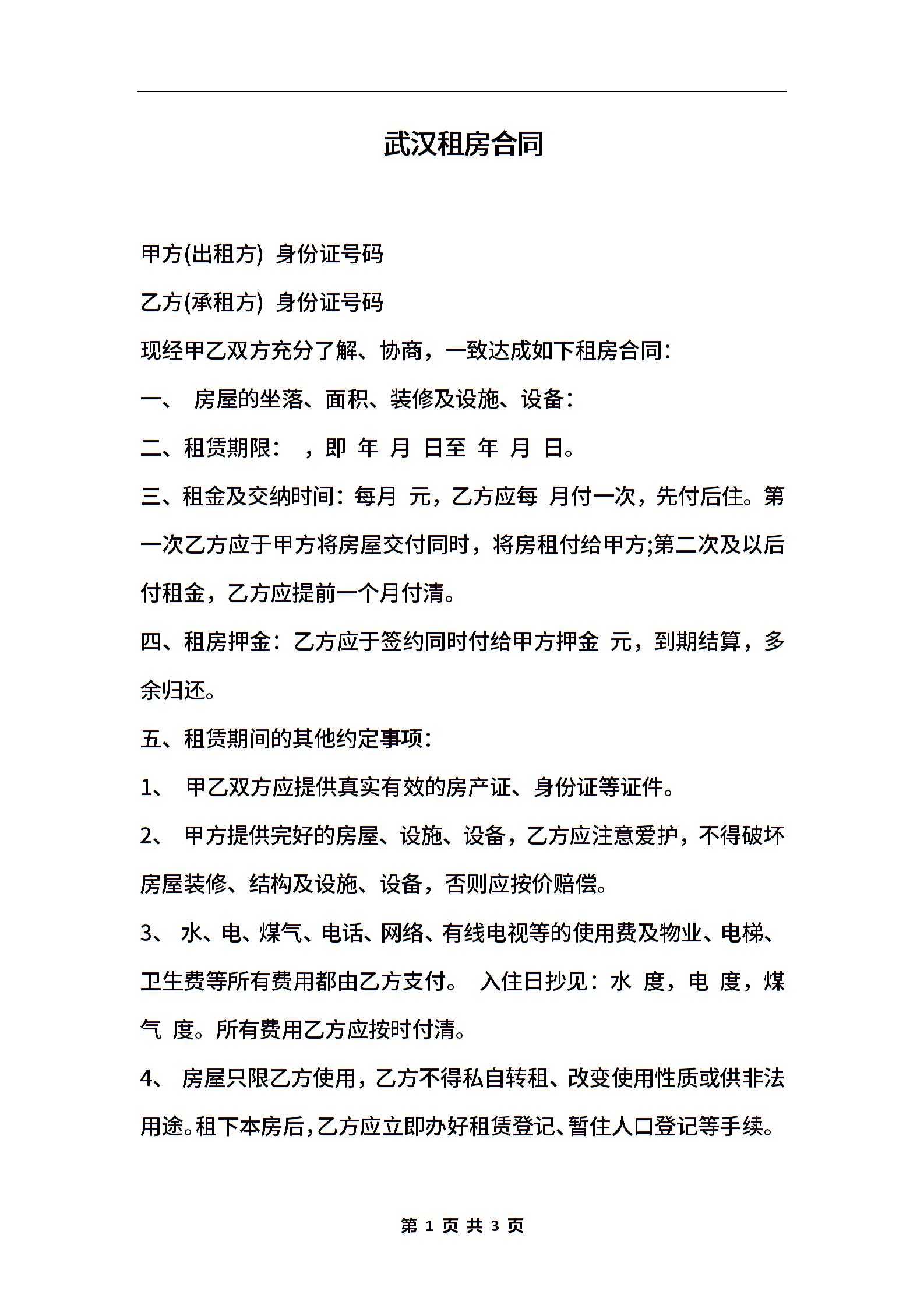 武汉租房合同