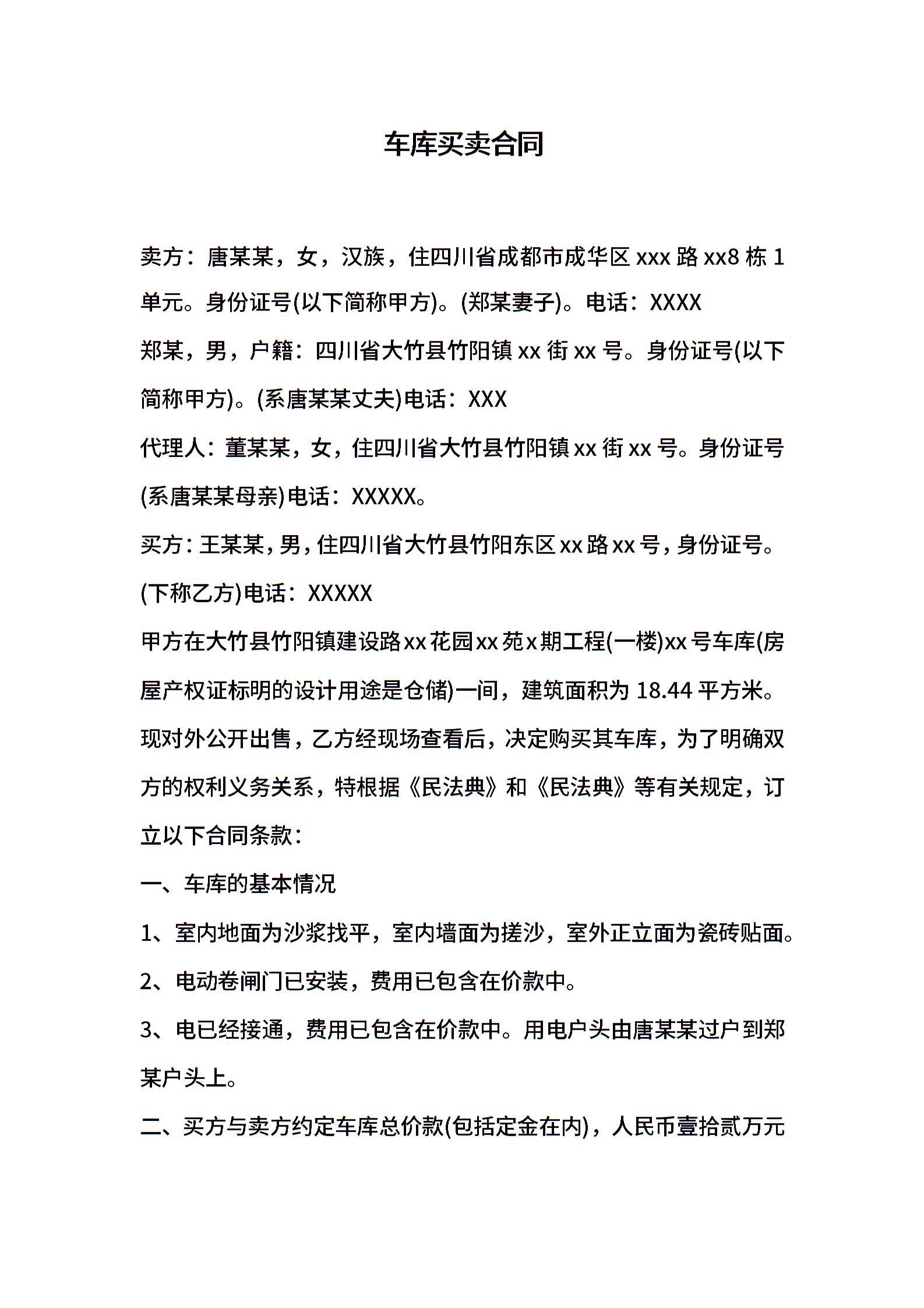 车库买卖合同