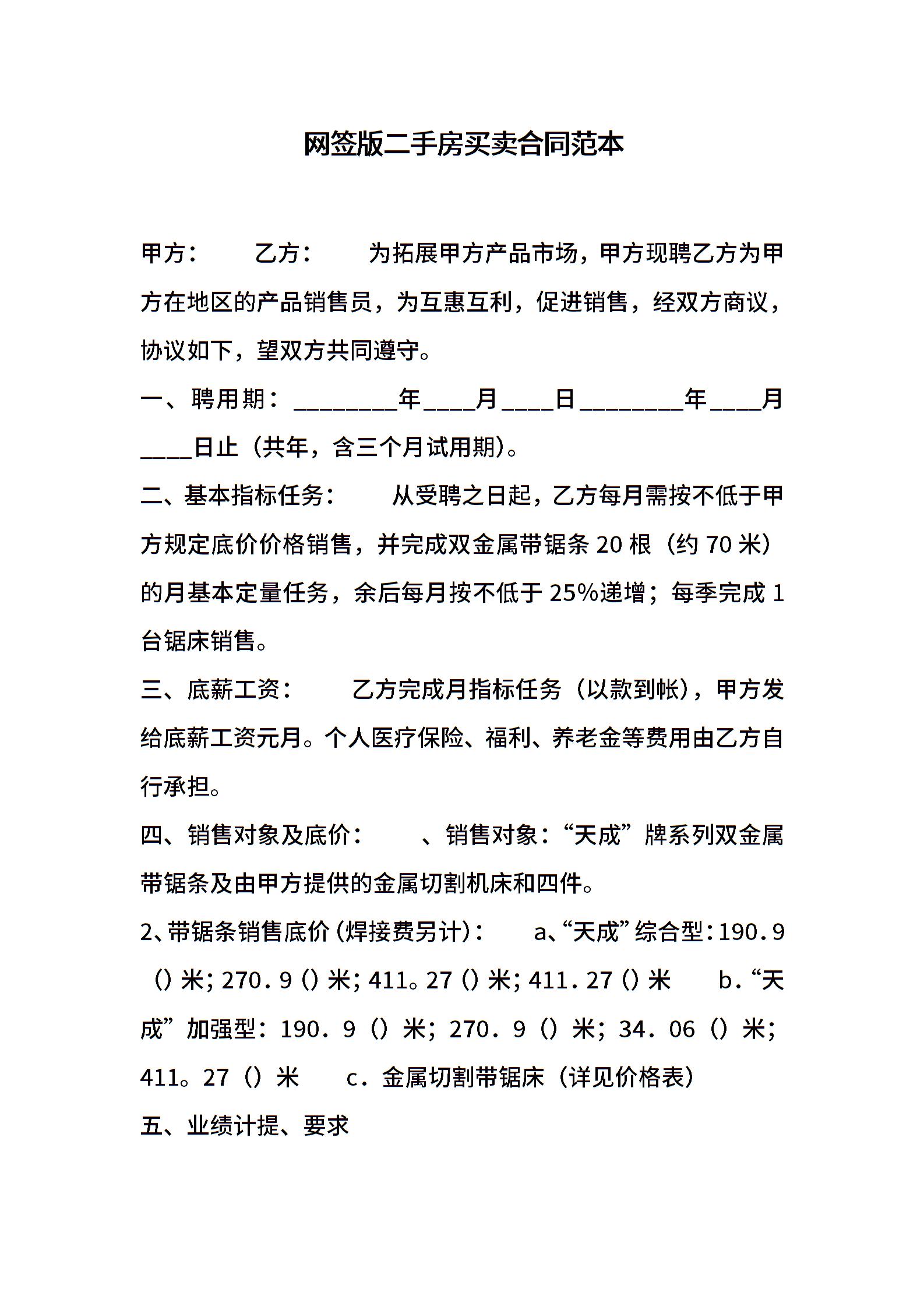 网签版二手房买卖合同范本