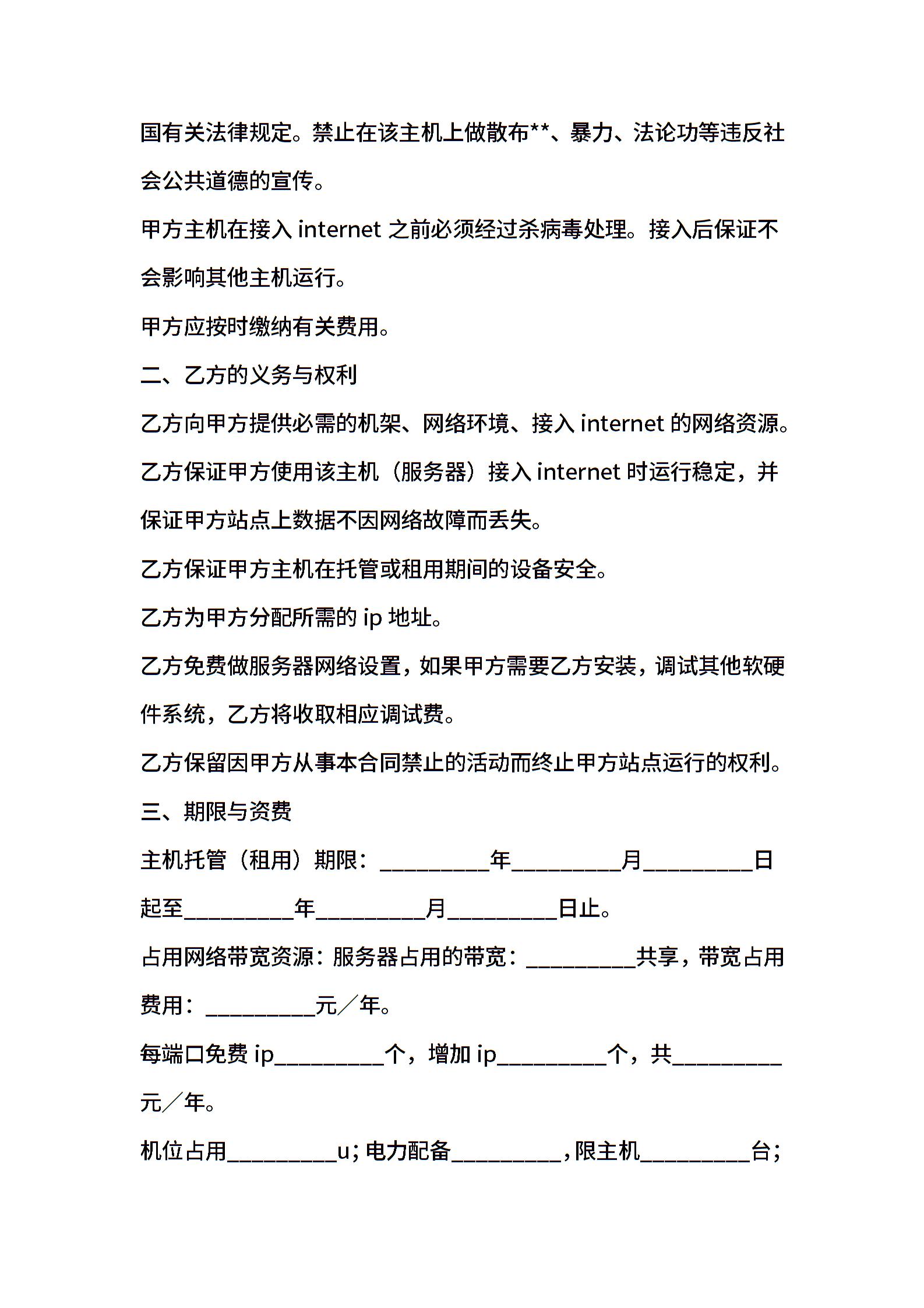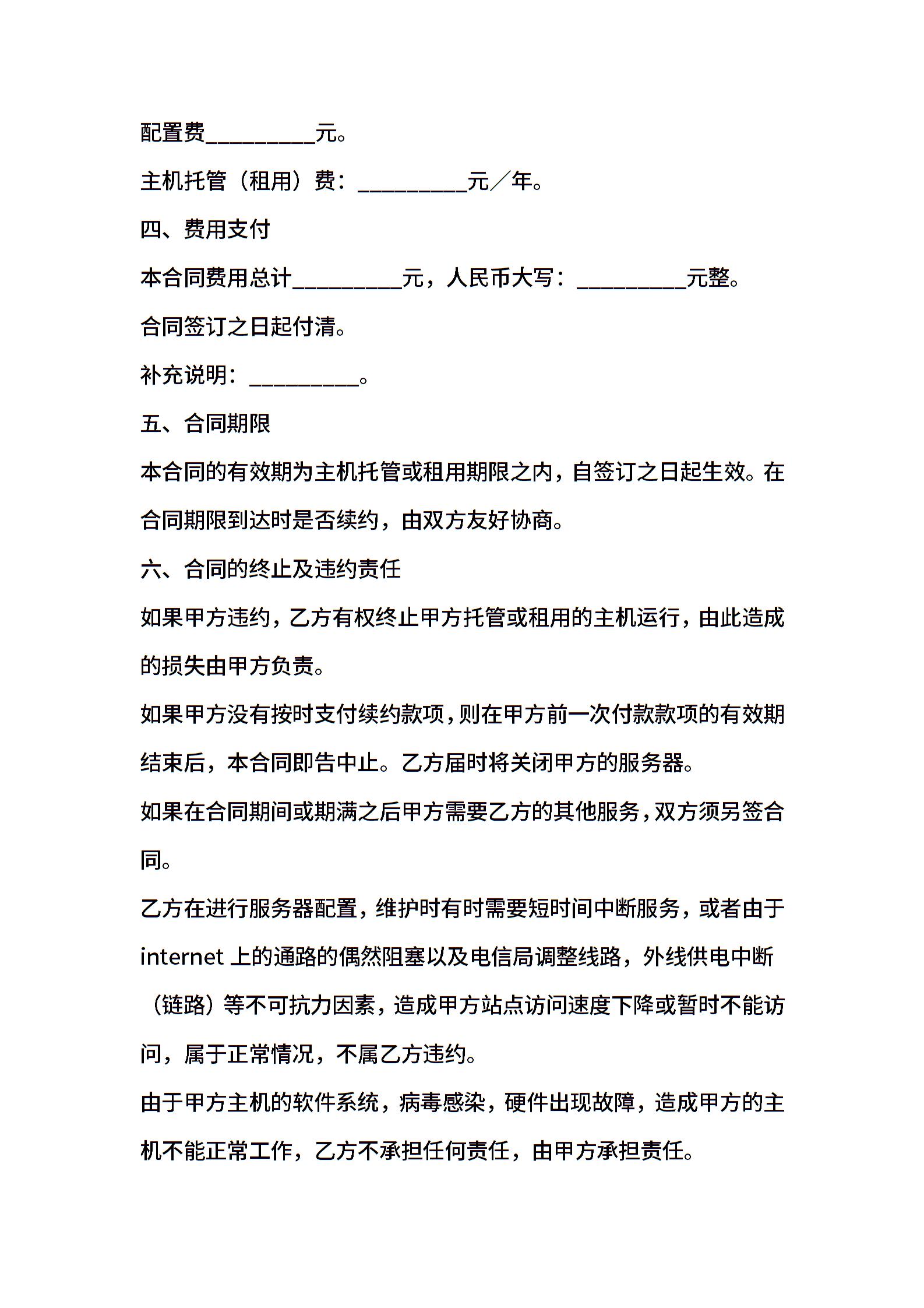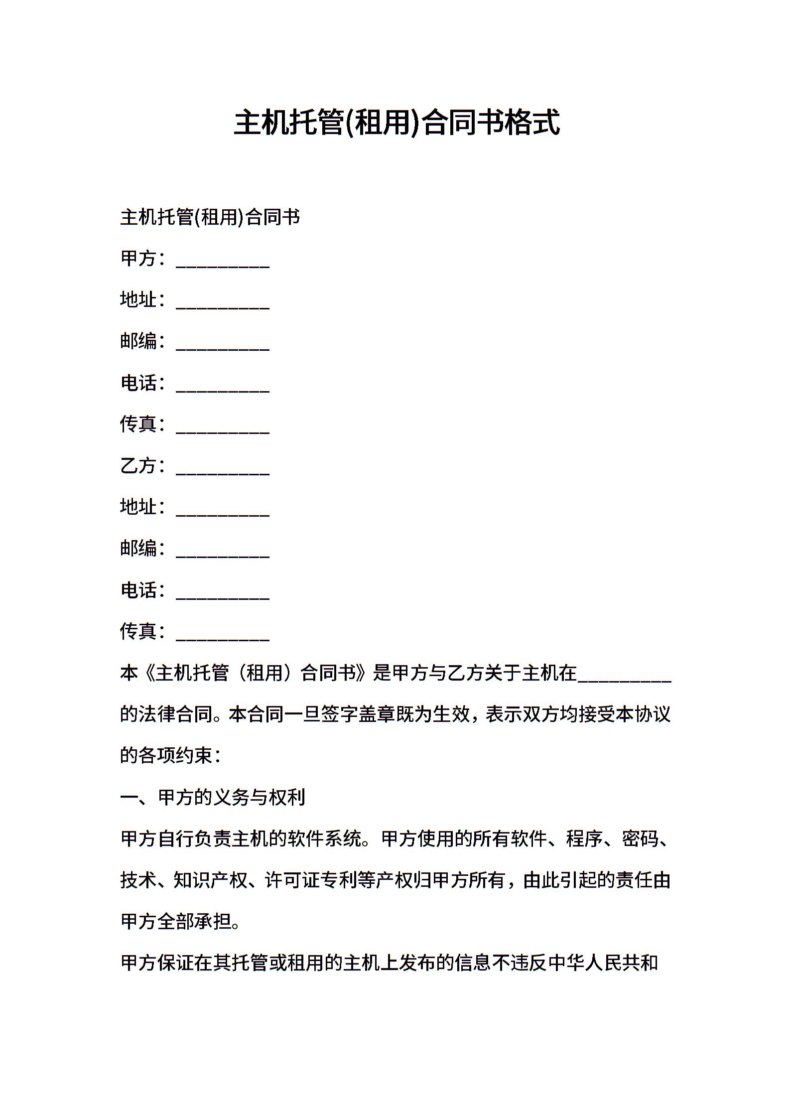 2021年主机托管(租用)合同书格式