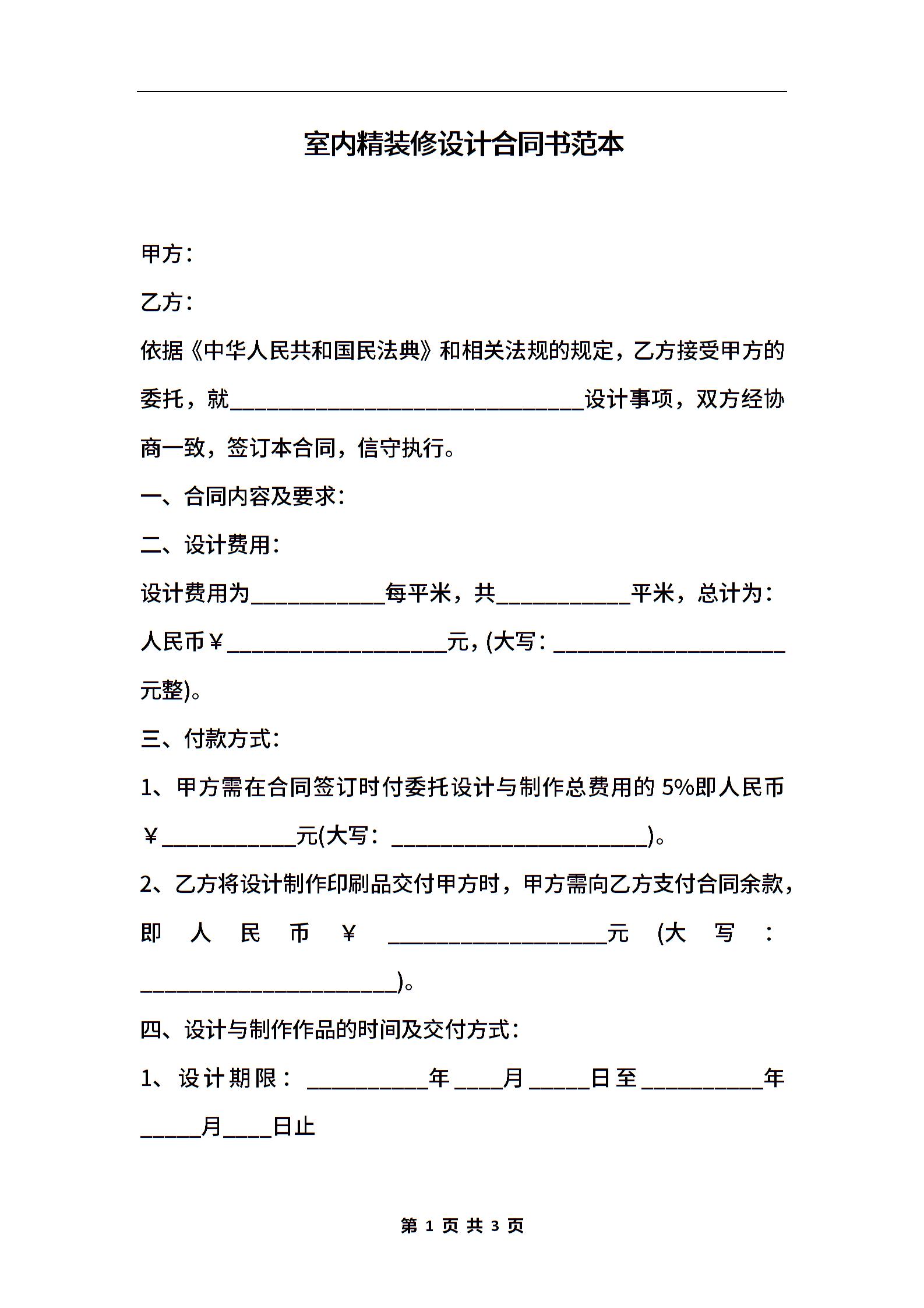 室内精装修设计合同书范本