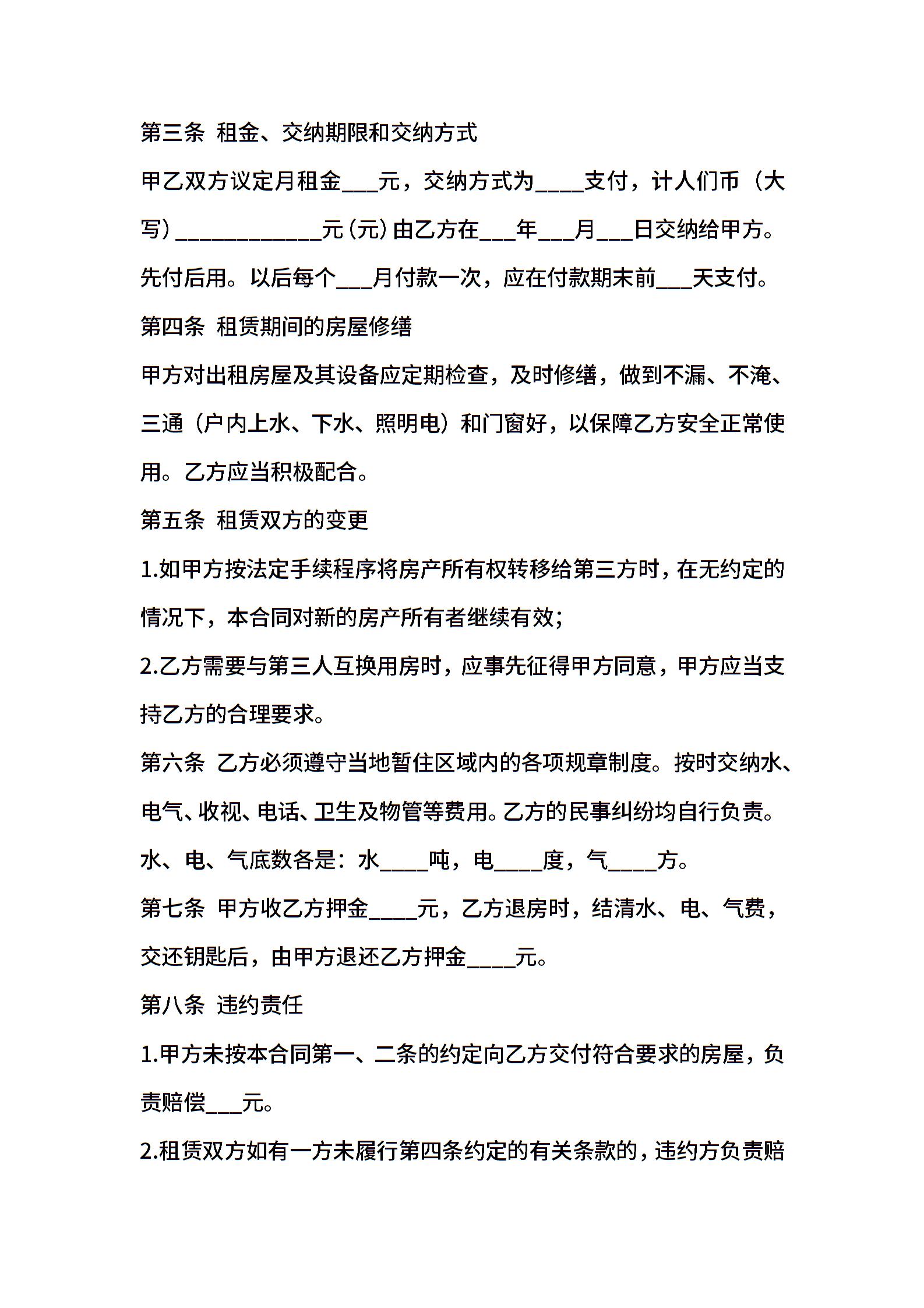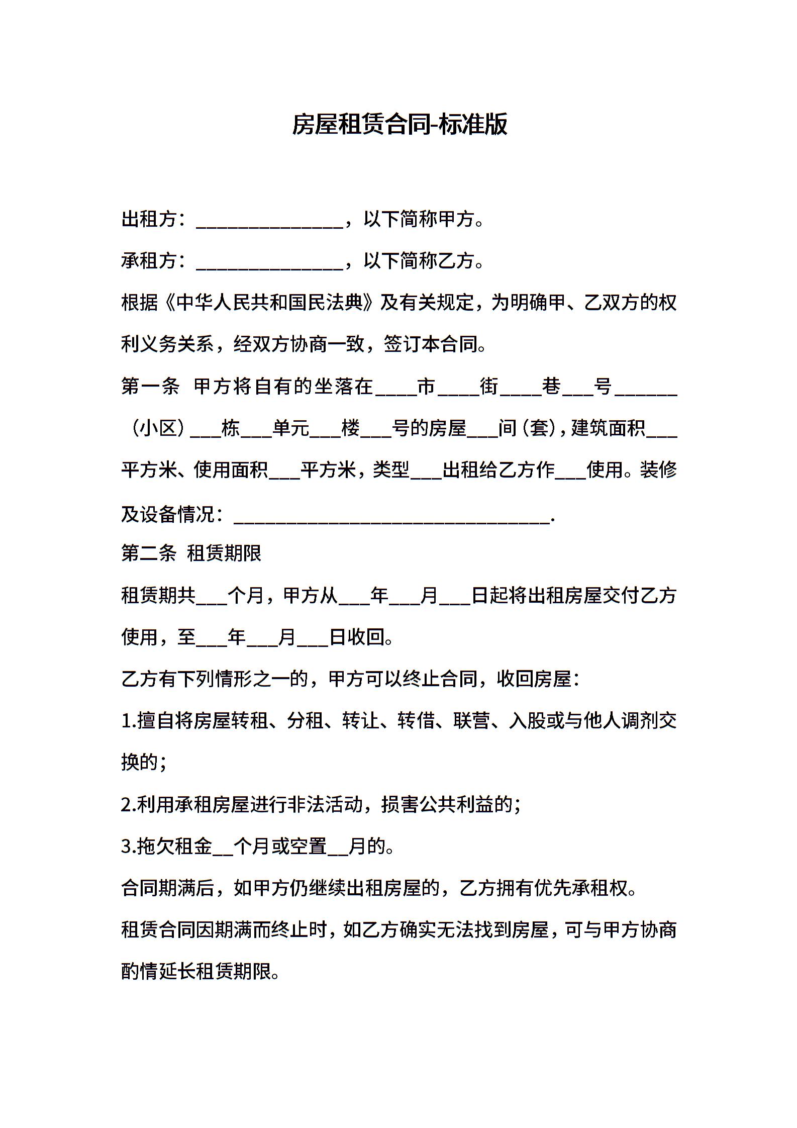房屋租赁合同-标准版