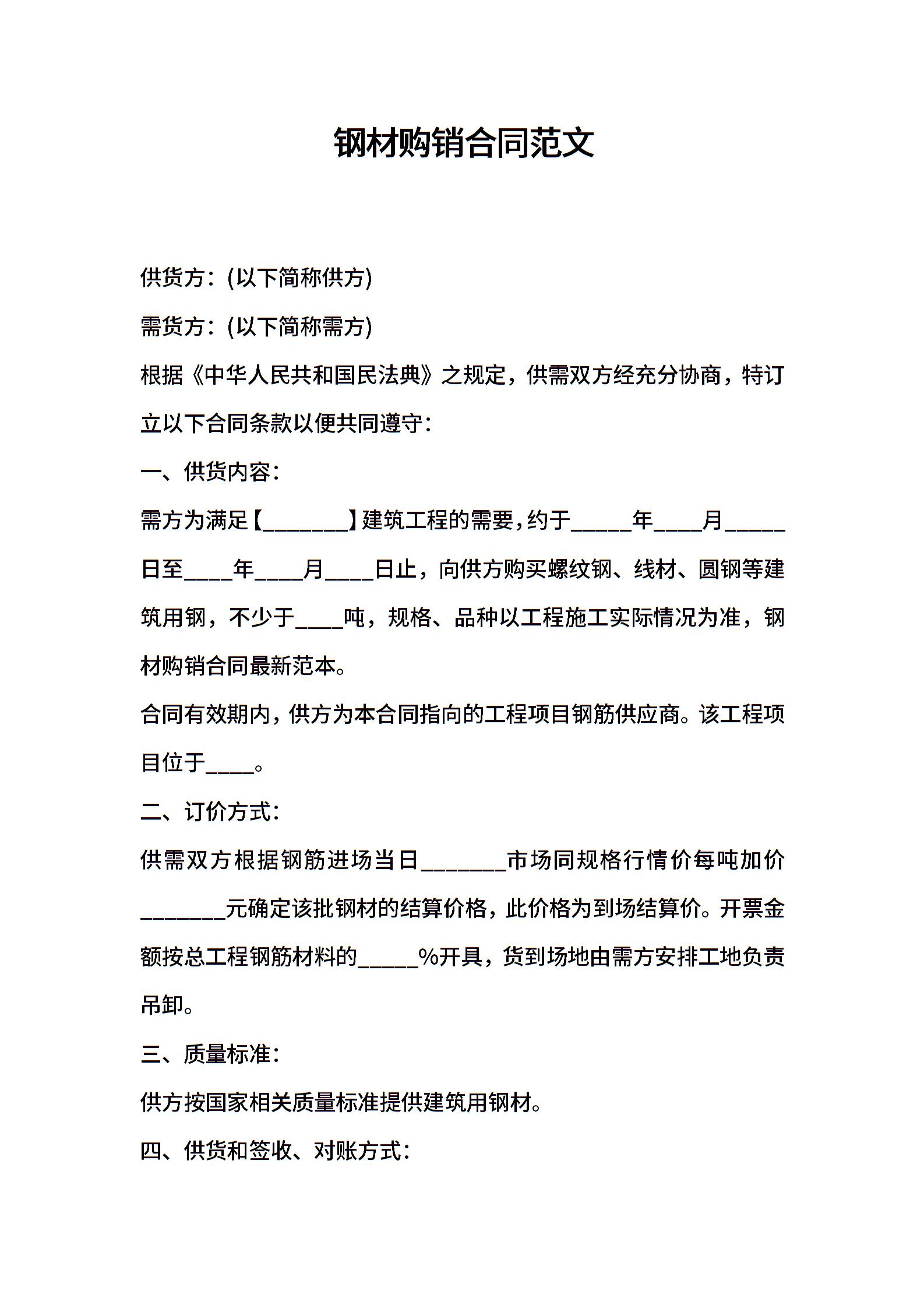 钢材购销合同范文