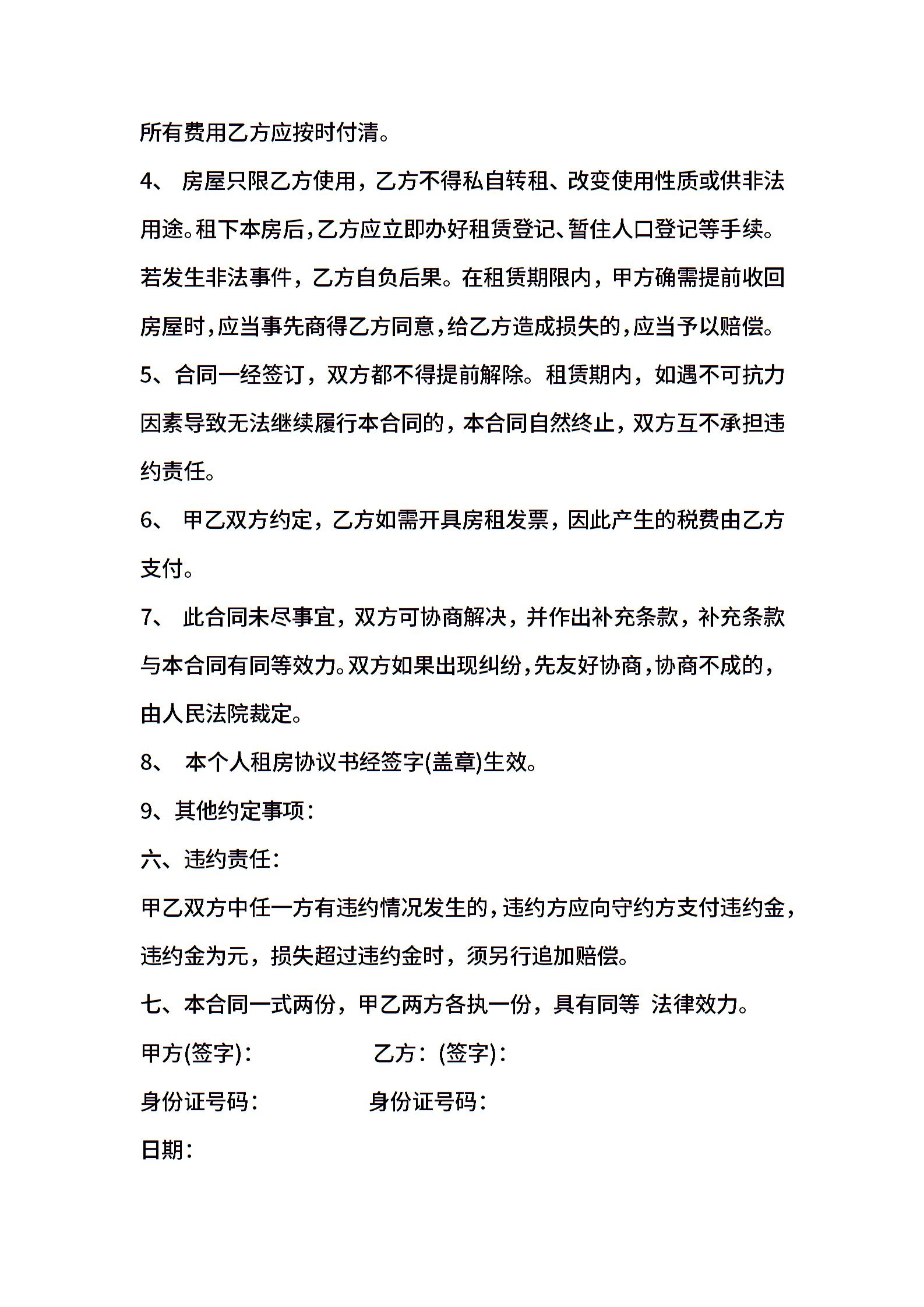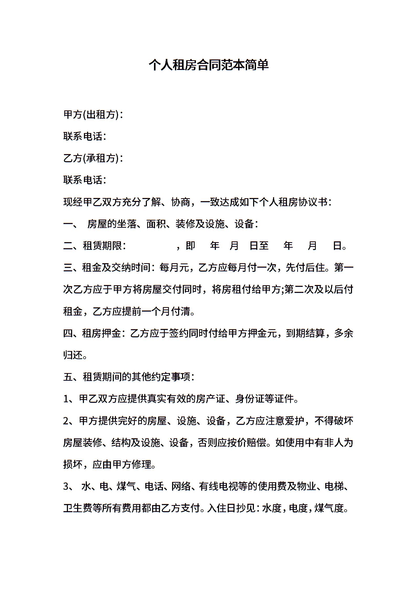 个人租房合同范本简单