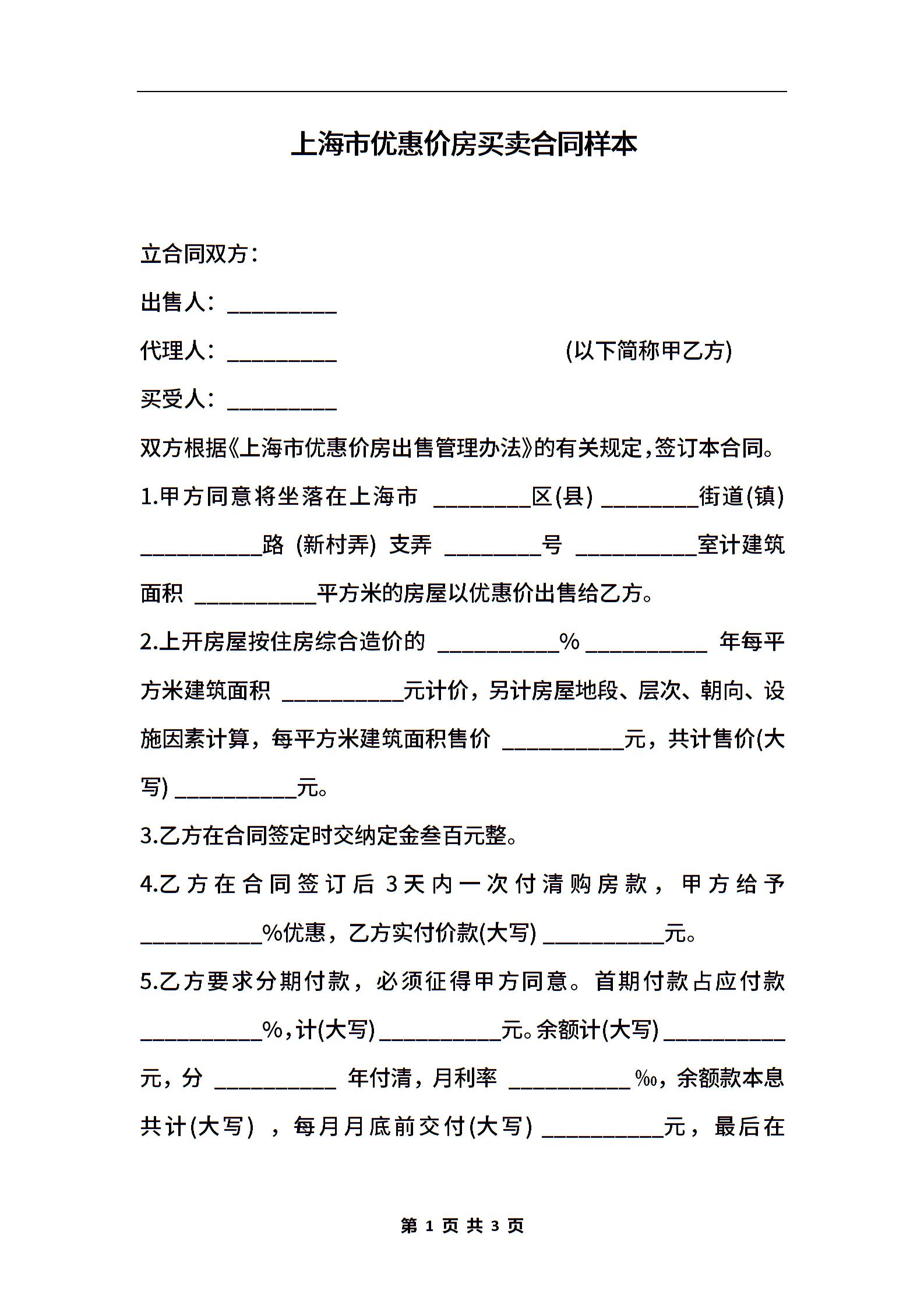 上海市优惠价房买卖合同样本