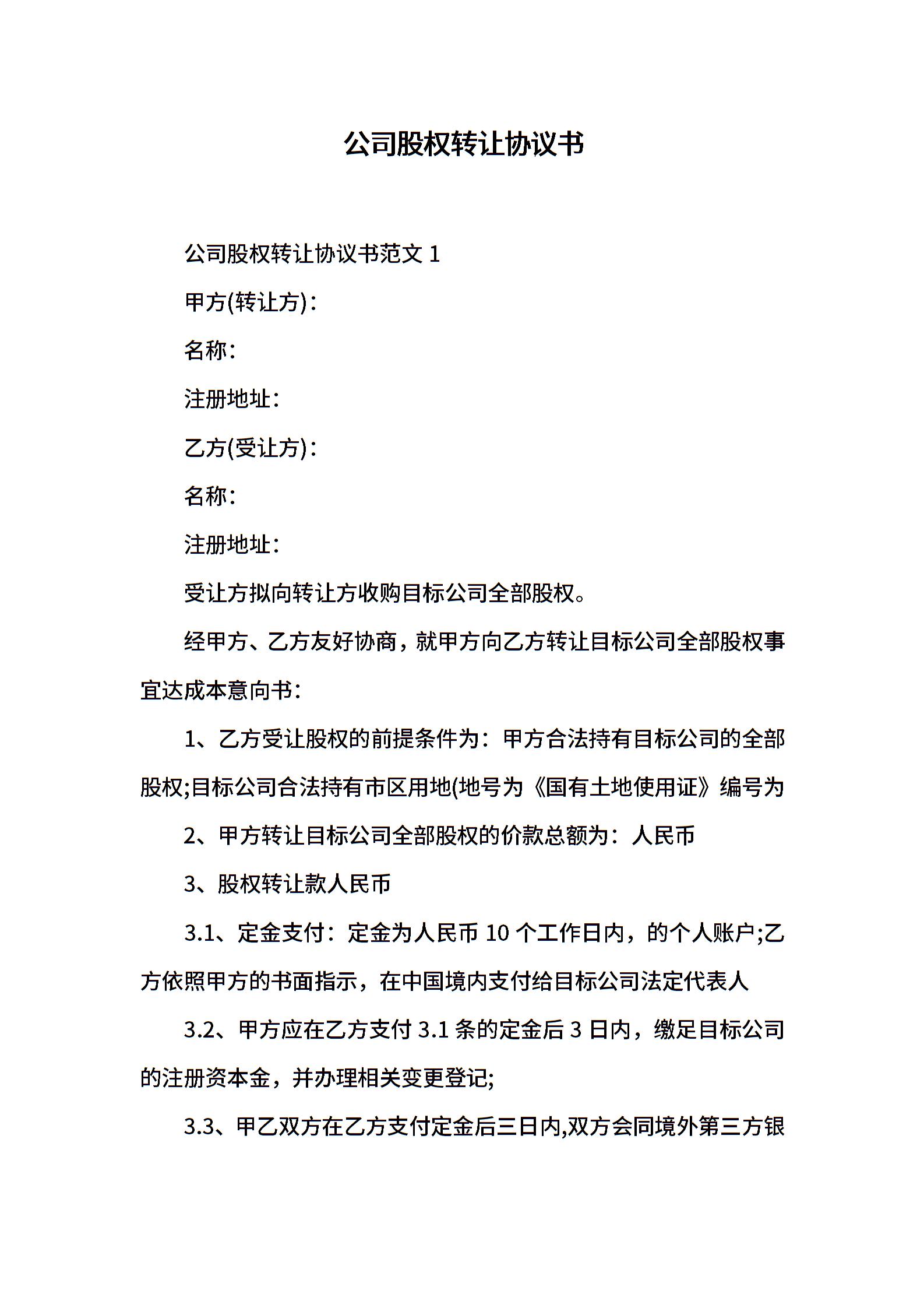 公司股权转让协议书