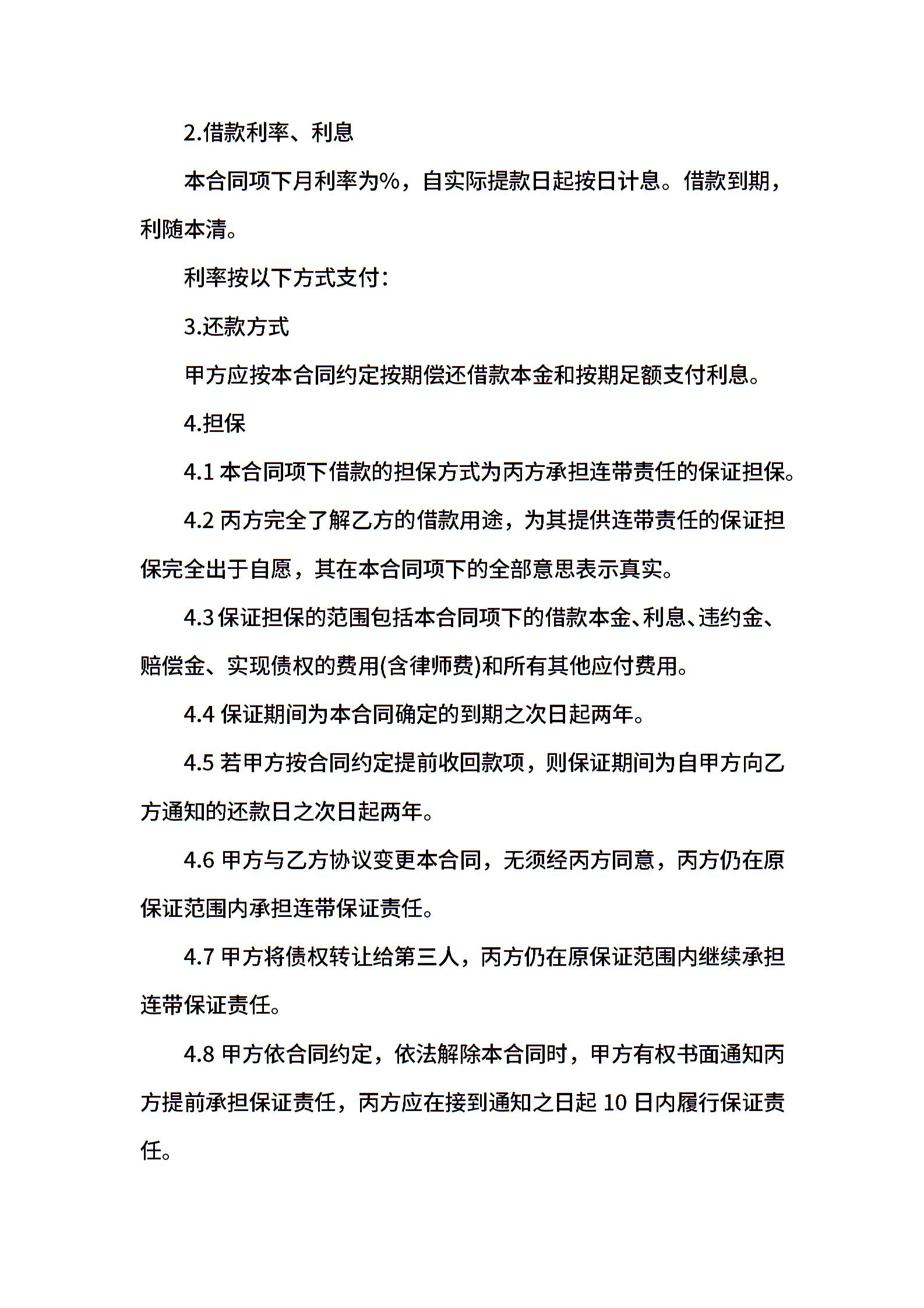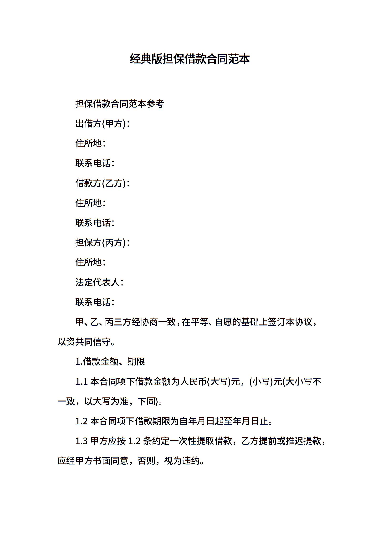 经典版担保借款合同范本