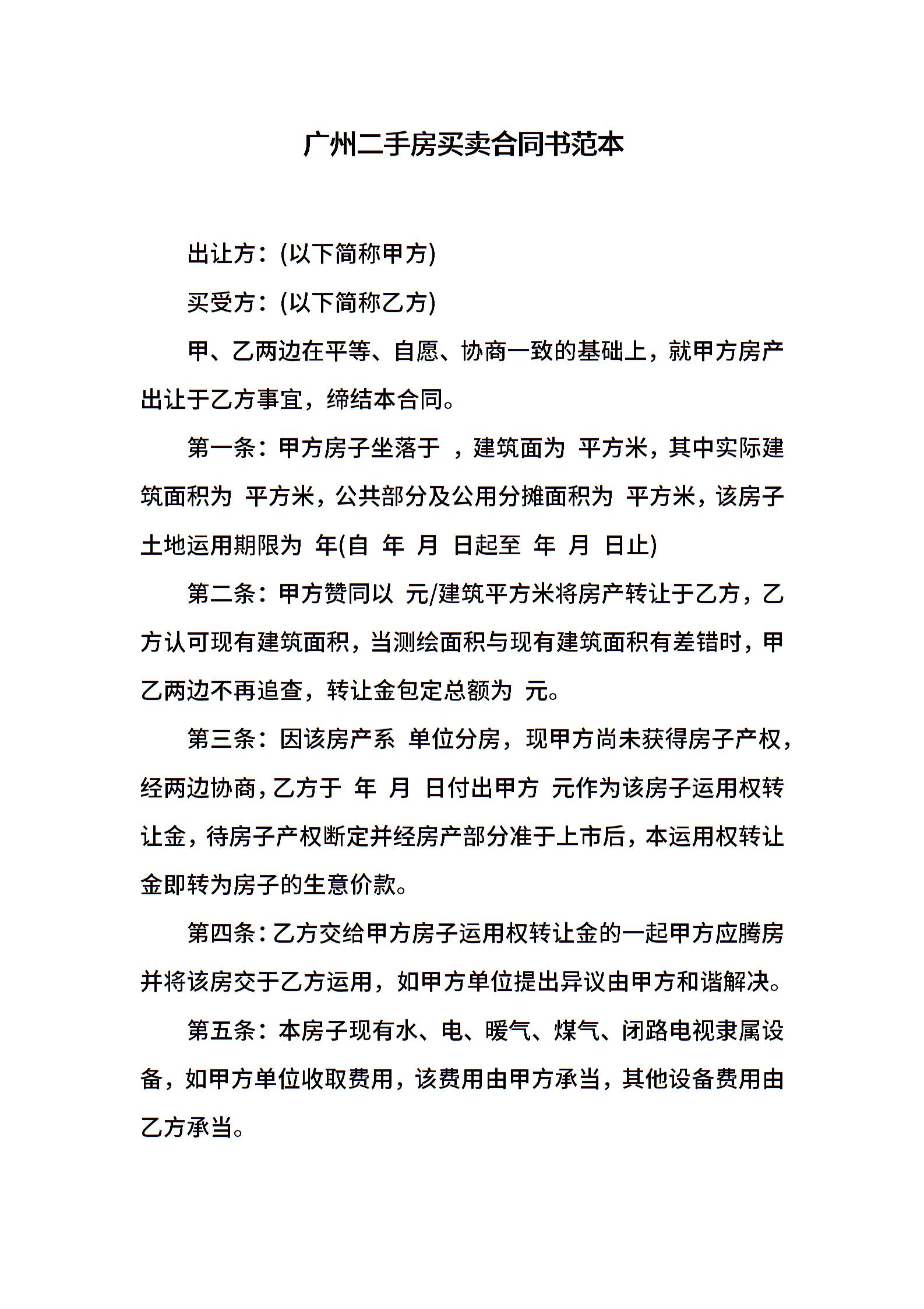 广州二手房买卖合同书范本