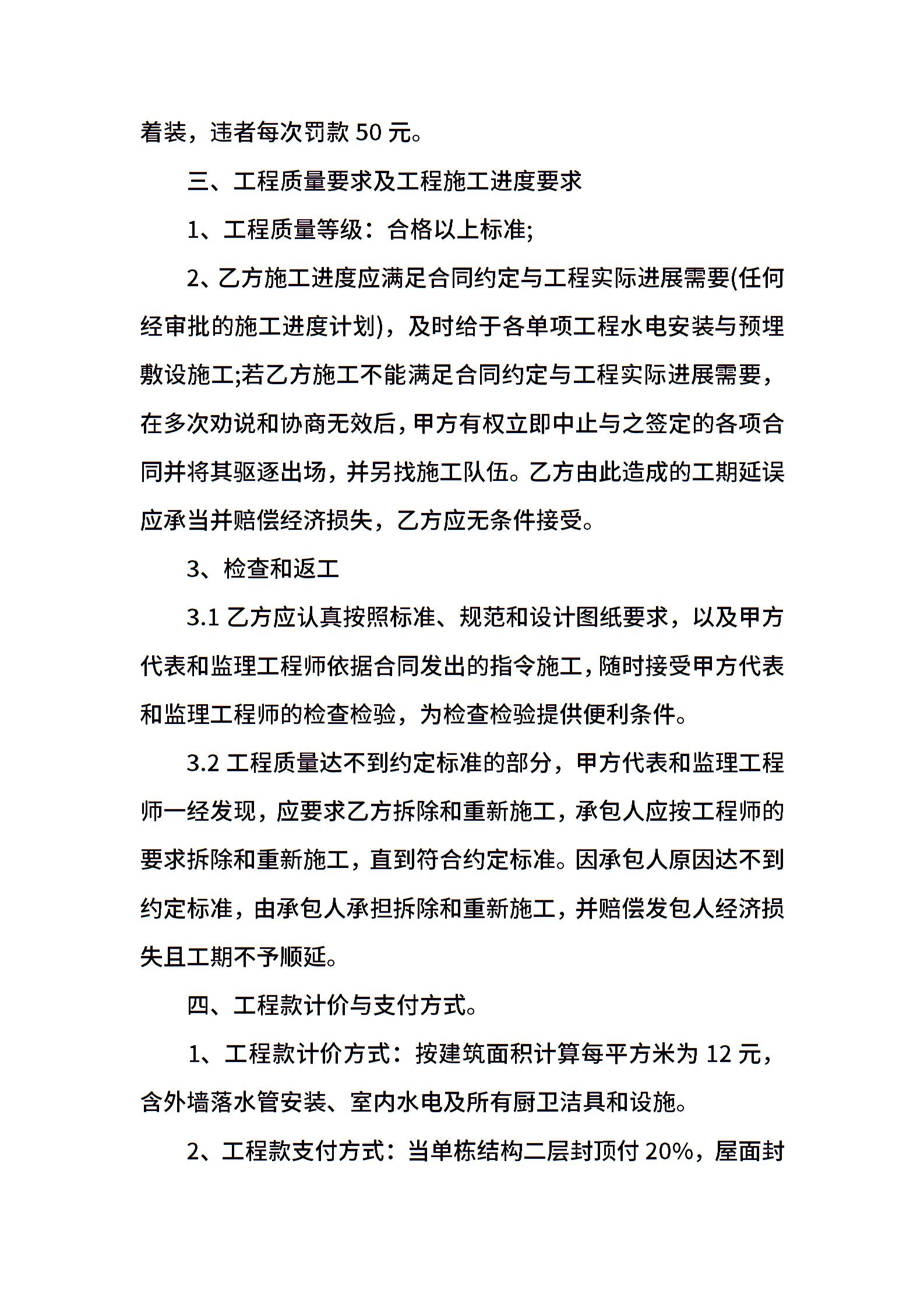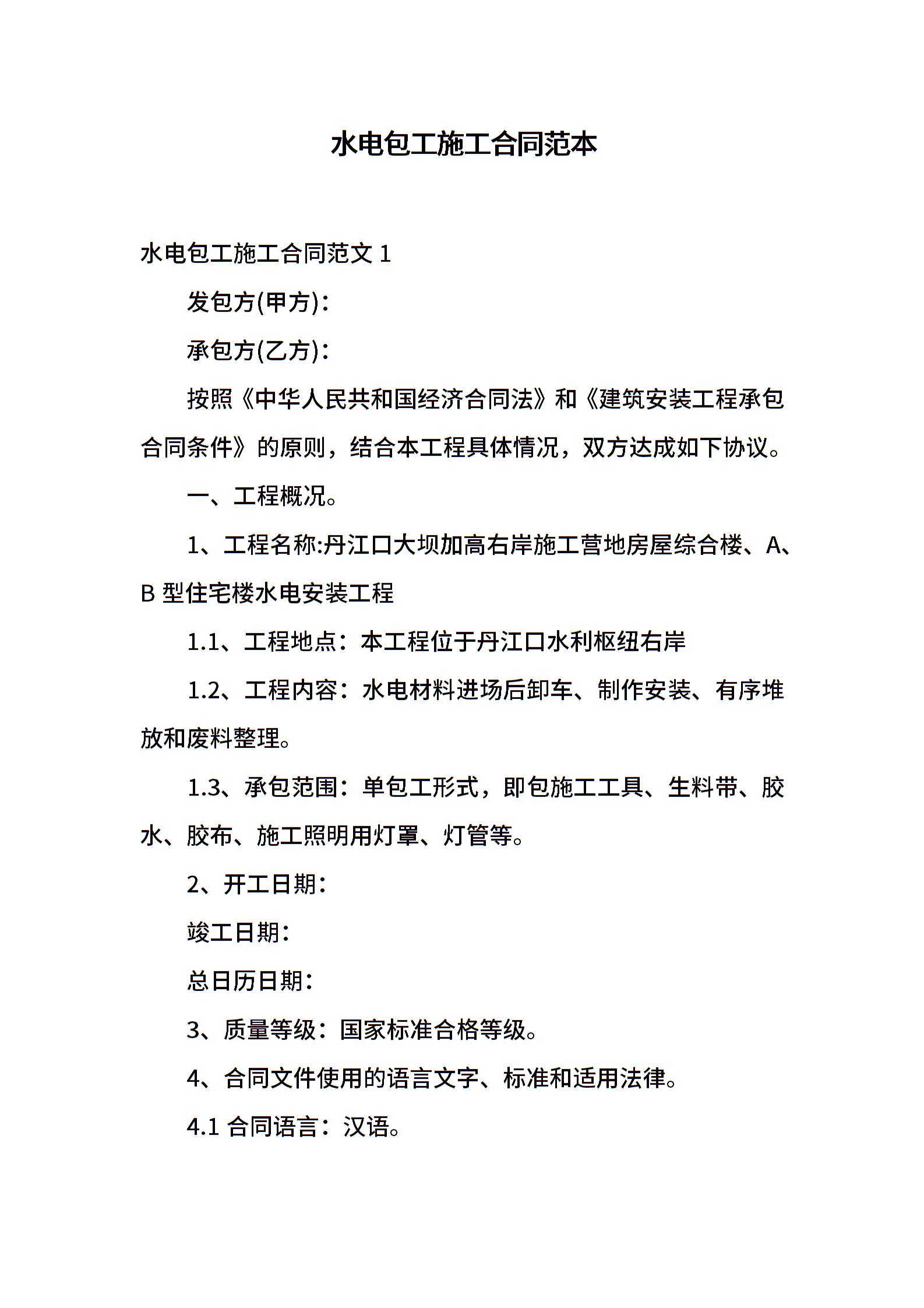 水电包工施工合同范本