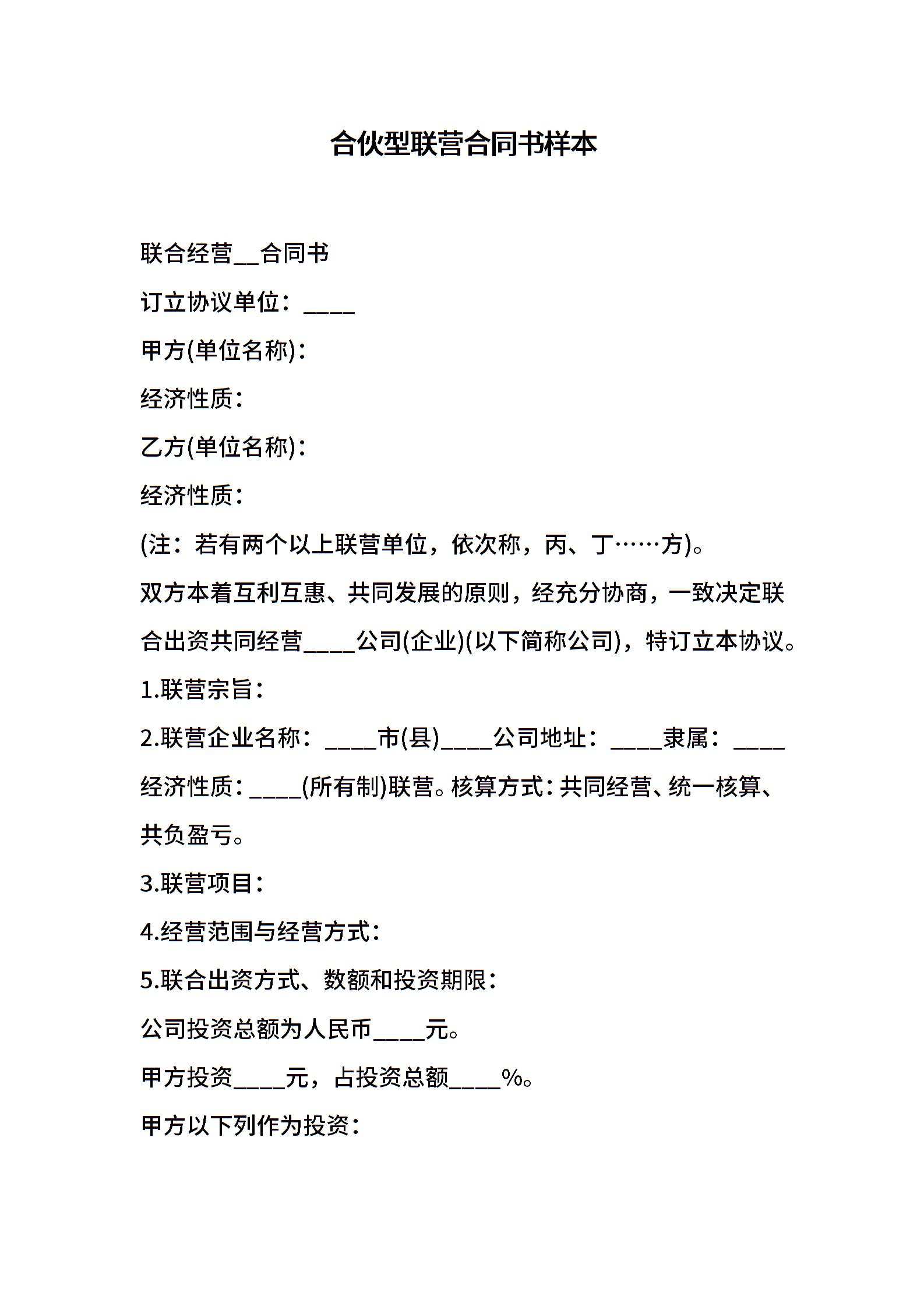合伙型联营合同书样本
