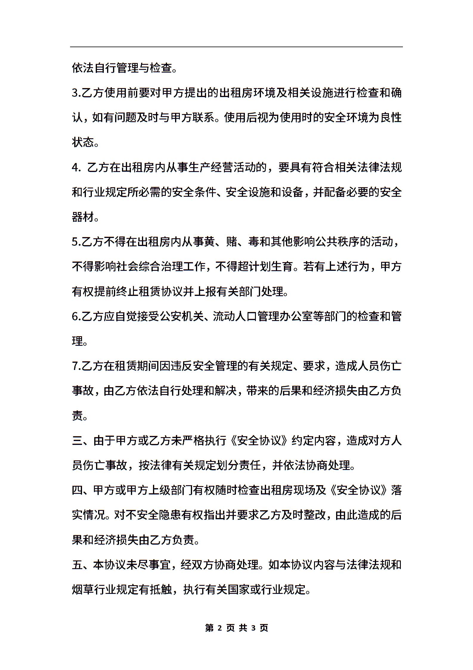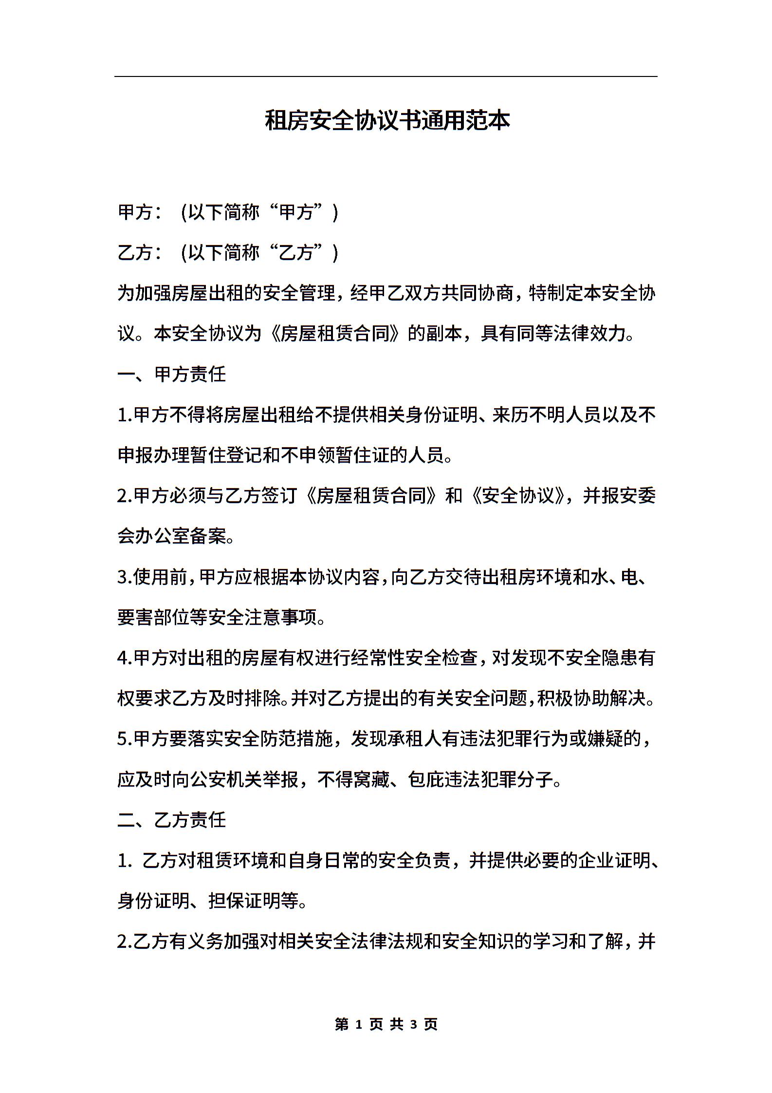 租房安全协议书通用范本