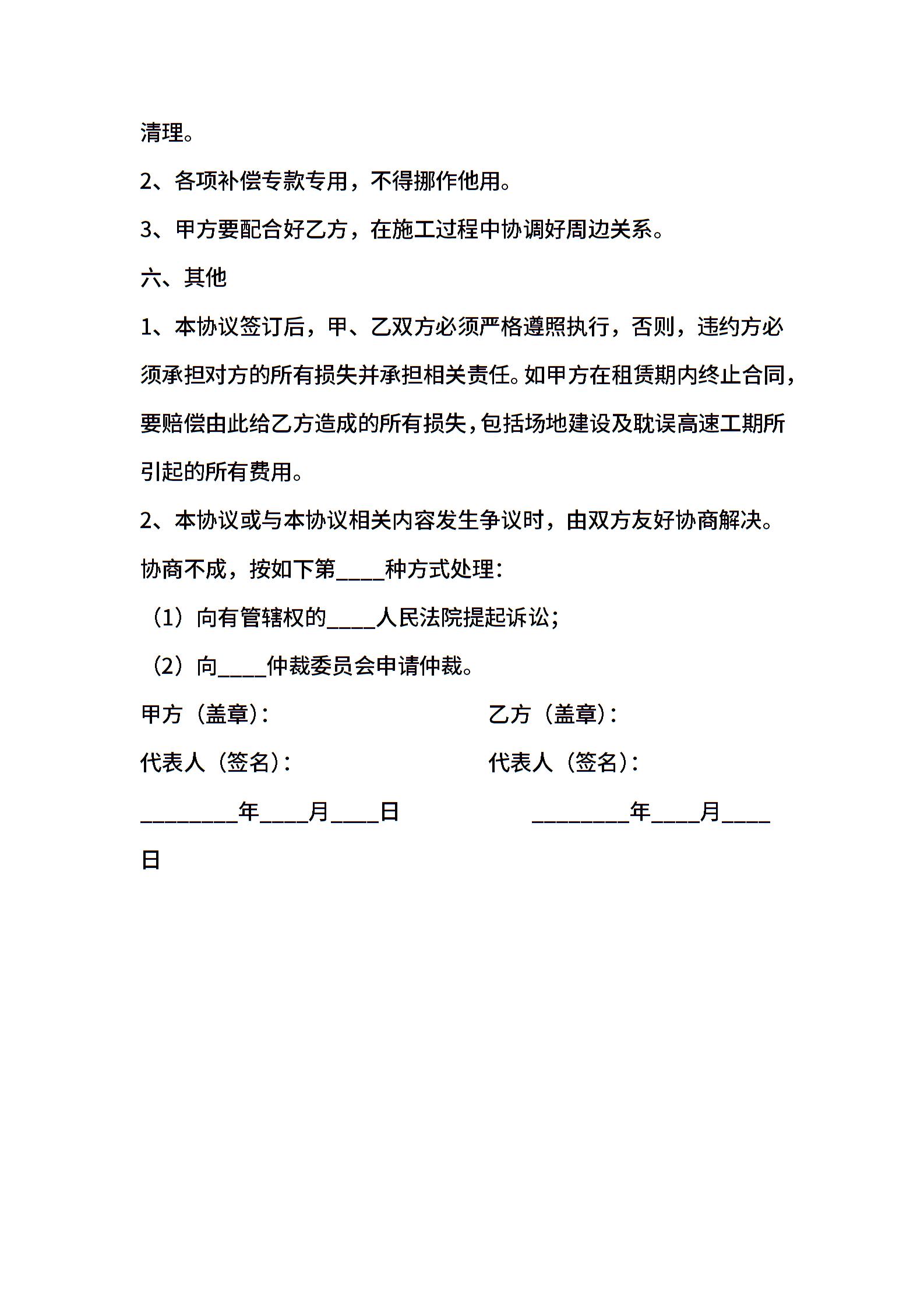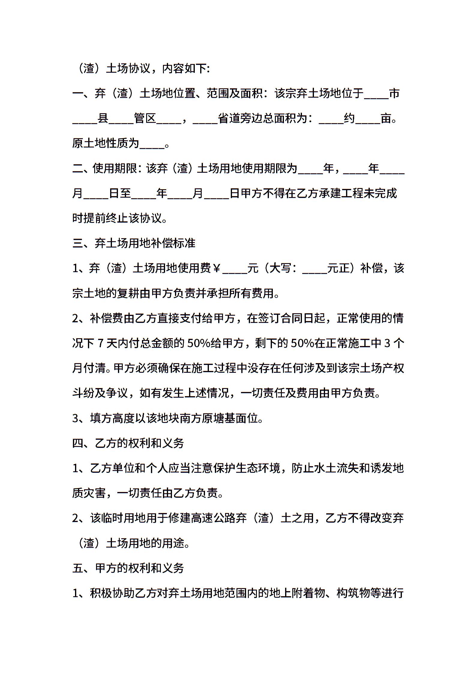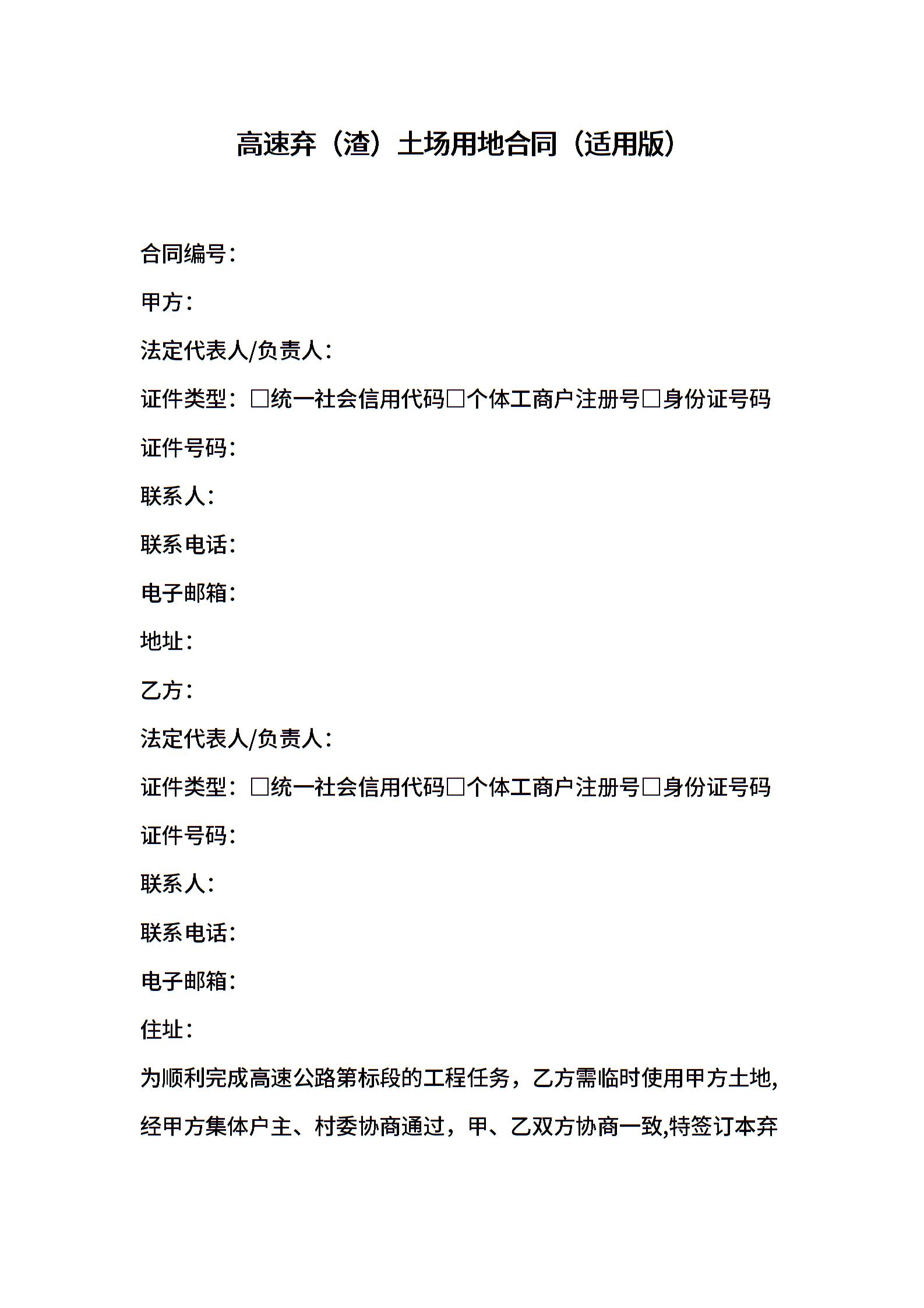 高速弃(渣)土场用地合同(适用版)