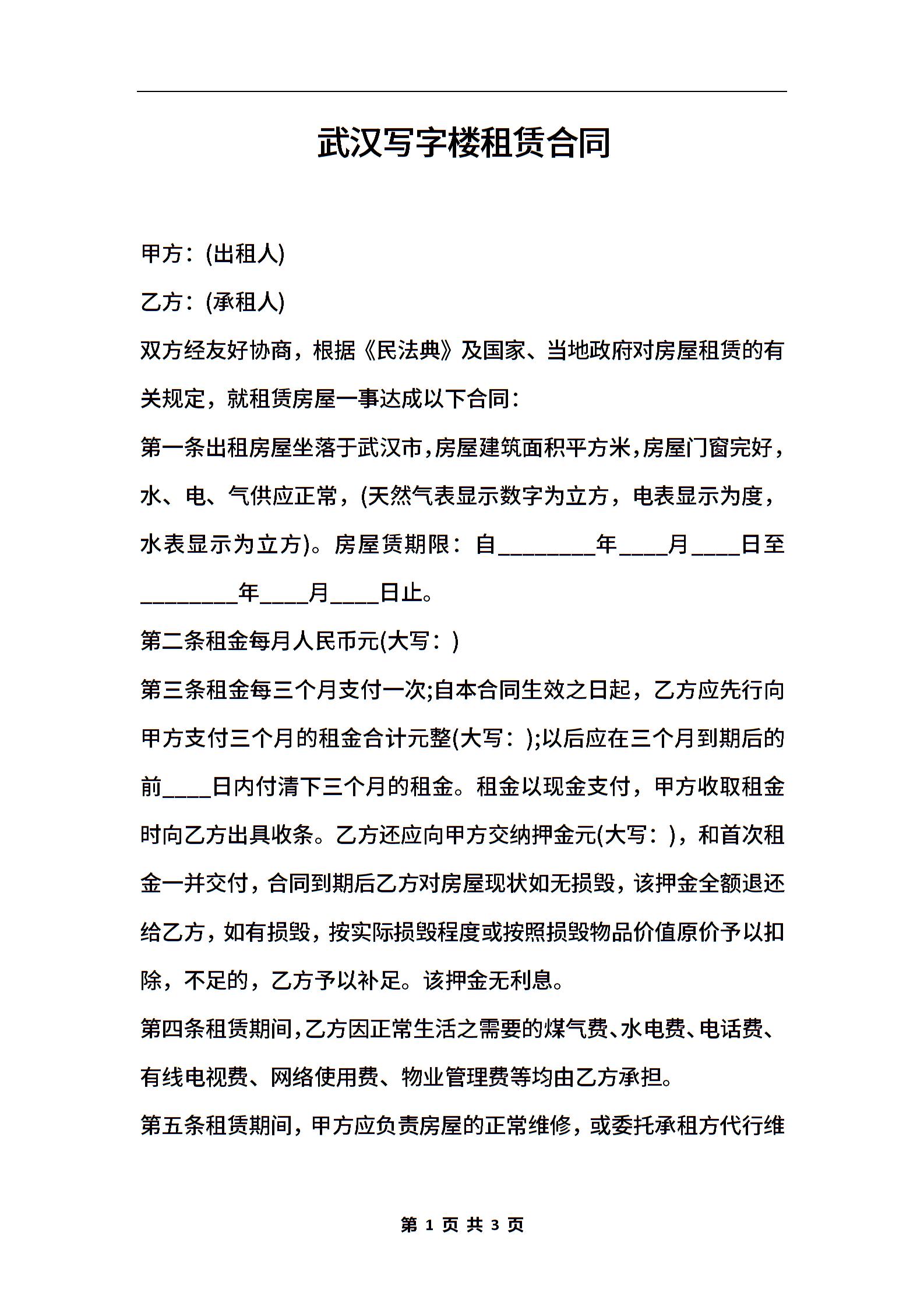 武汉写字楼租赁合同
