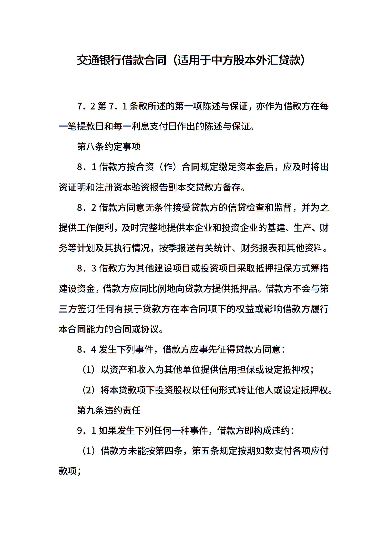 交通银行借款合同(适用于中方股本外汇贷款)