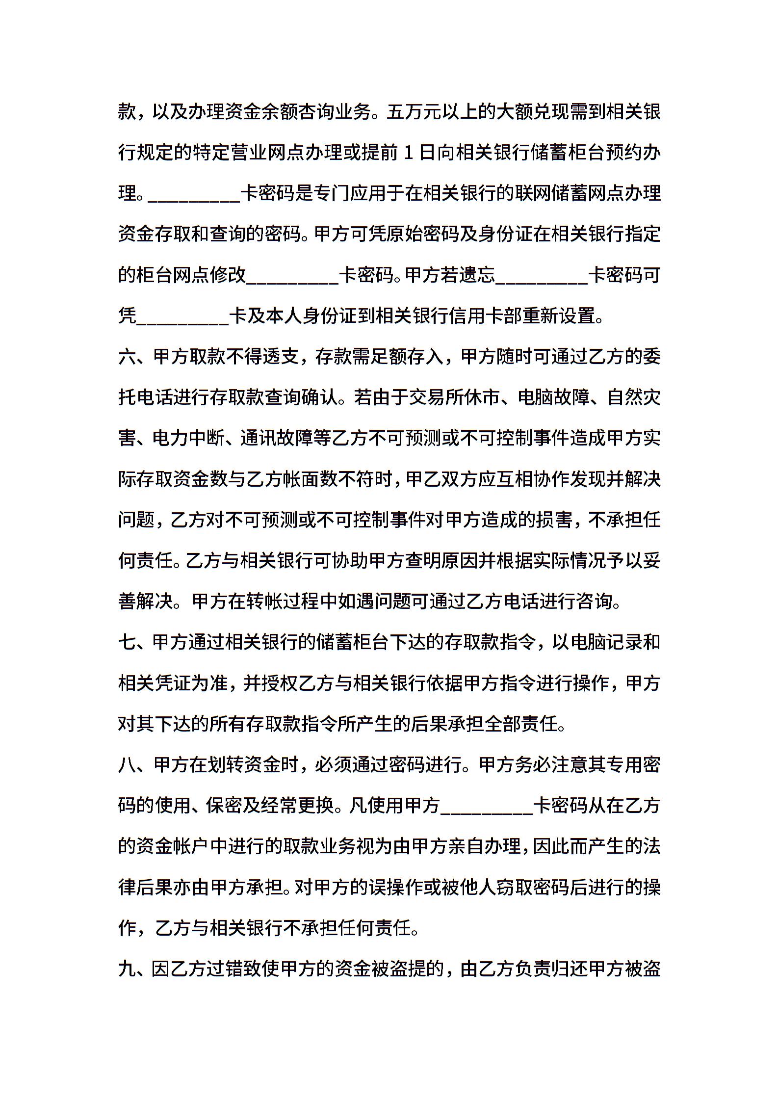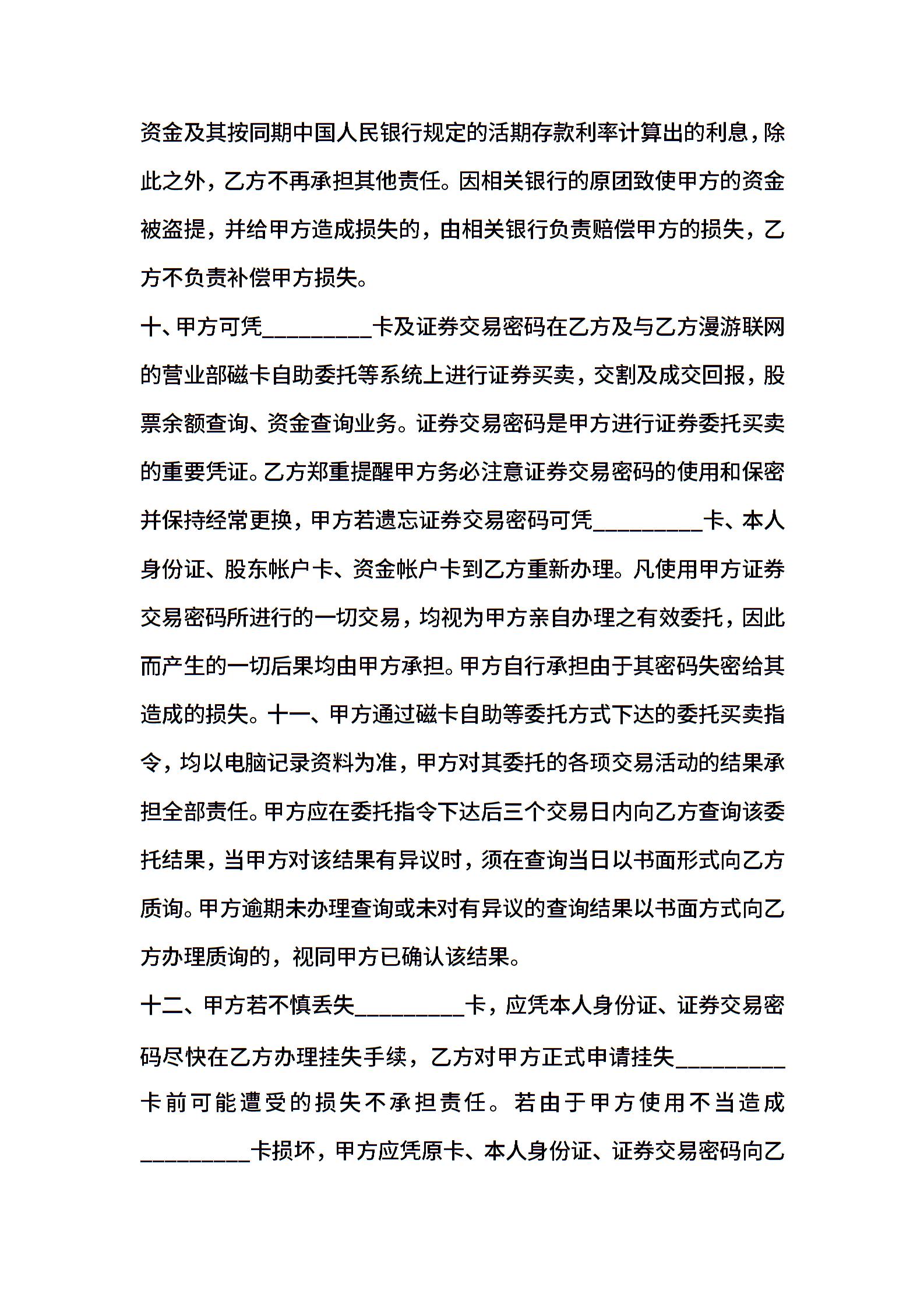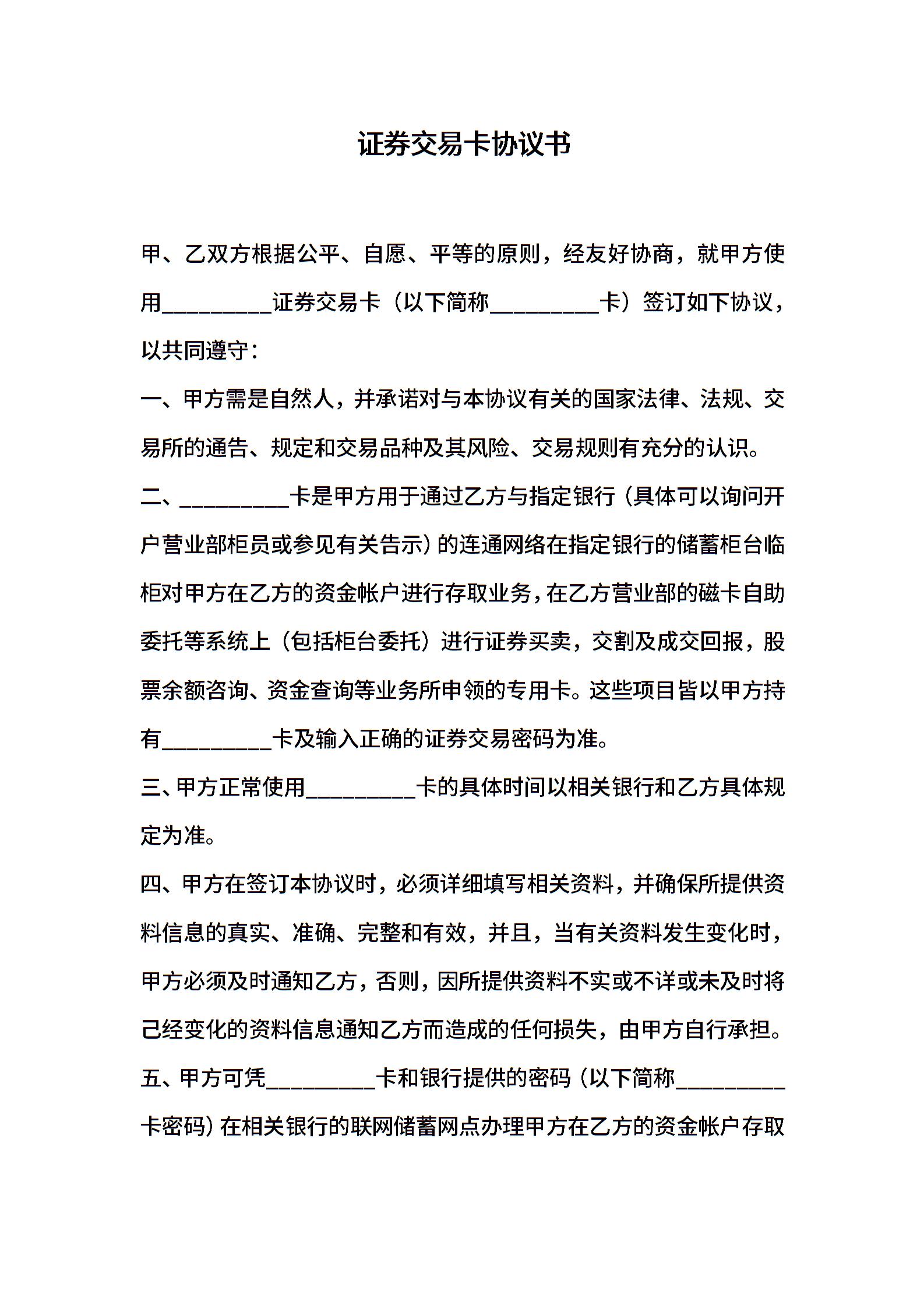 证券交易卡协议书