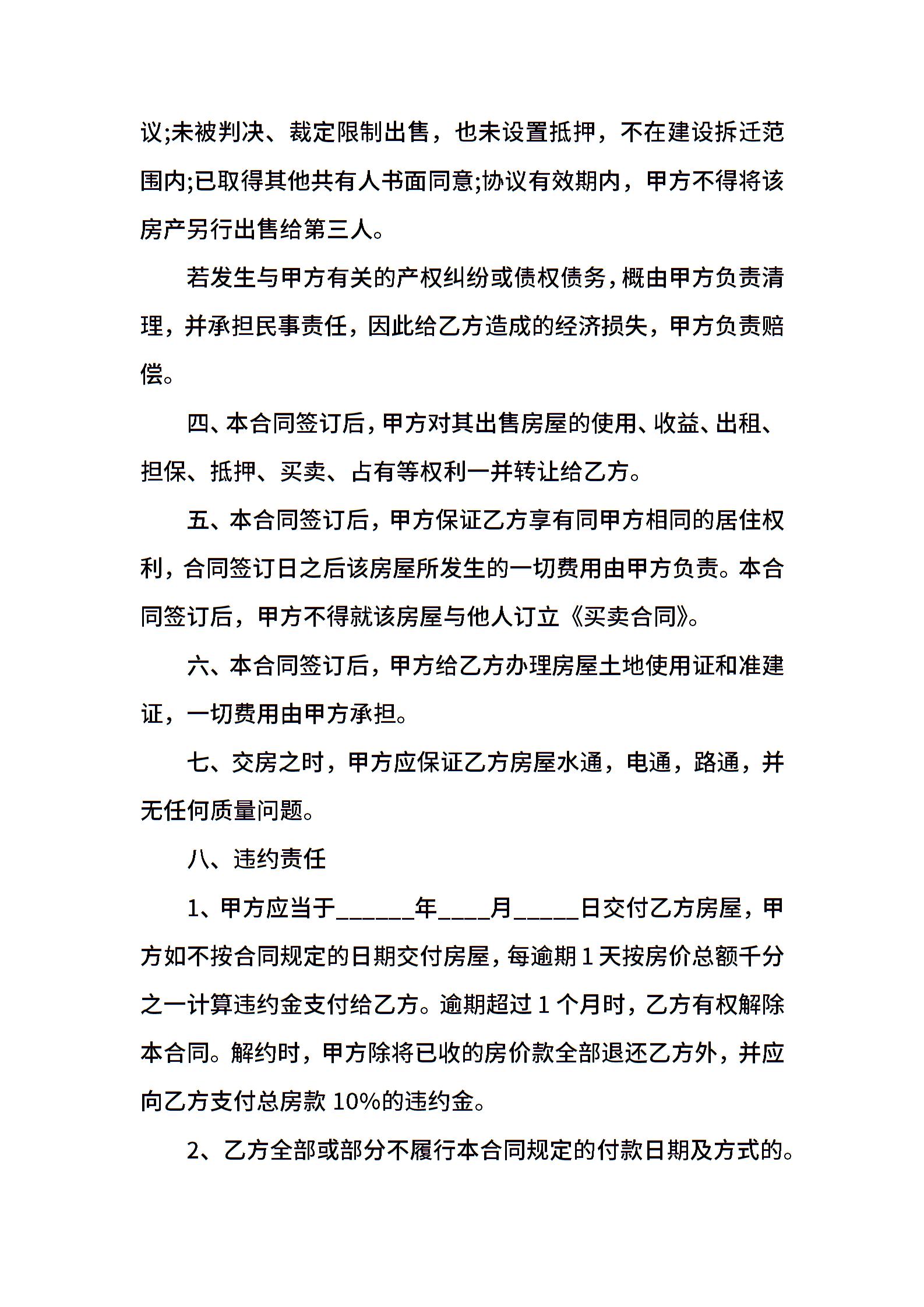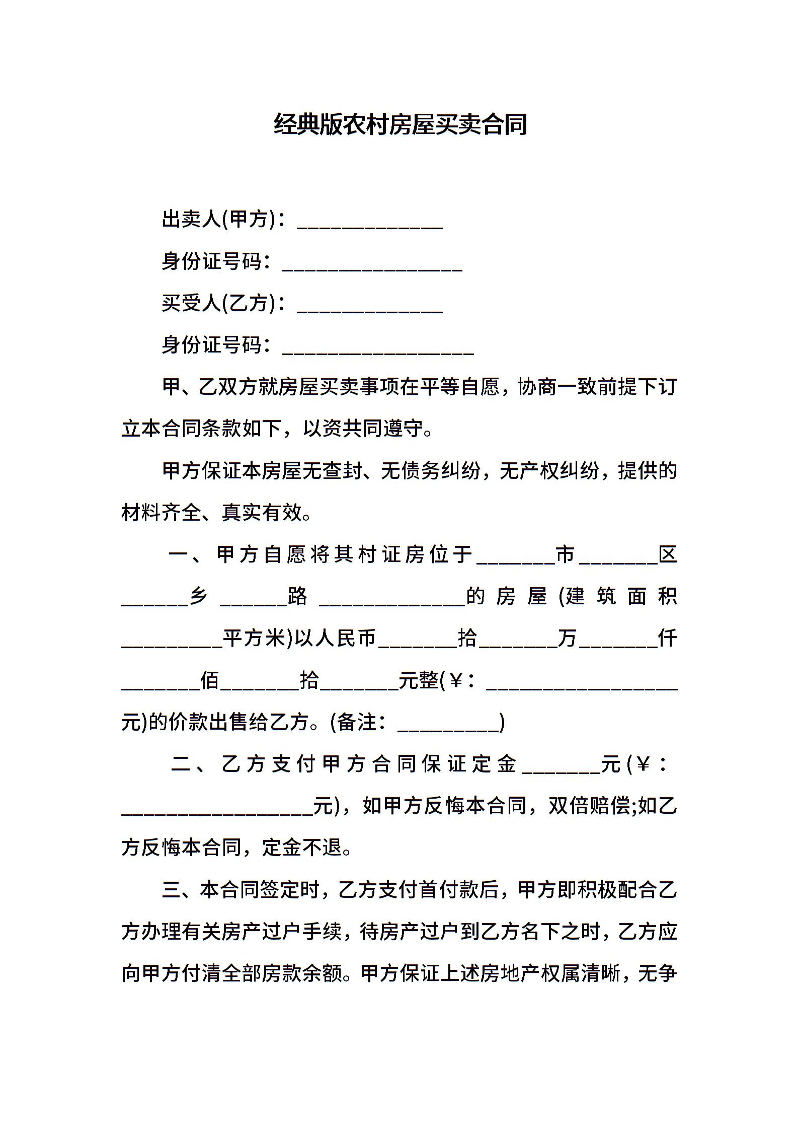 经典版农村房屋买卖合同