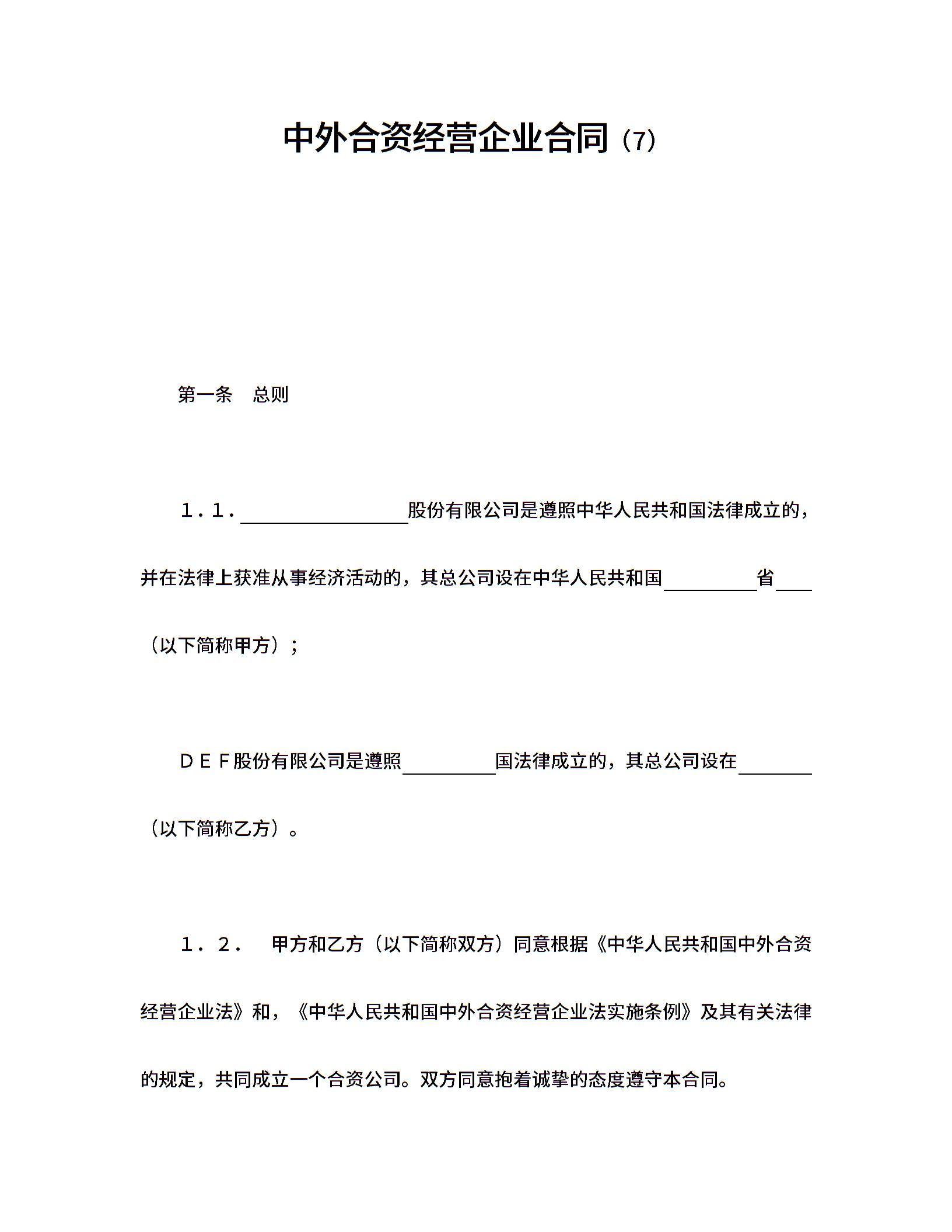 3投资合同中外合资经营企业合同(7).doc