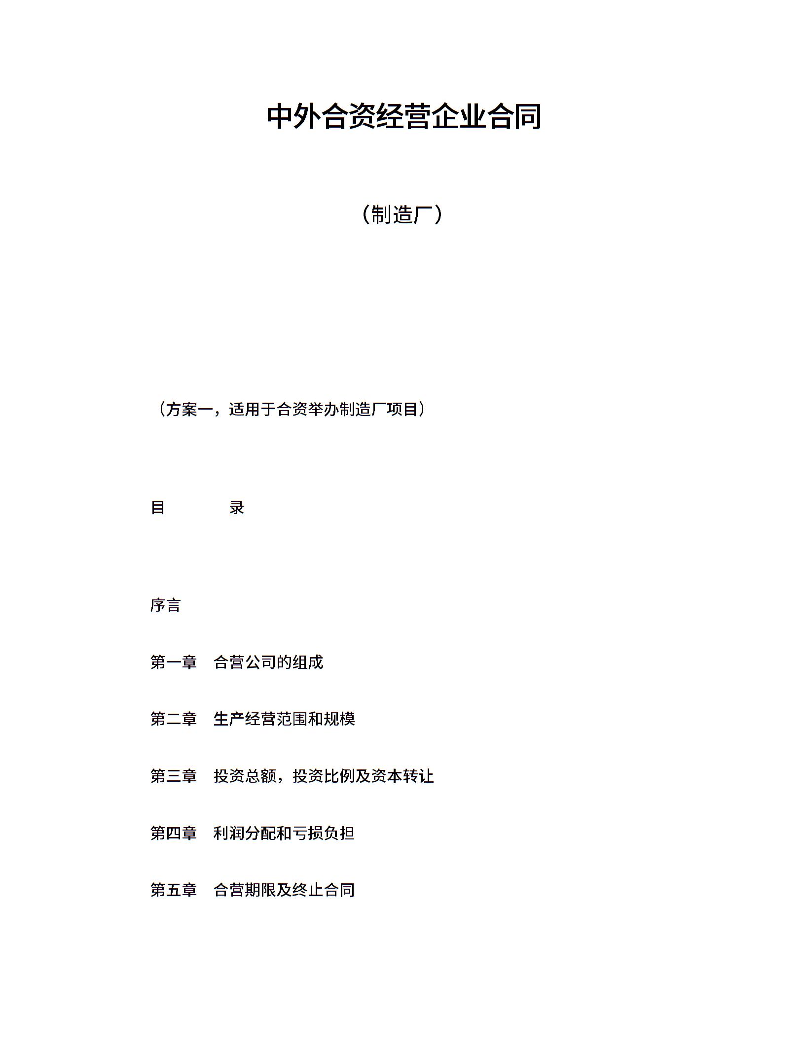 word3投资合同中外合资经营企业合同(制造厂).doc