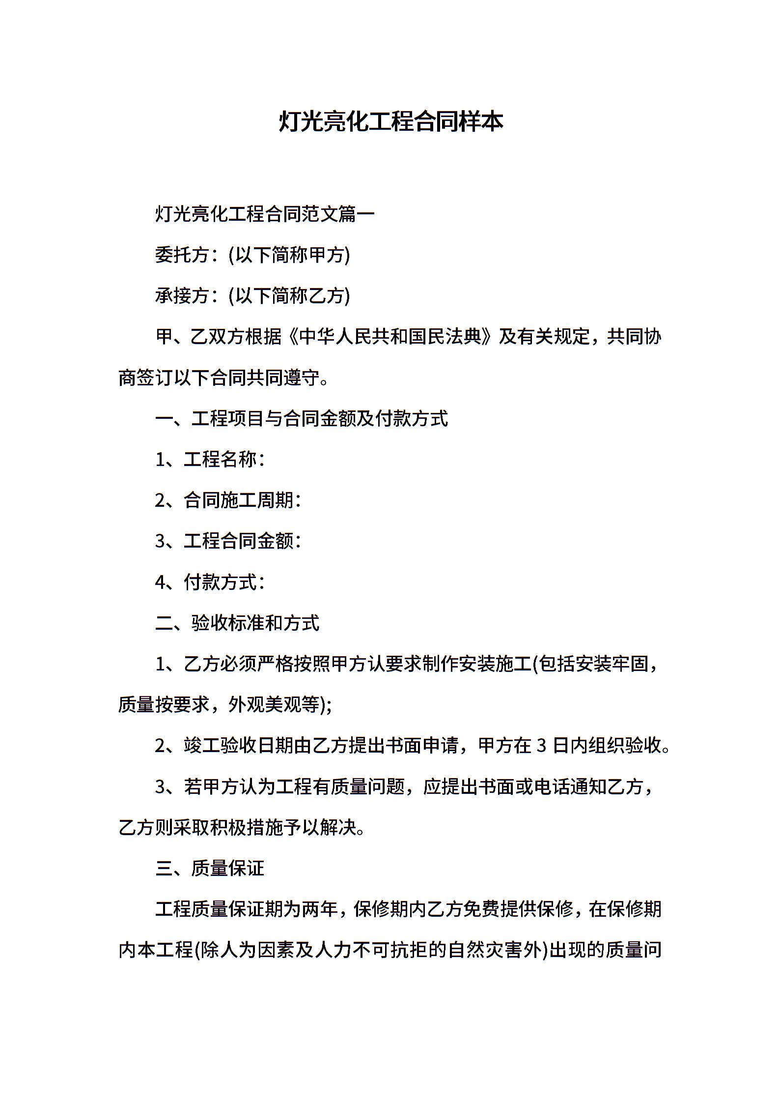 灯光亮化工程合同样本