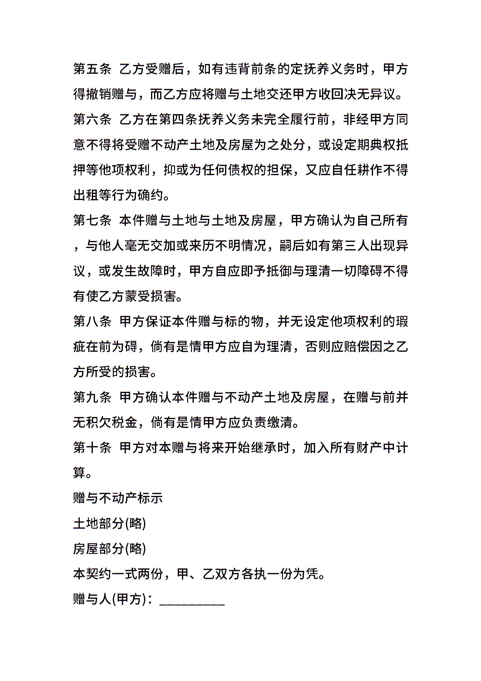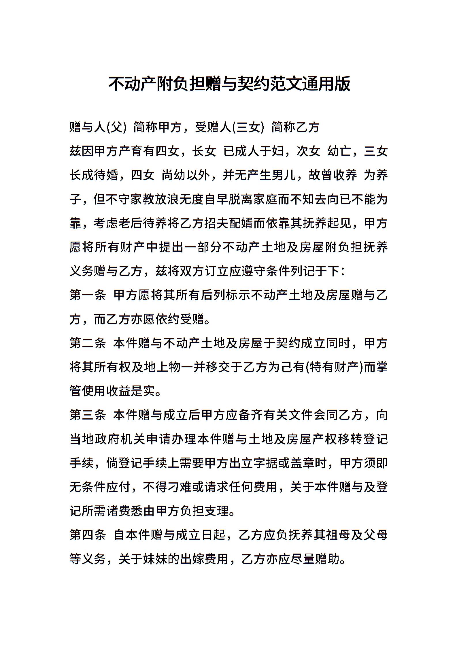 不动产附负担赠与契约范文通用版
