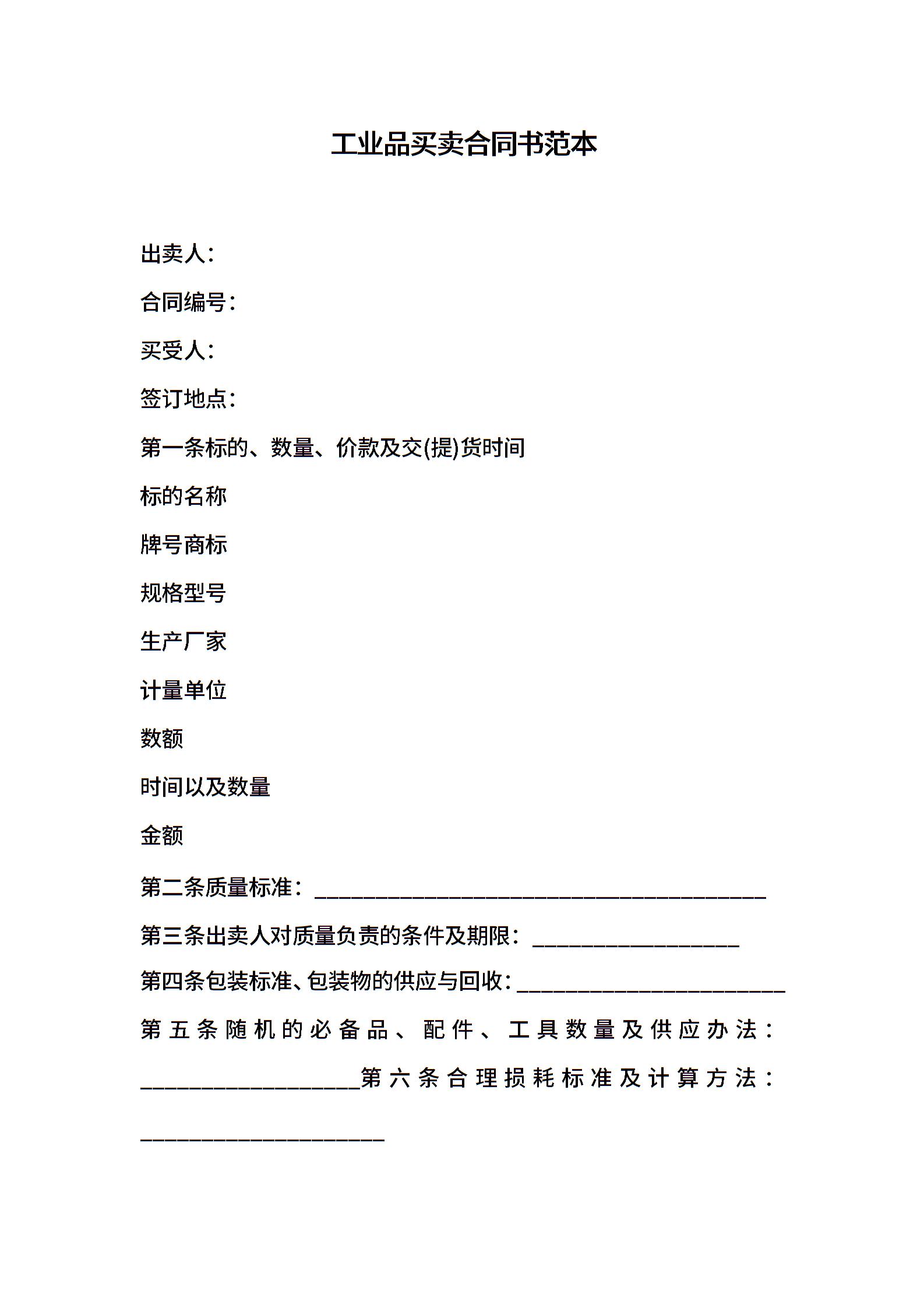 工业品买卖合同书范本