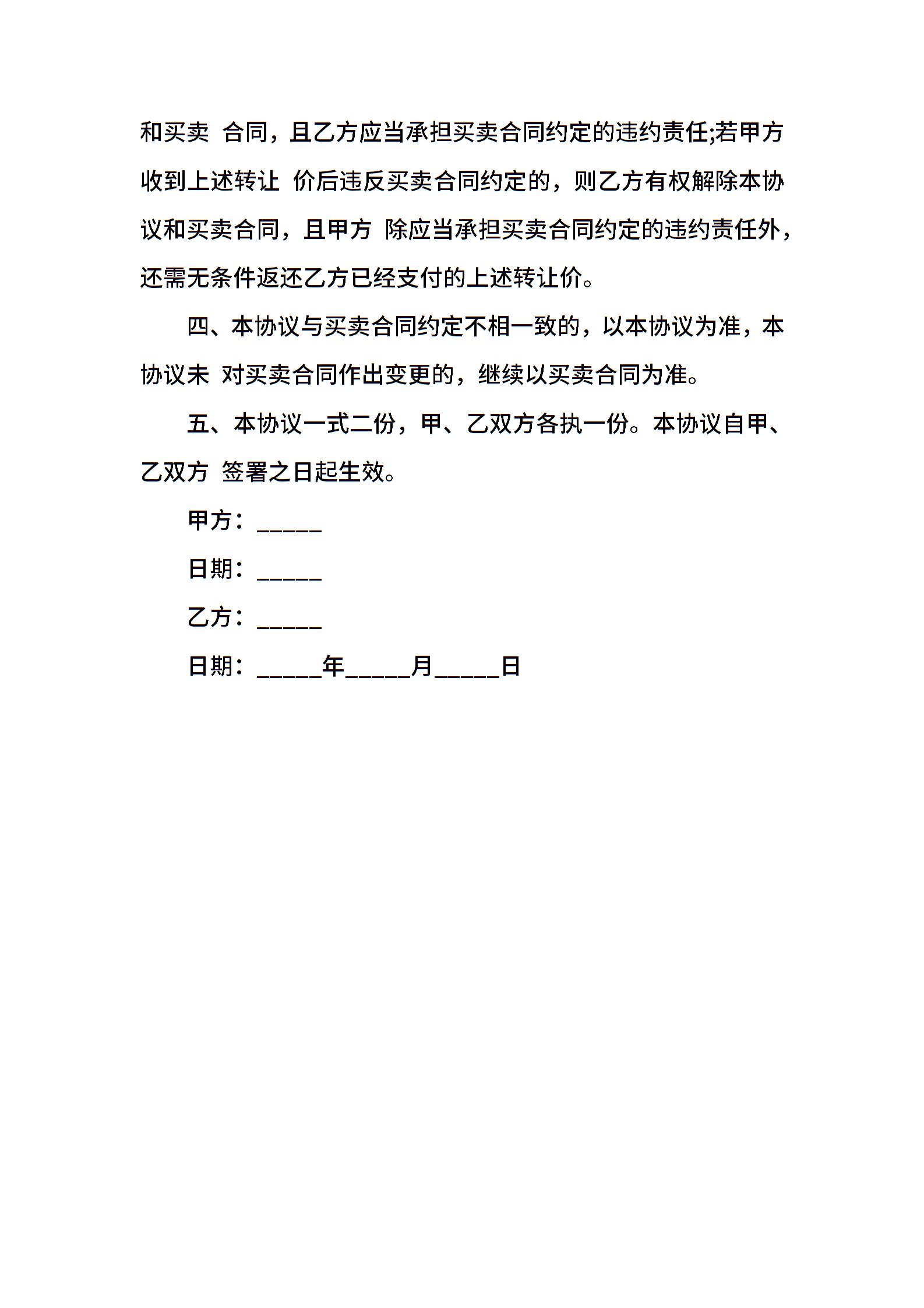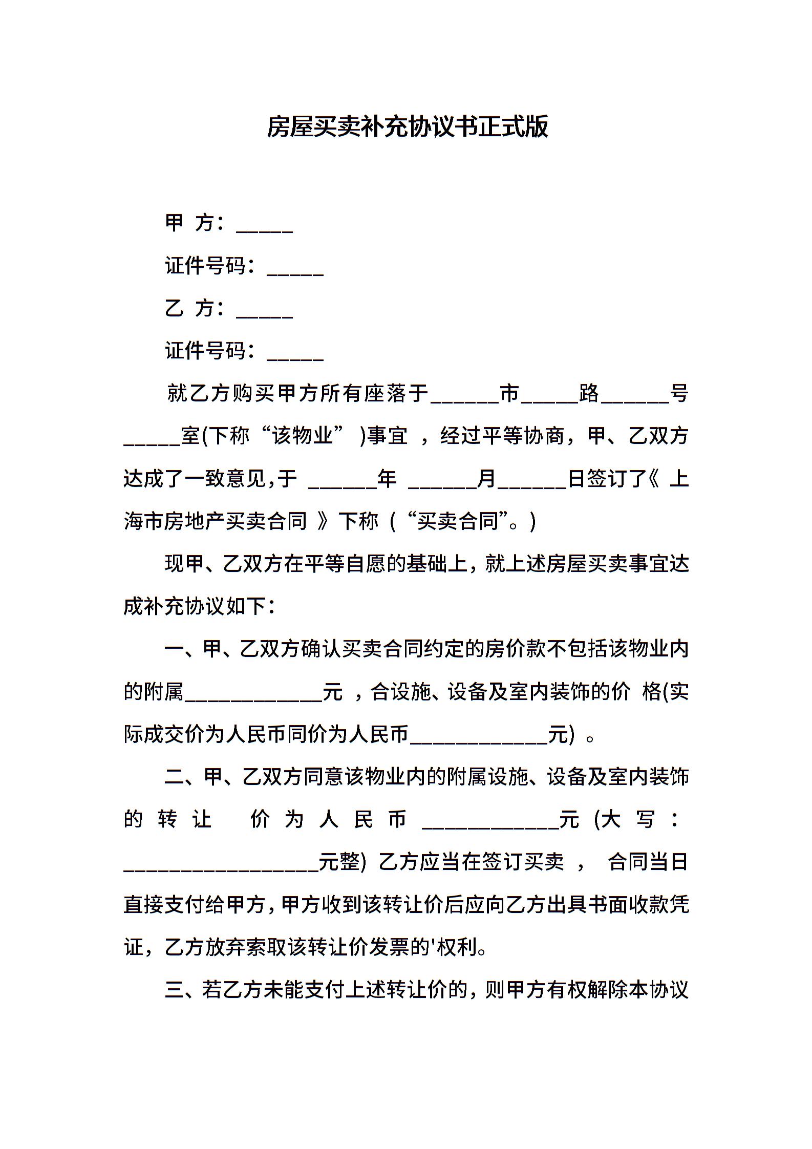 房屋买卖补充协议书正式版