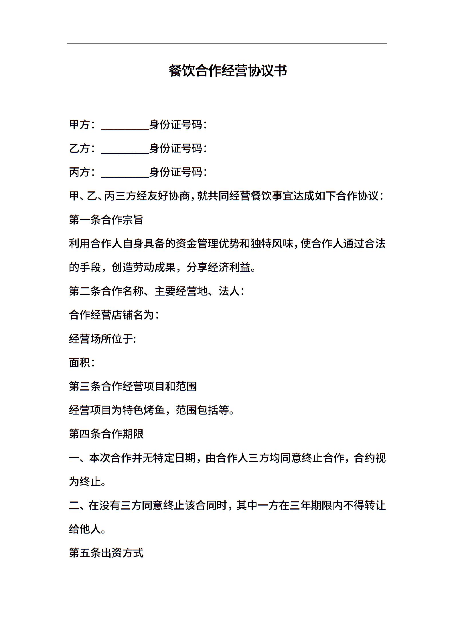餐饮业合伙经营协议书(终极版)(7页)