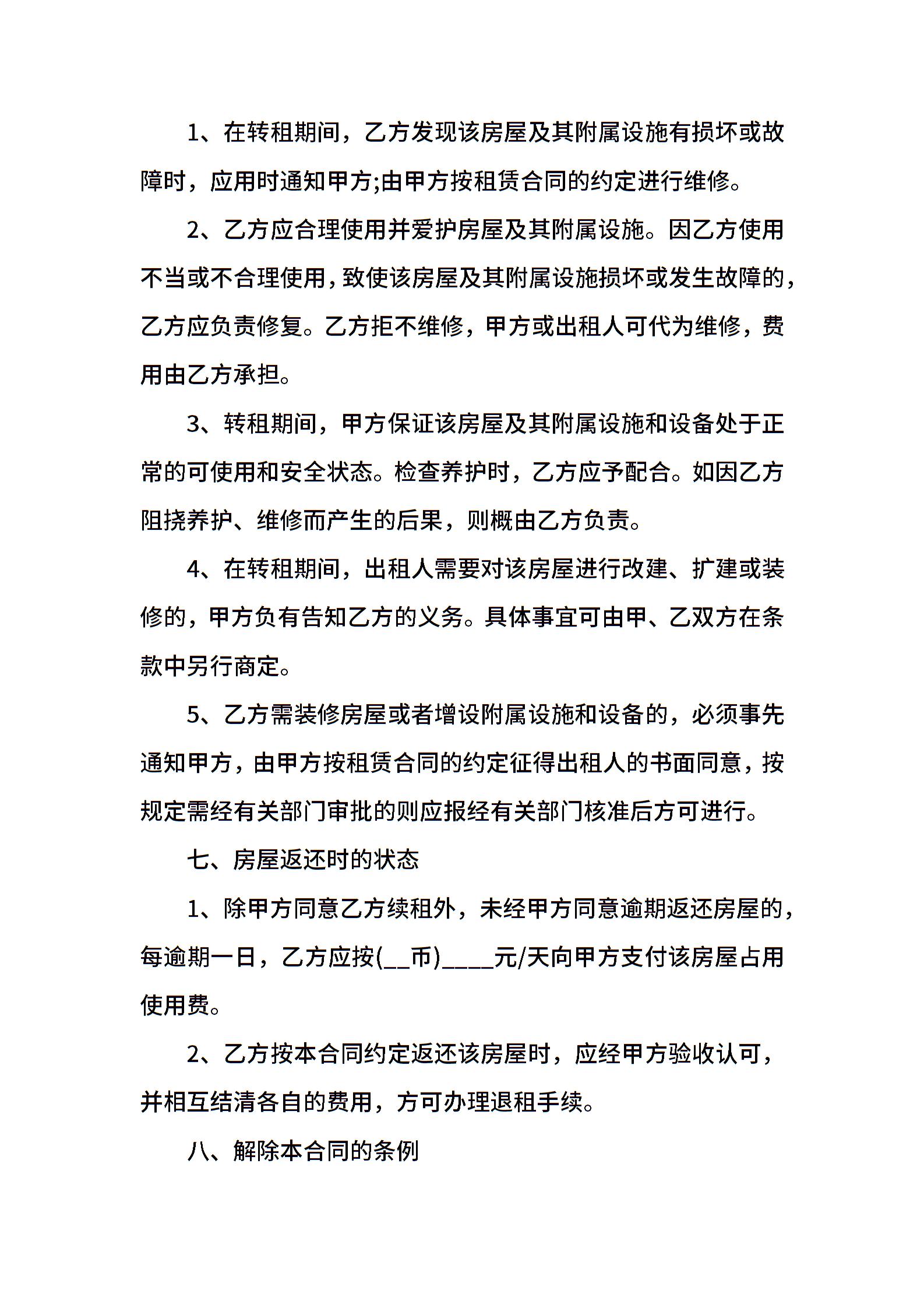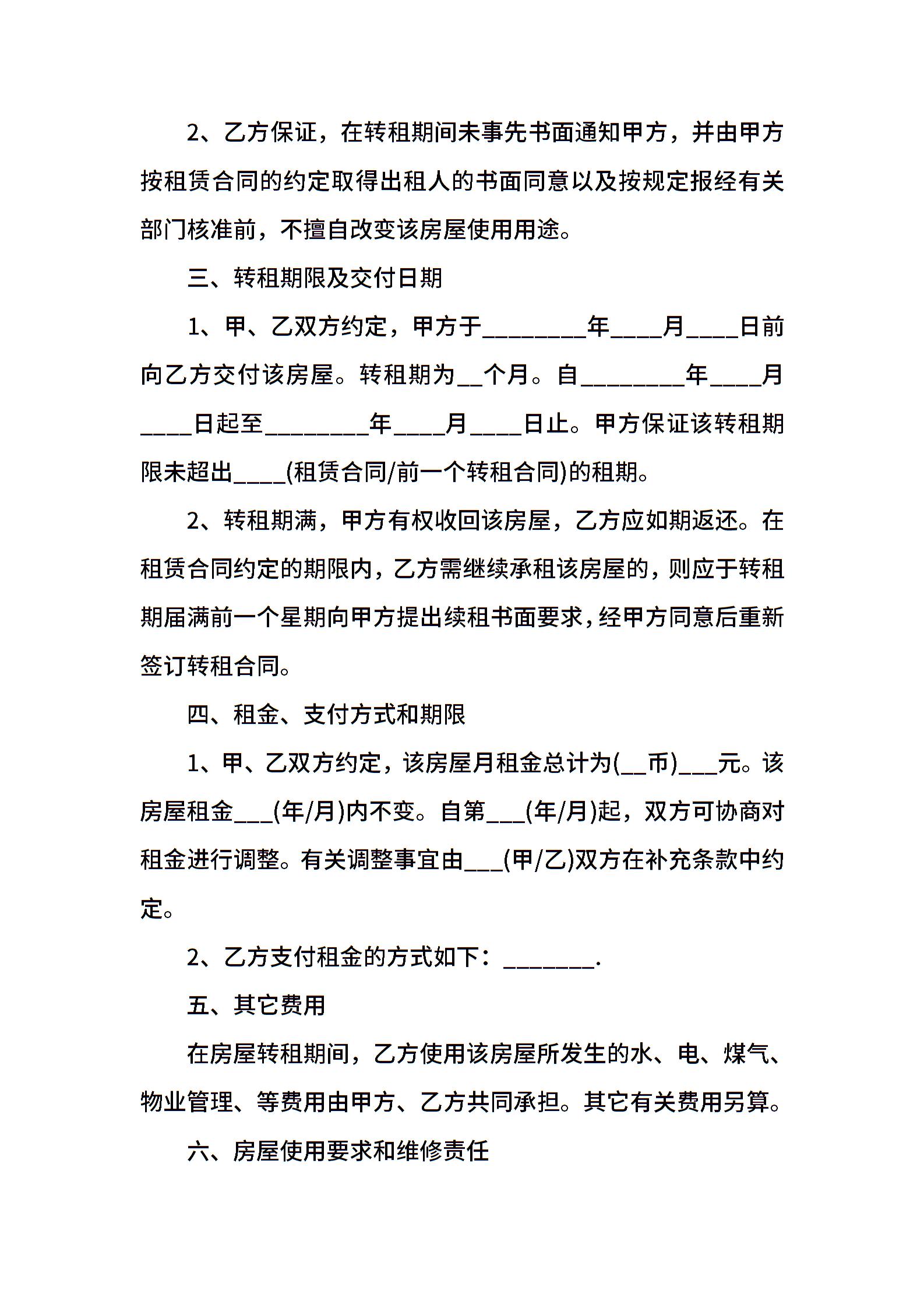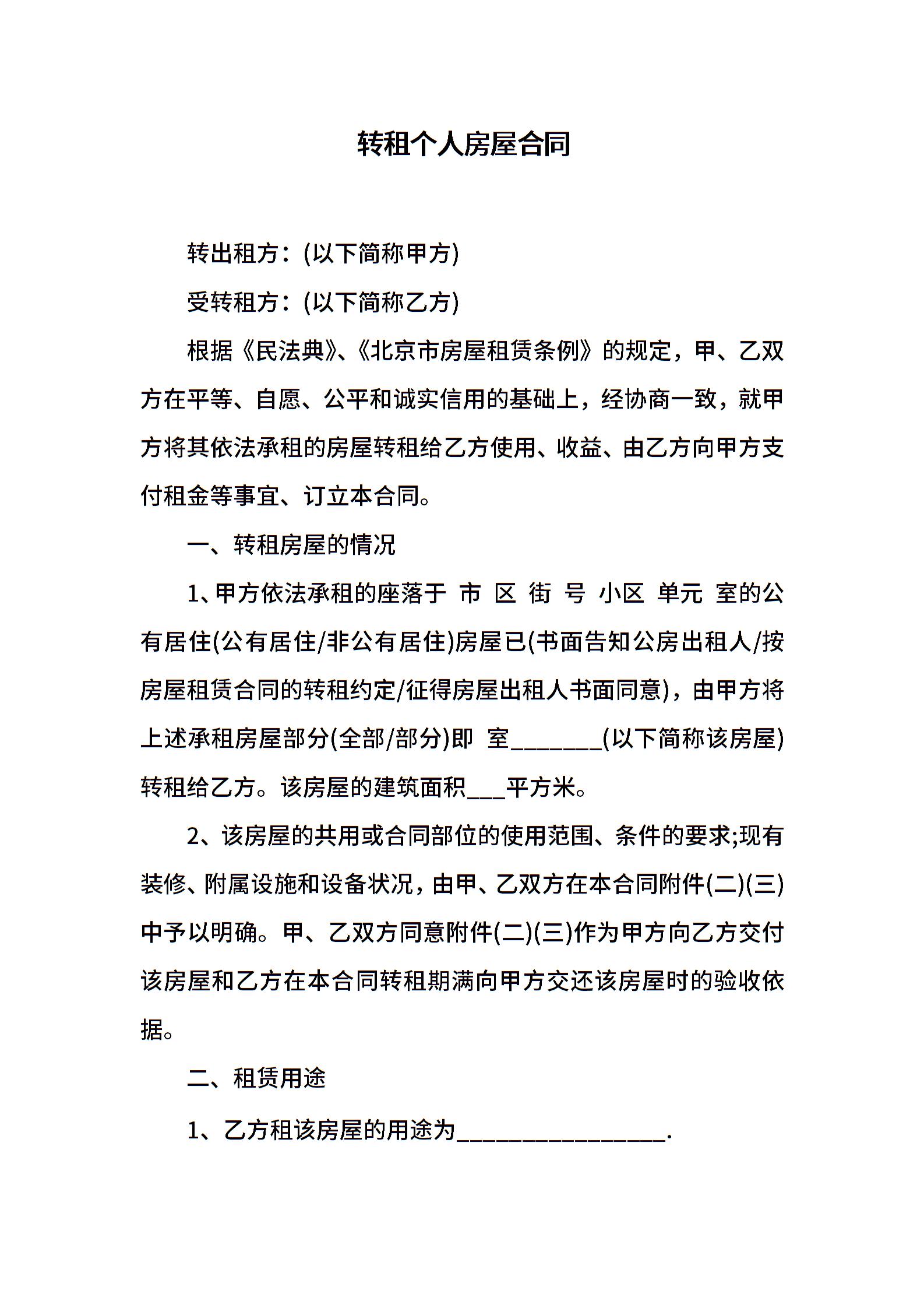 转租个人房屋合同