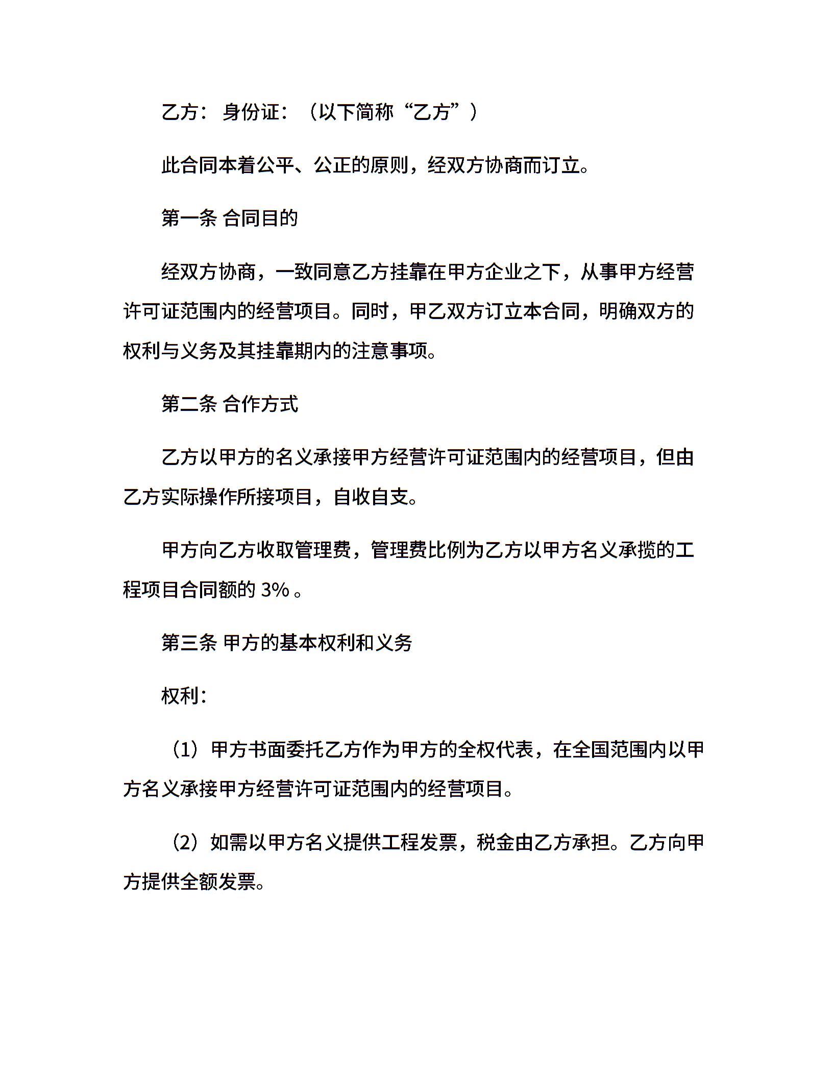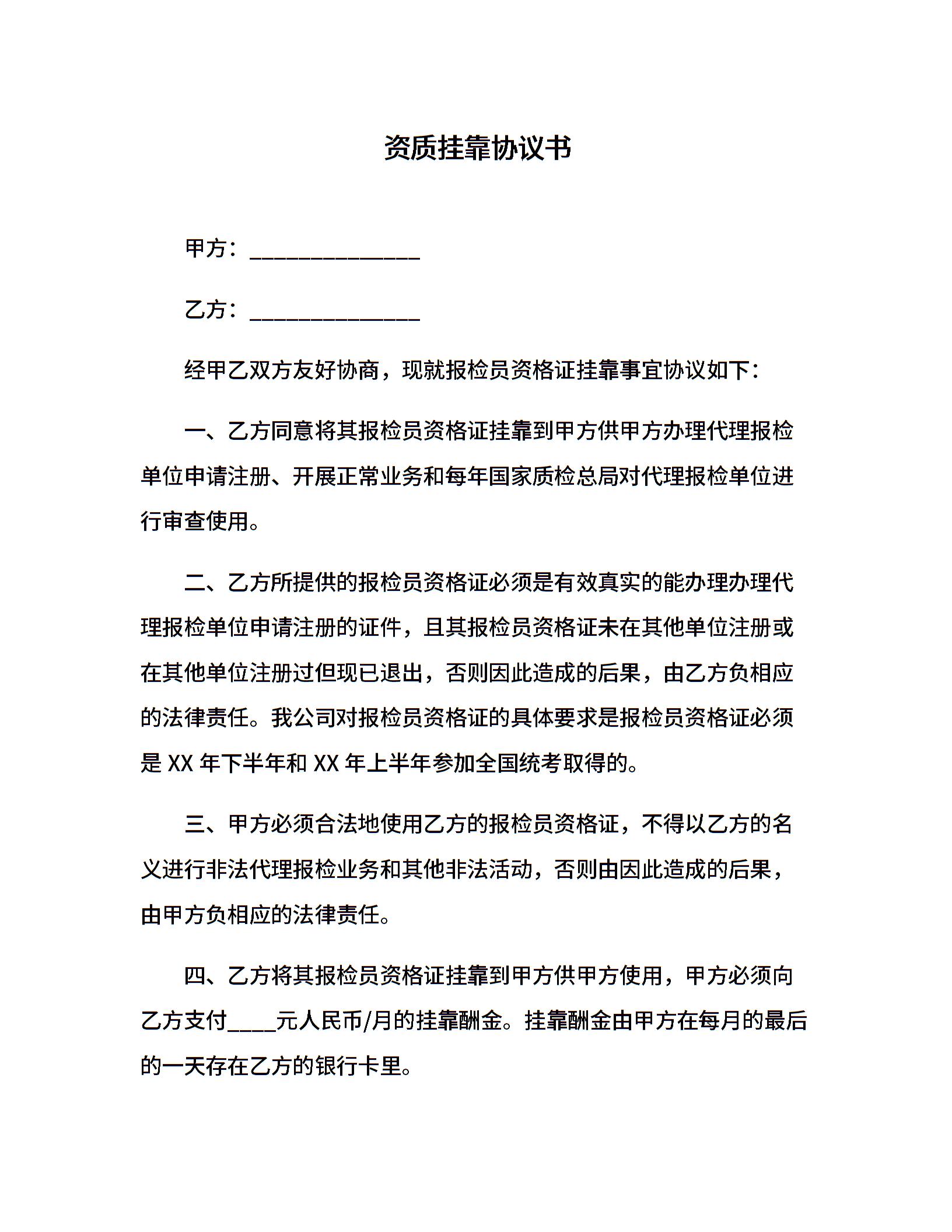 资质挂靠协议书