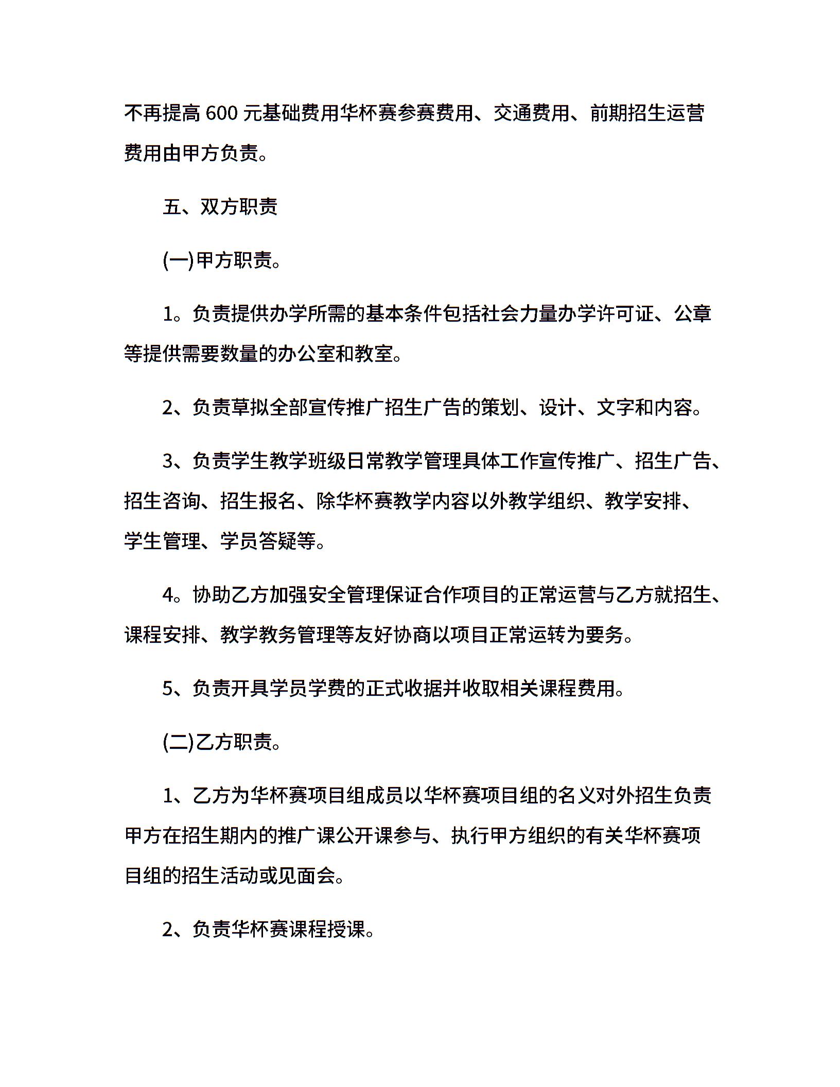 当前位置:量子办公 > 合同模板 > 合作合同 >