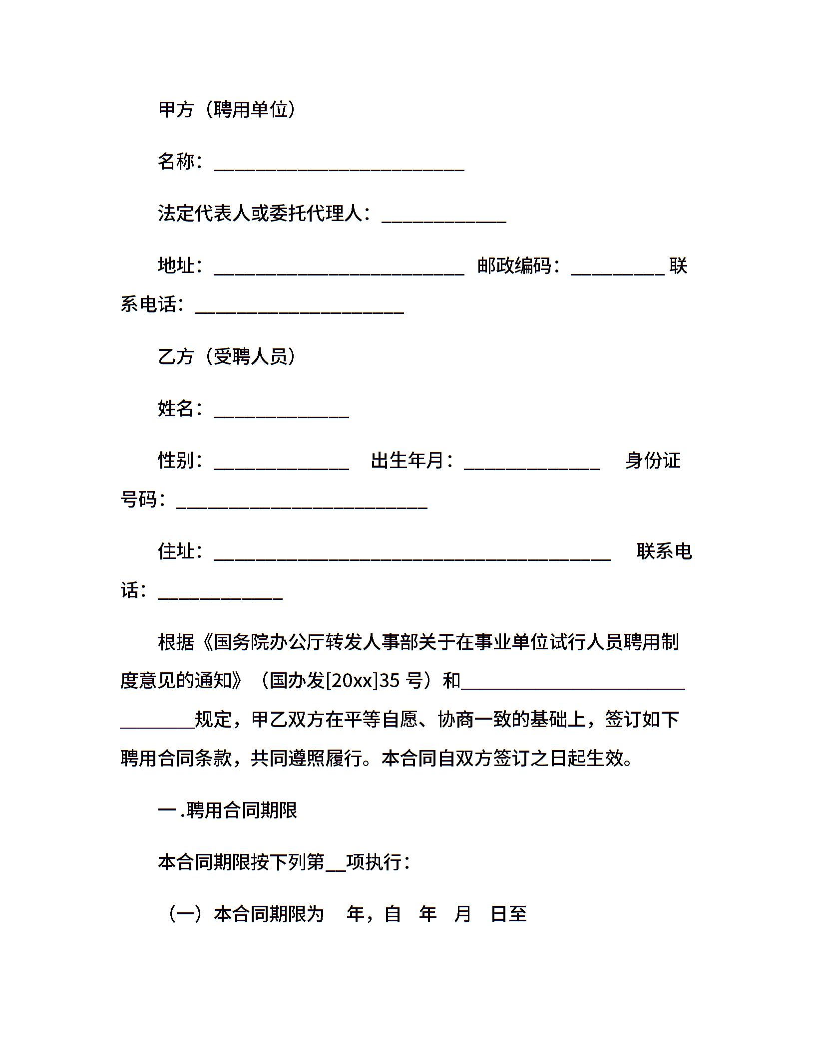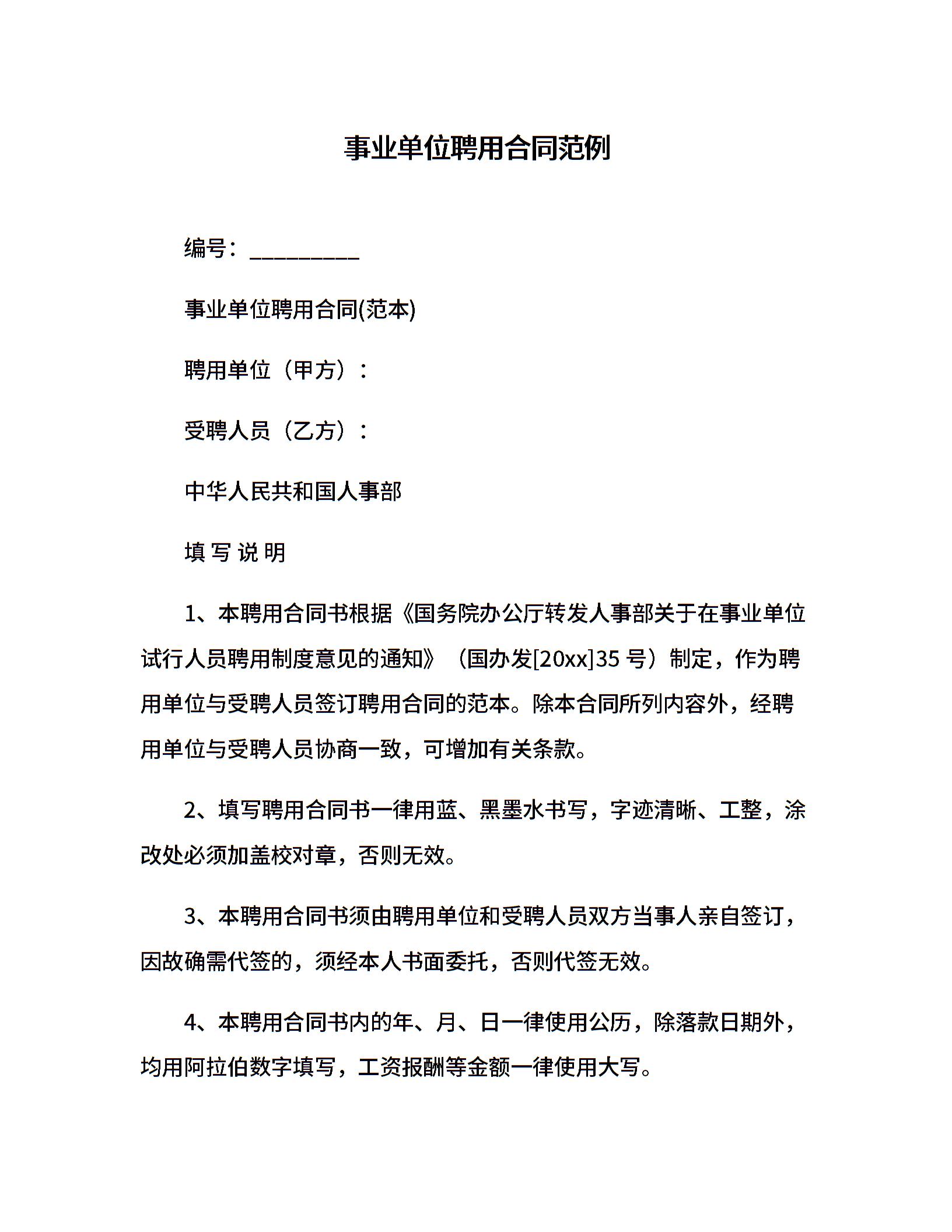 事业单位聘用合同范例