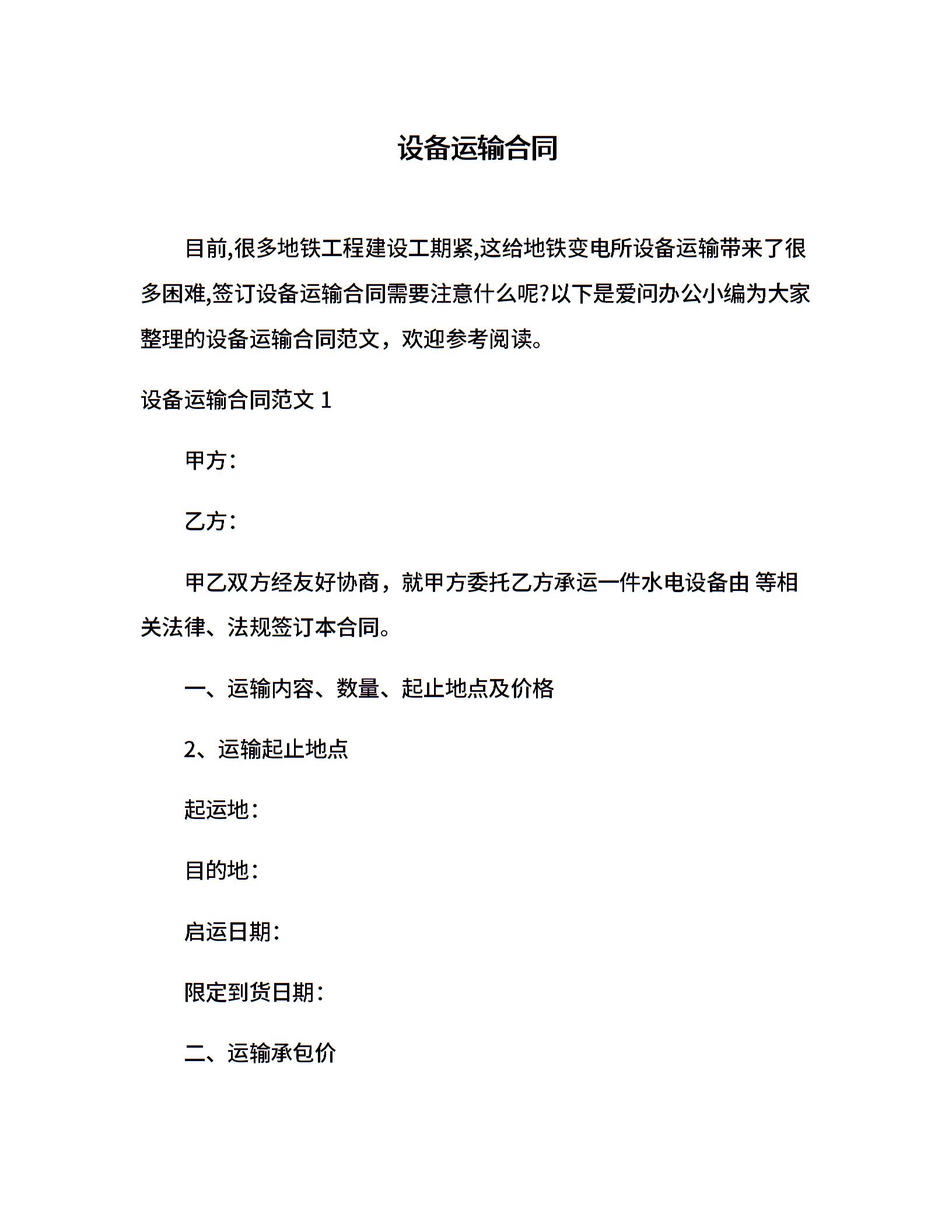 设备运输合同