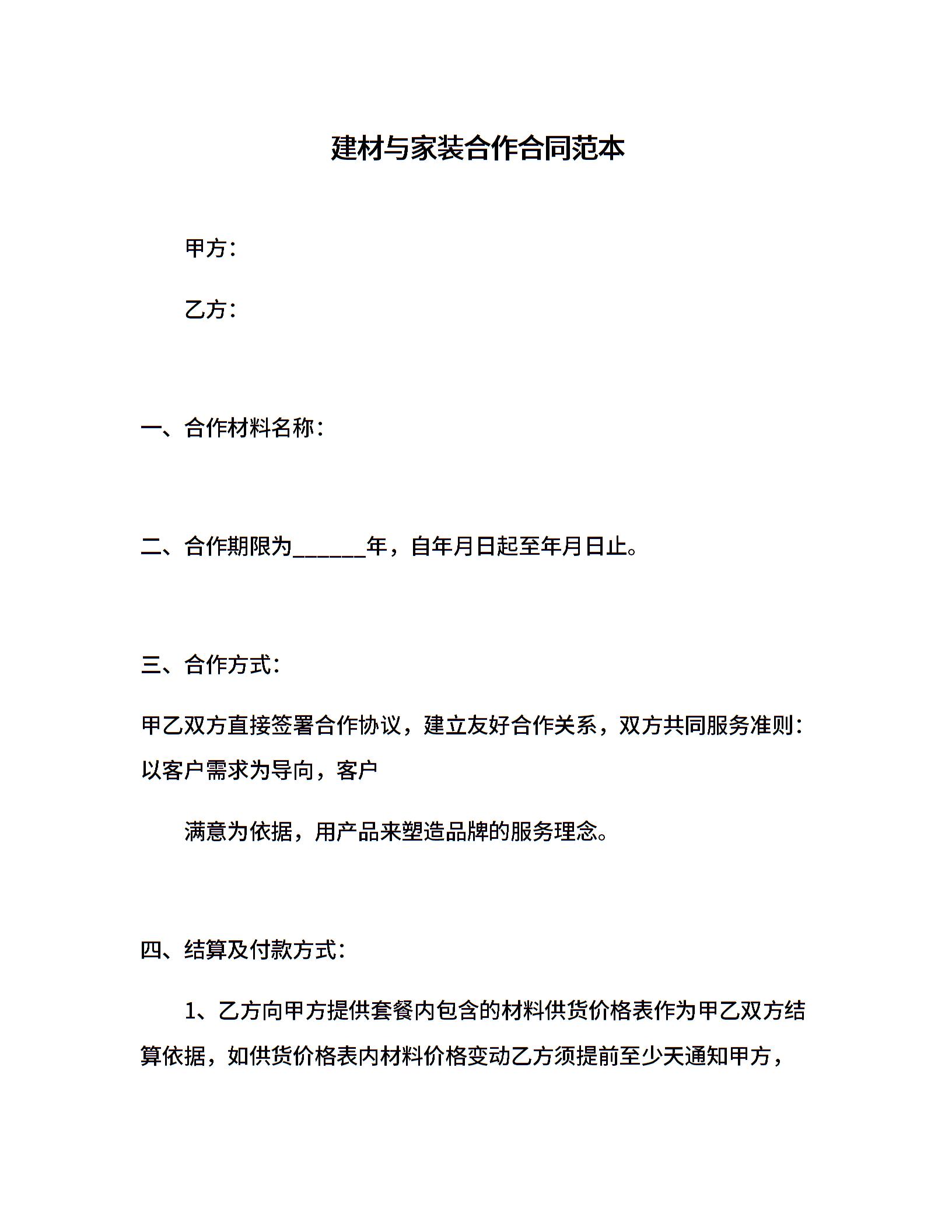 建材与家装合作合同范本