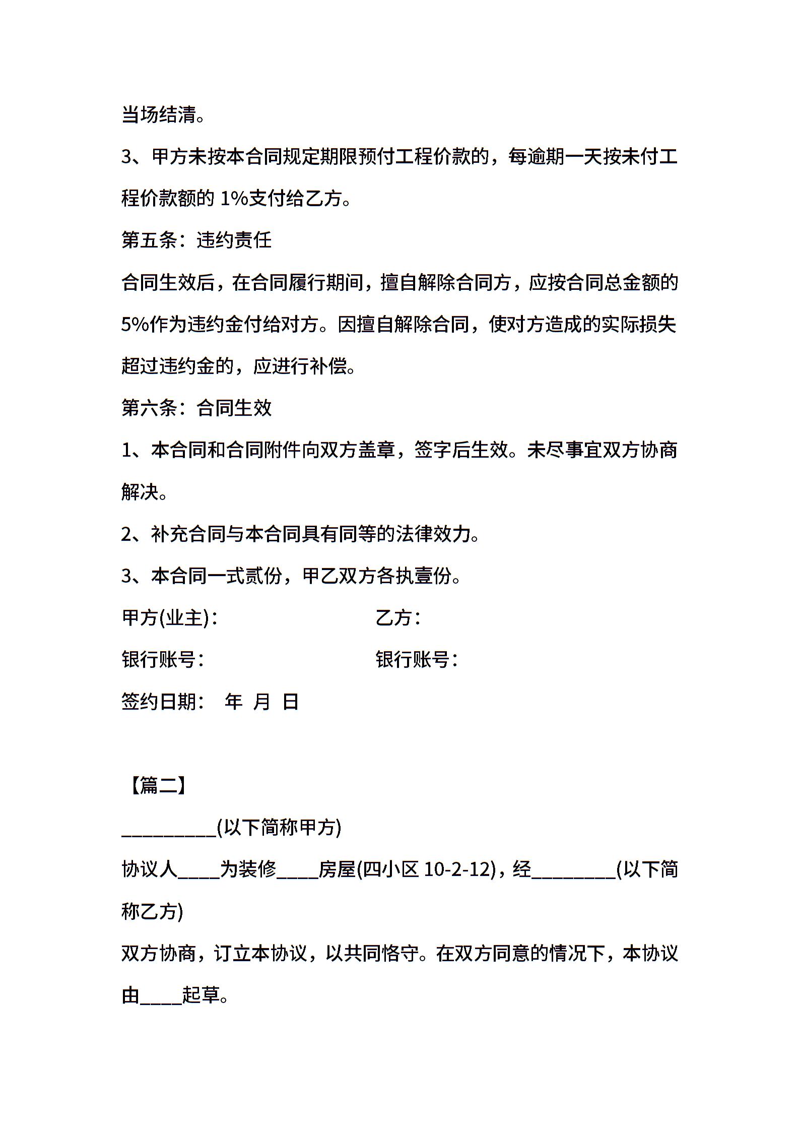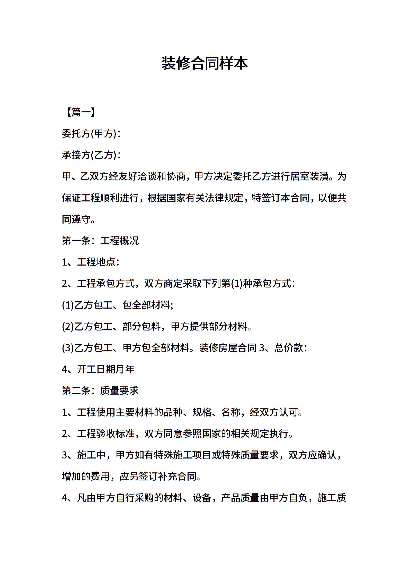 2021年装修合同样本