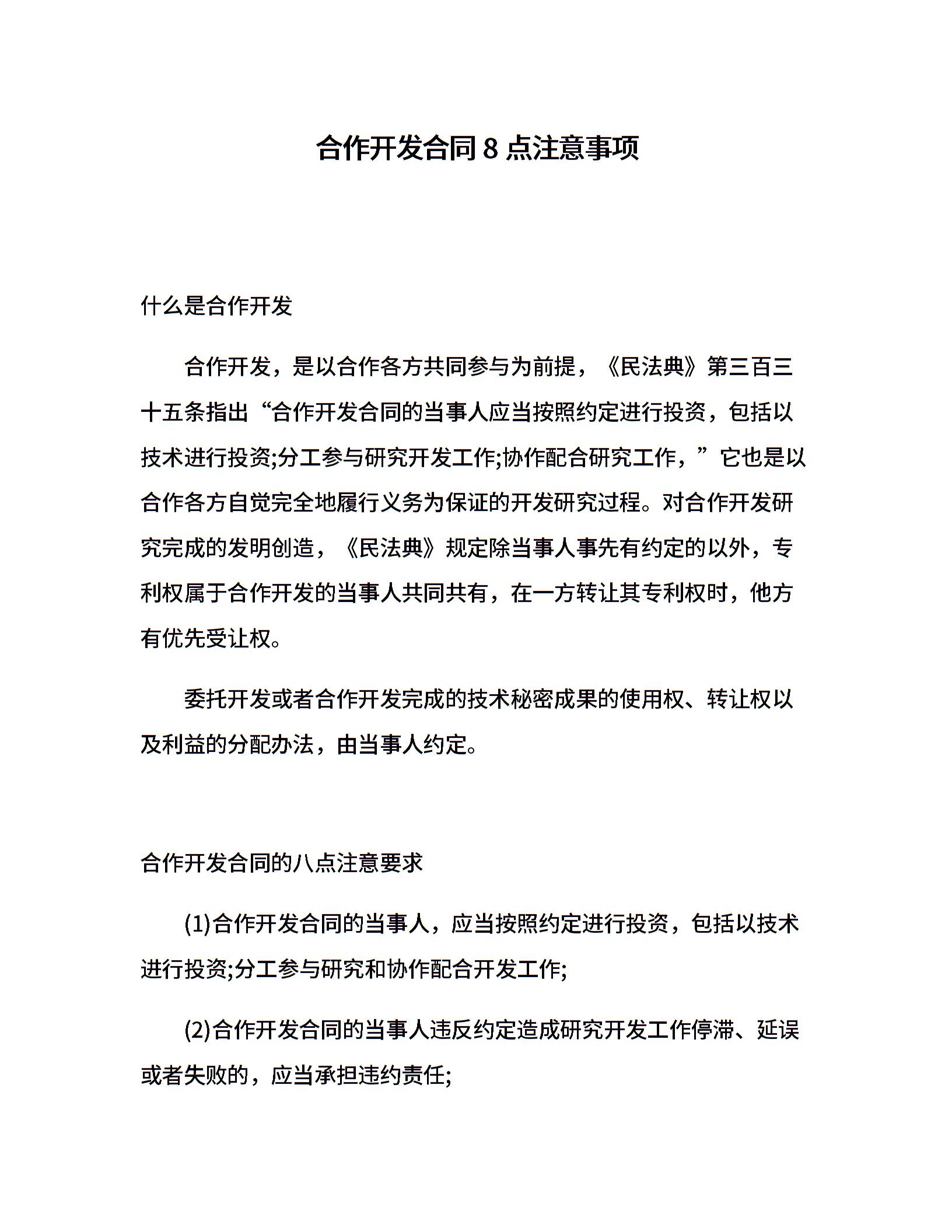 合作开发合同8点注意事项