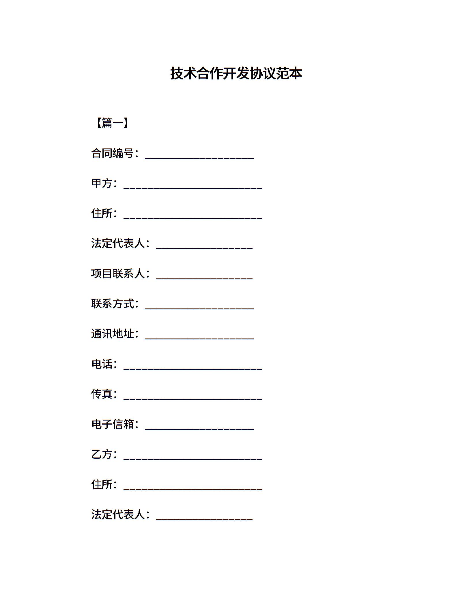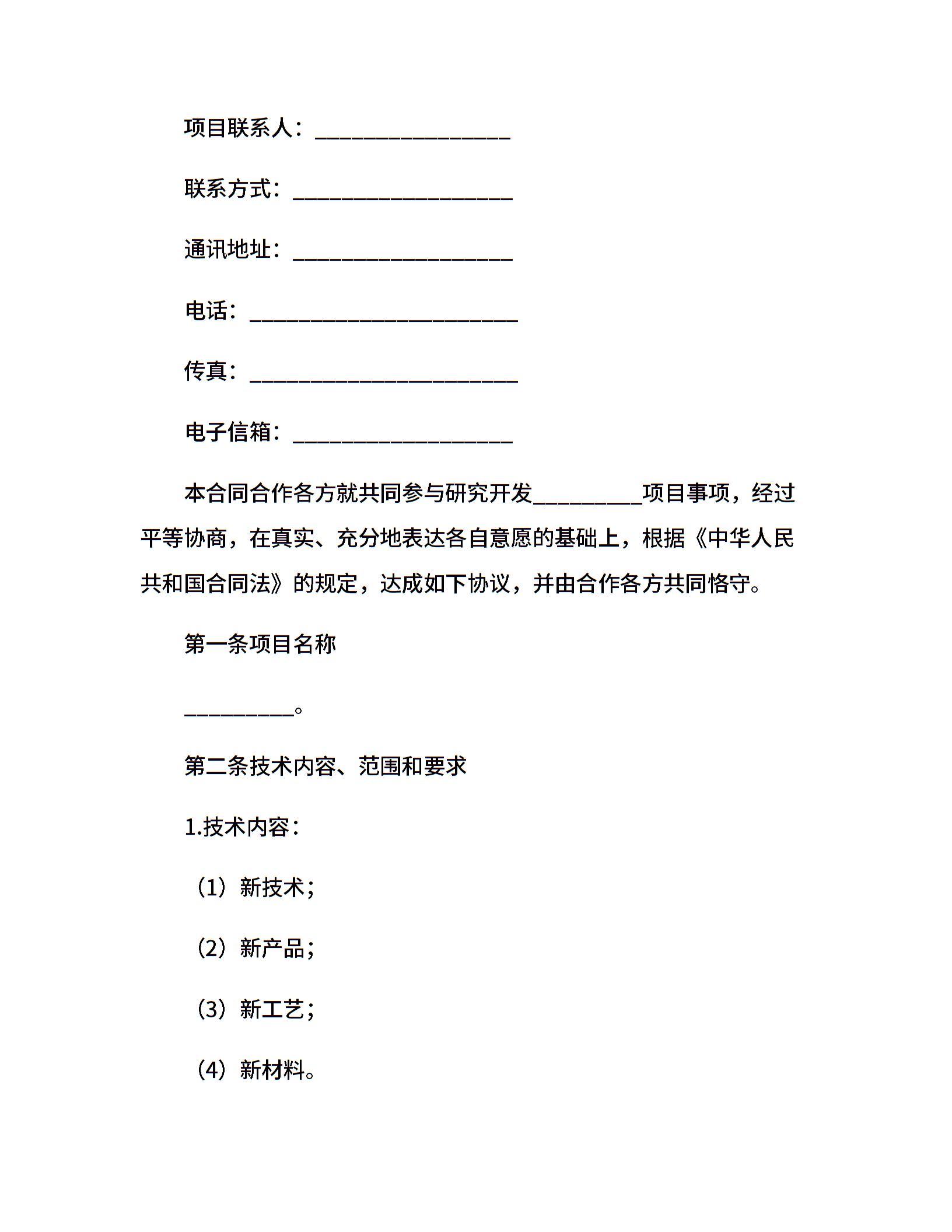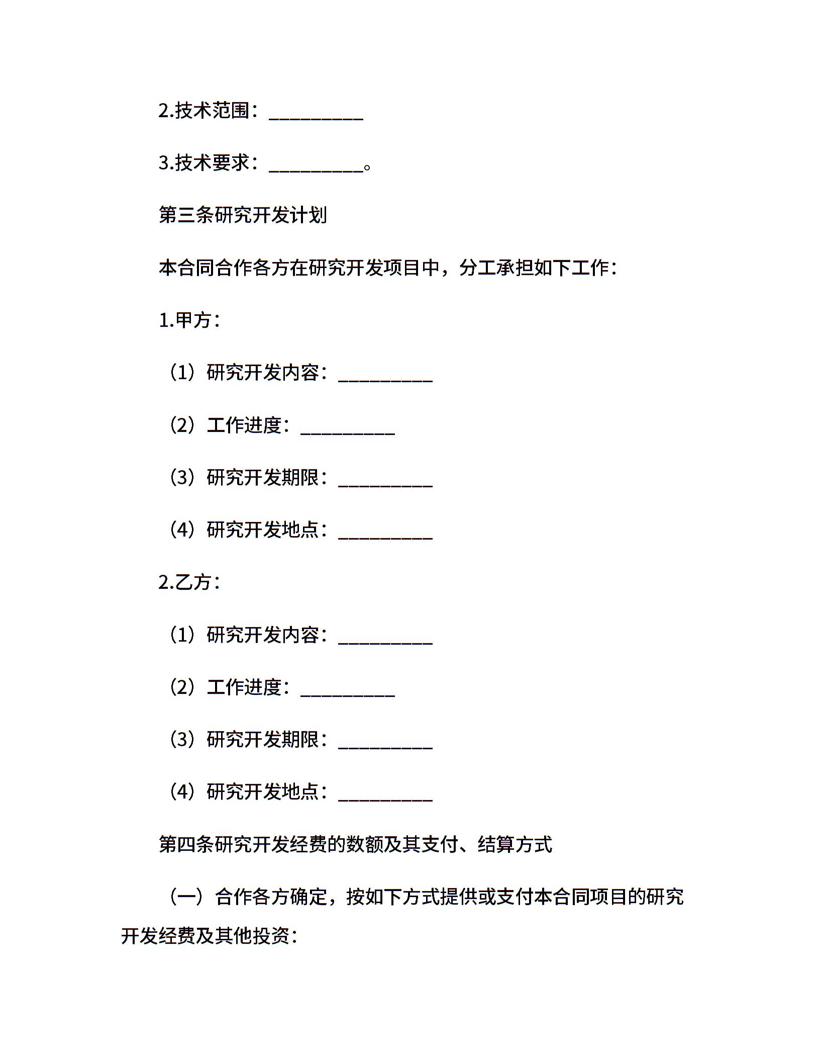 技术合作开发协议范本