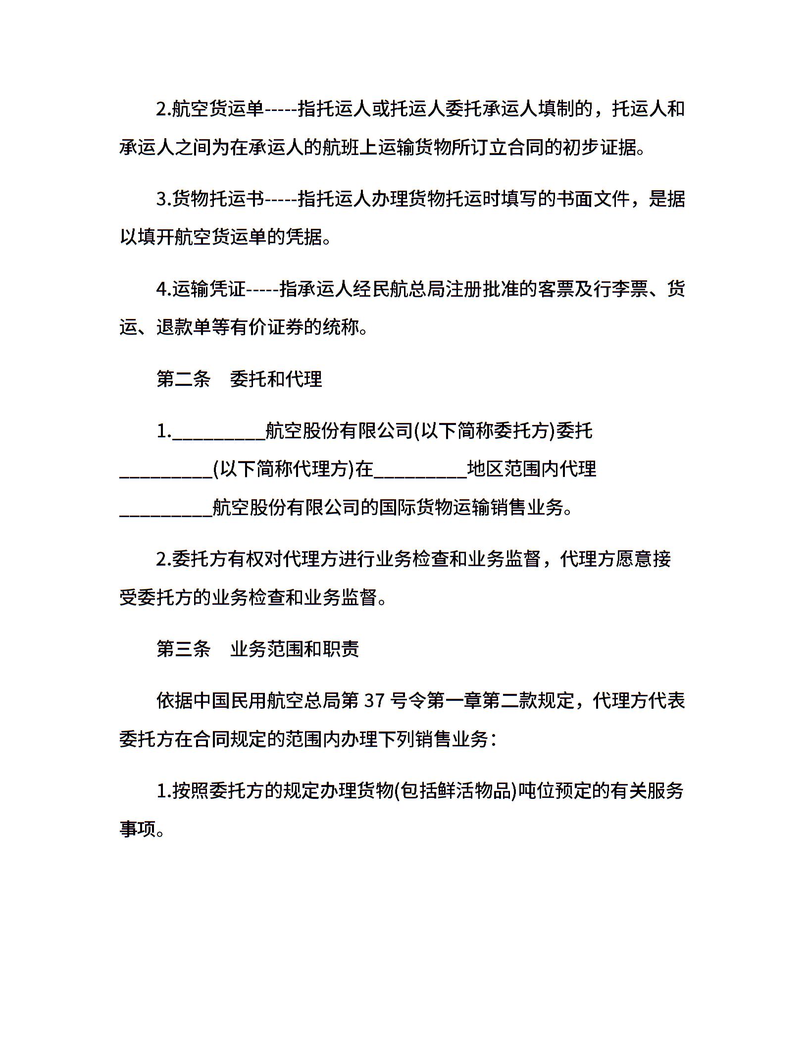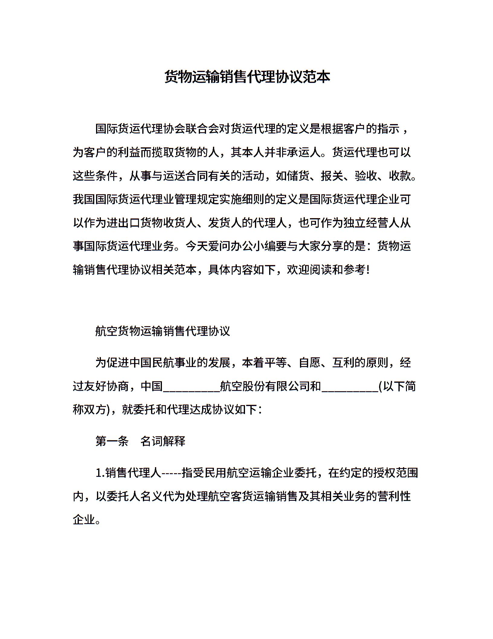 货物运输销售代理协议范本