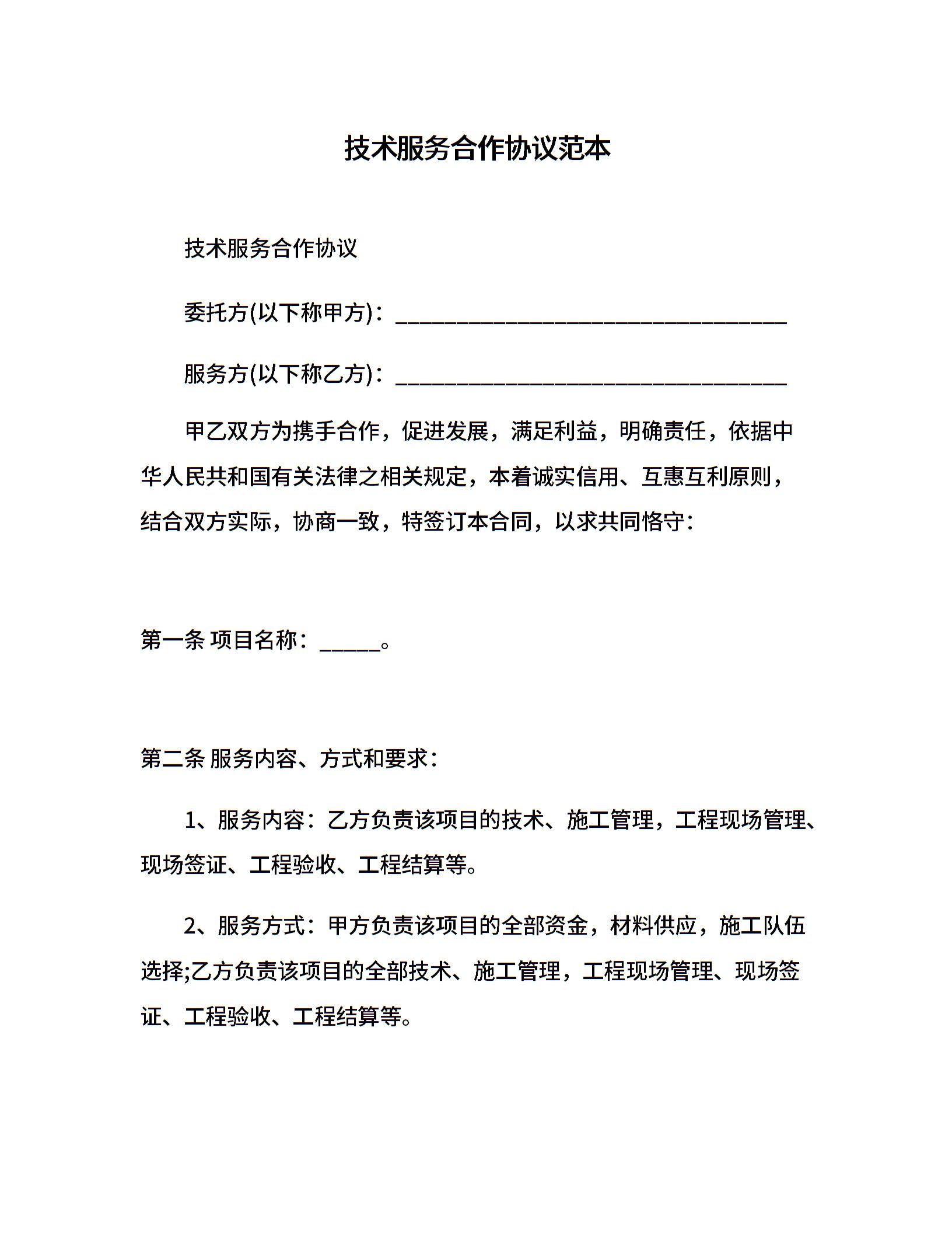 技术服务合作协议范本