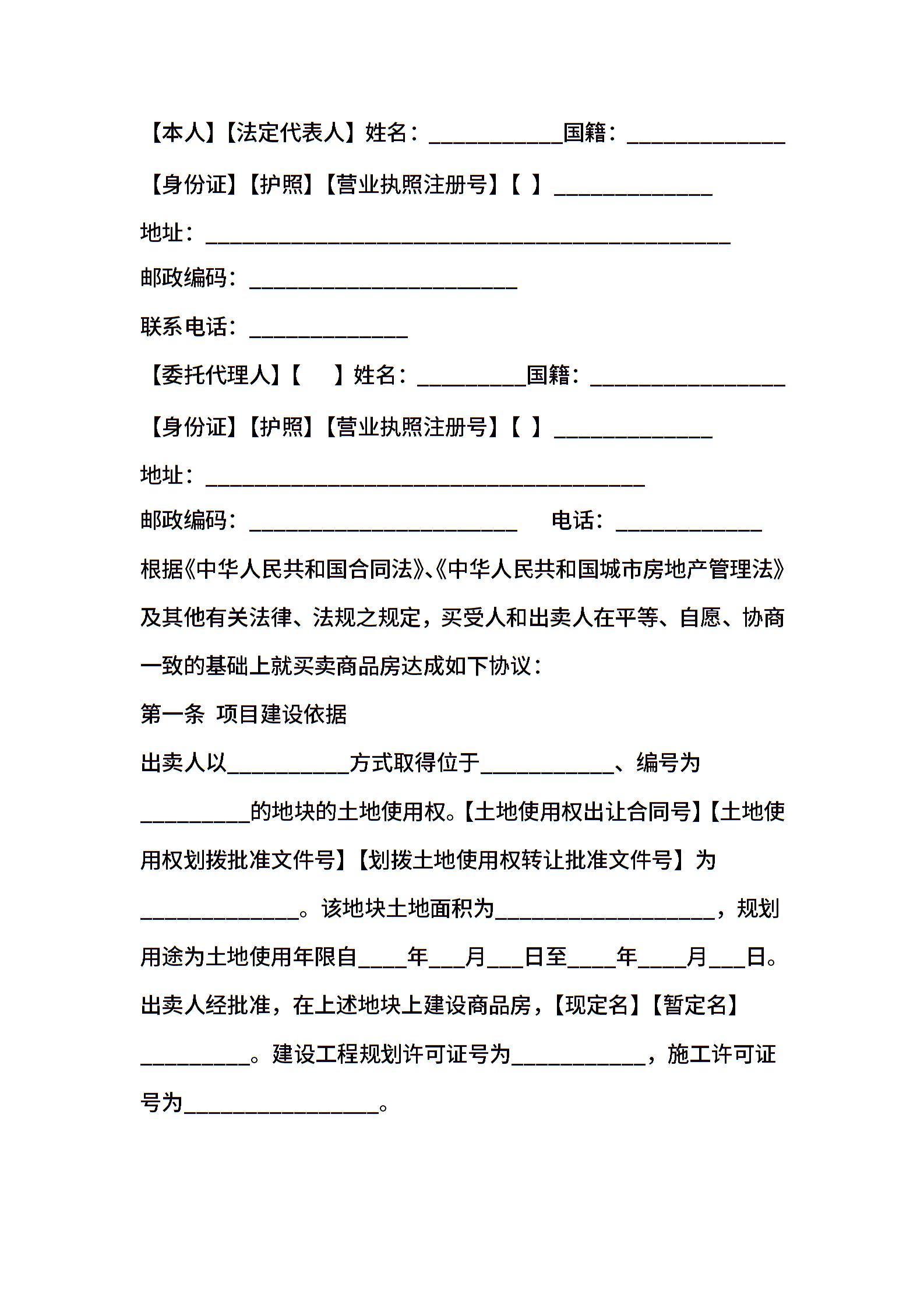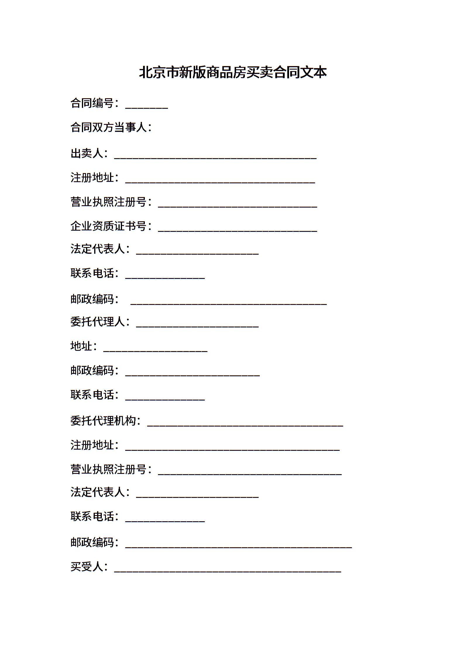 北京市新版商品房买卖合同文本