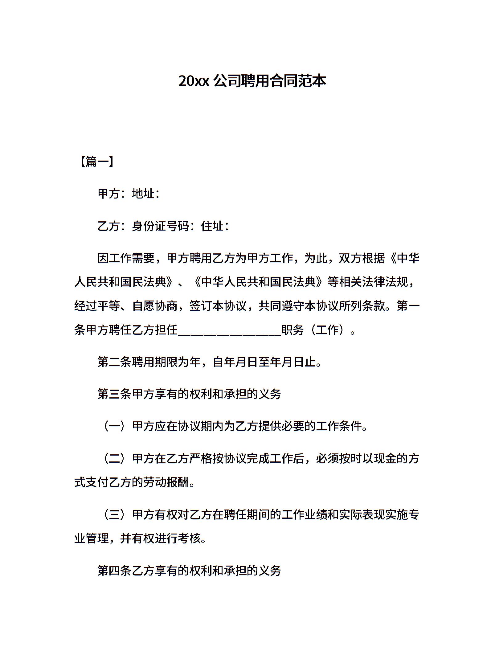 20xx公司聘用合同范本