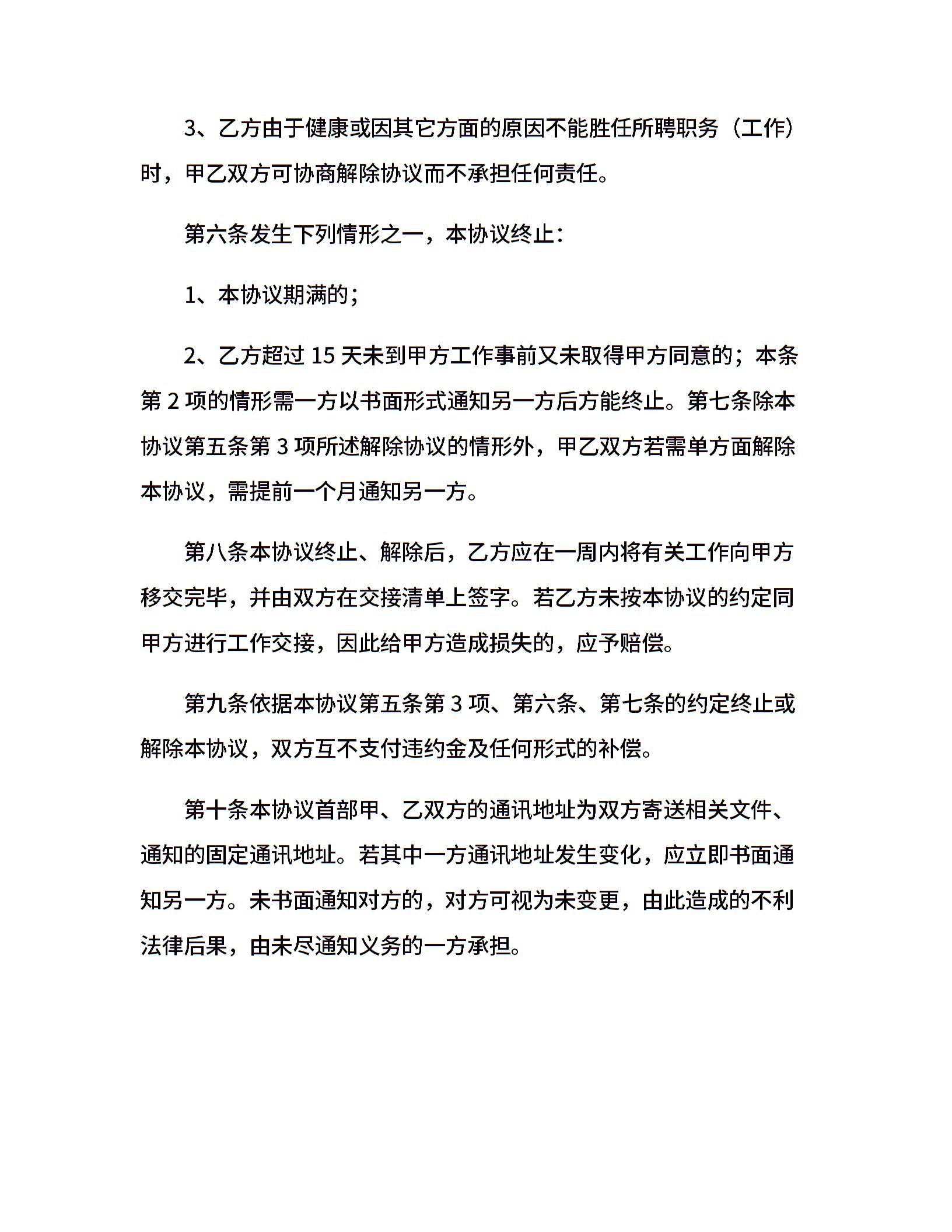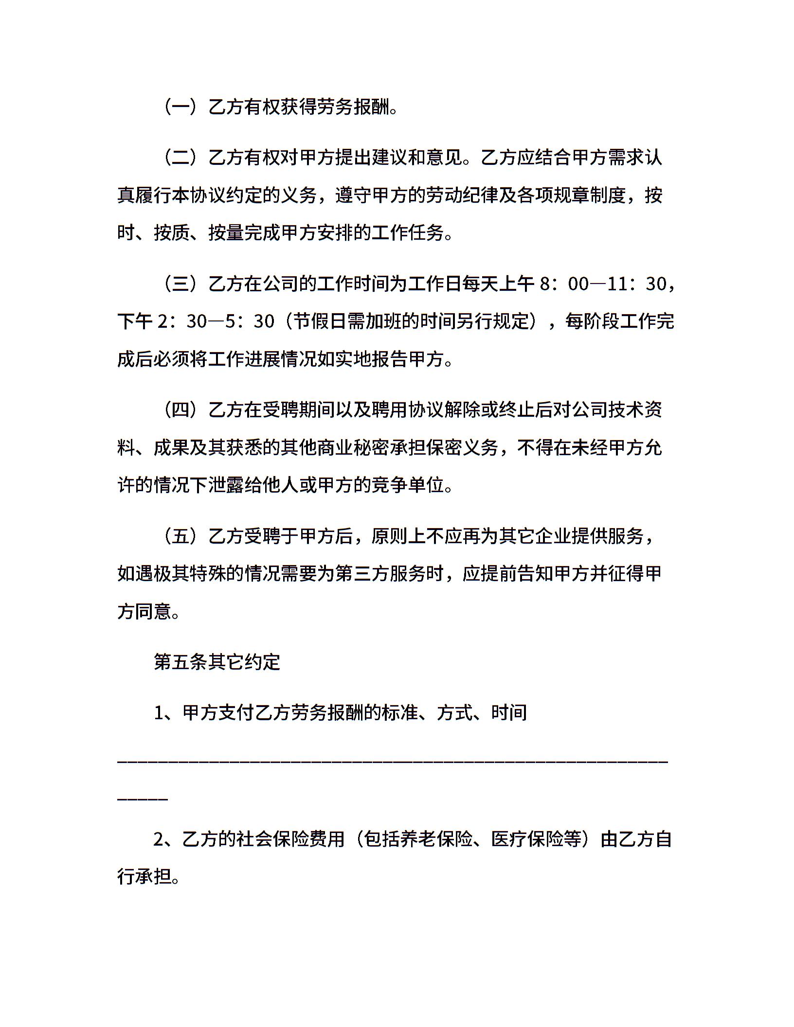 • 分类 聘用合同