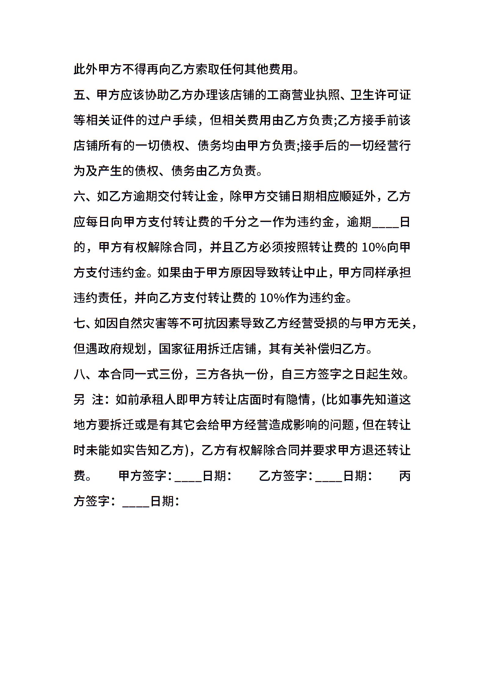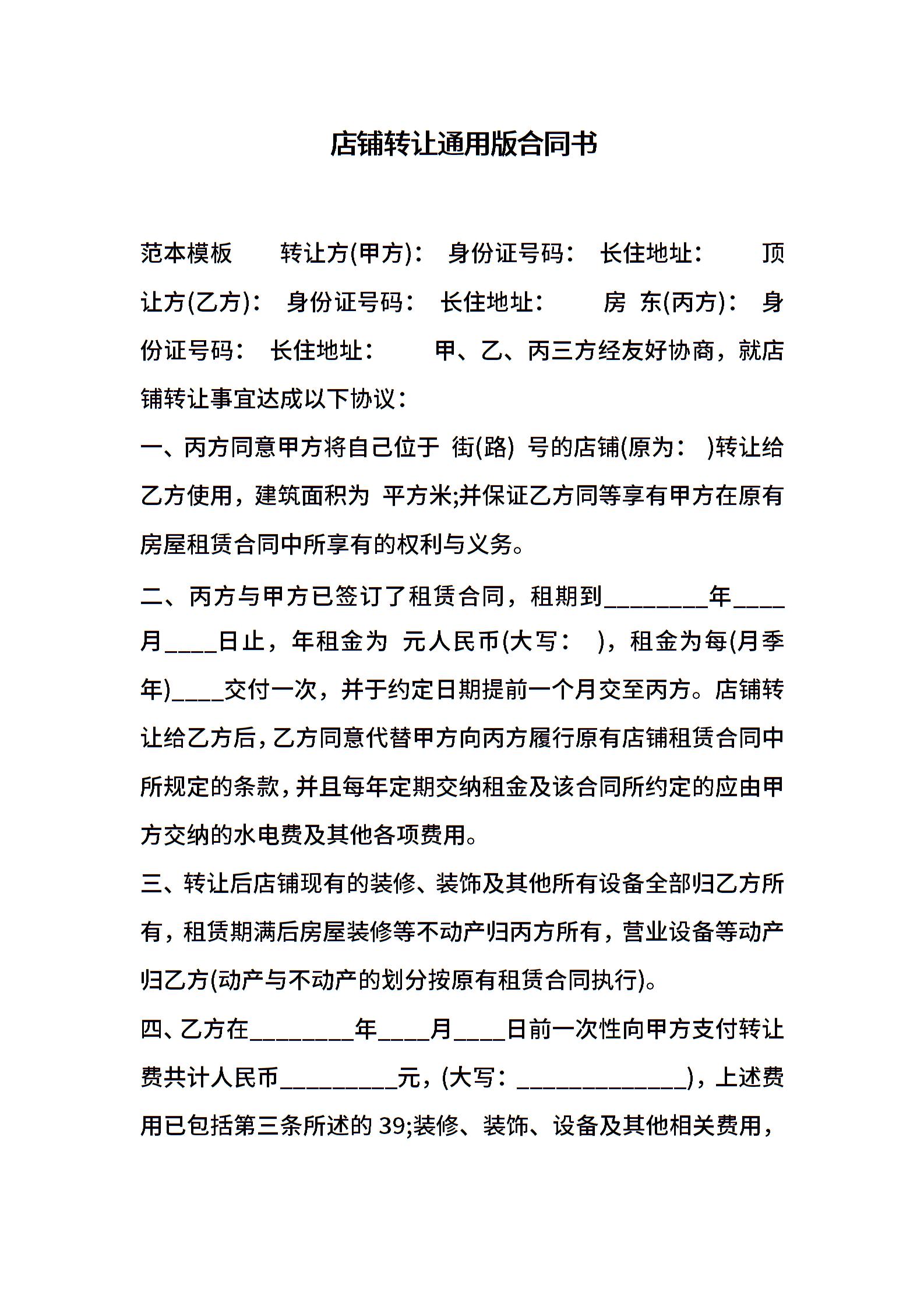 店铺转让通用版合同书