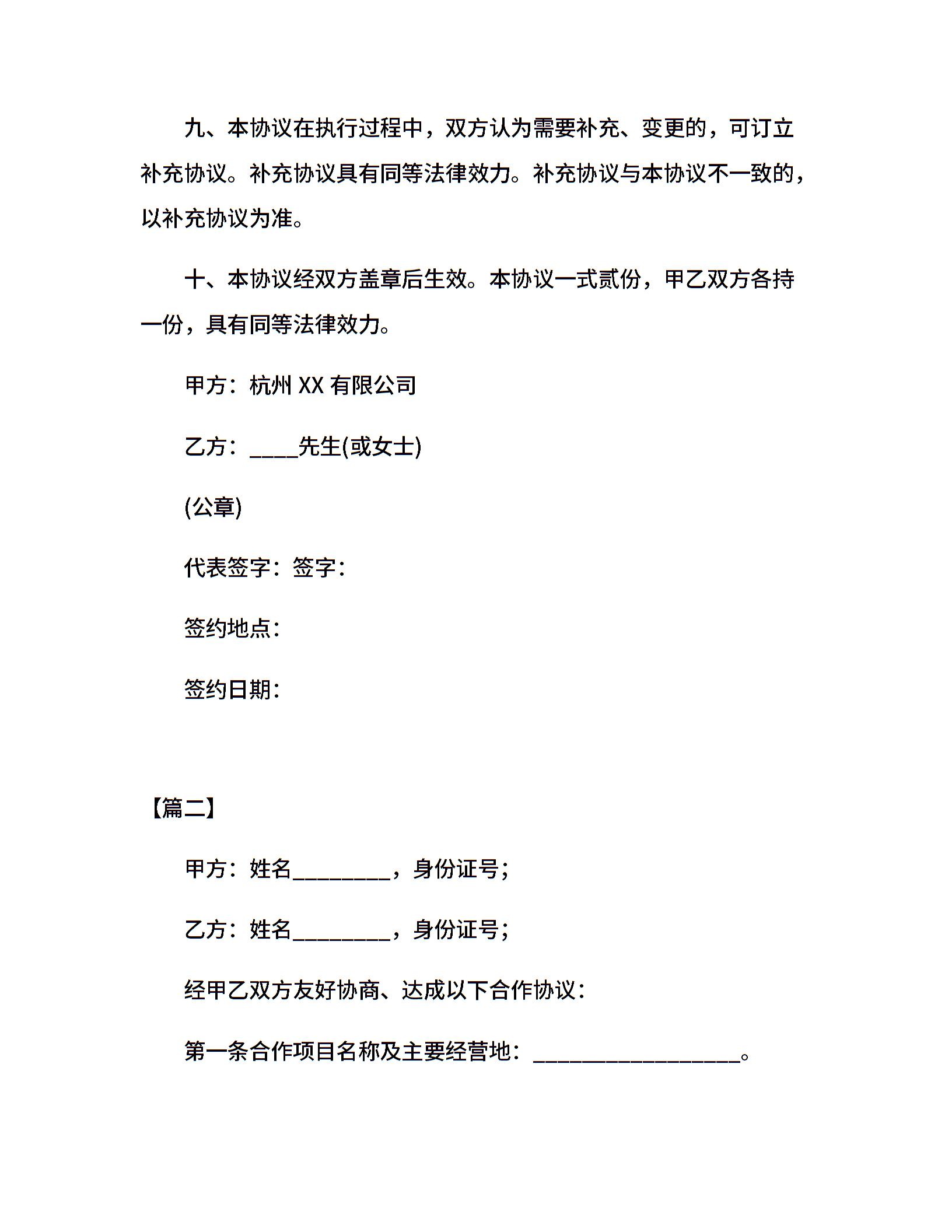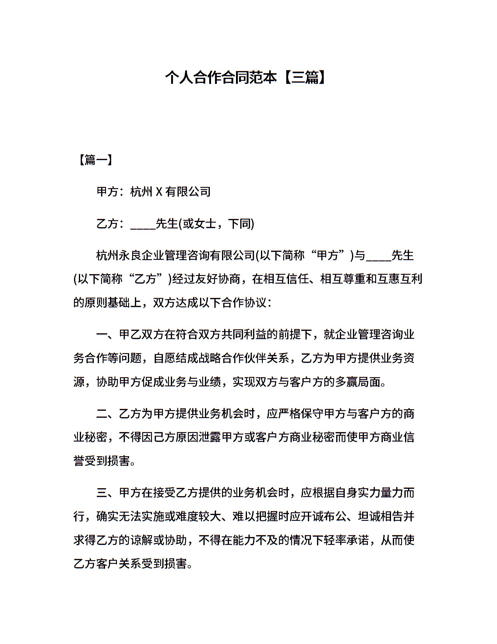 个人合作合同范本【三篇】