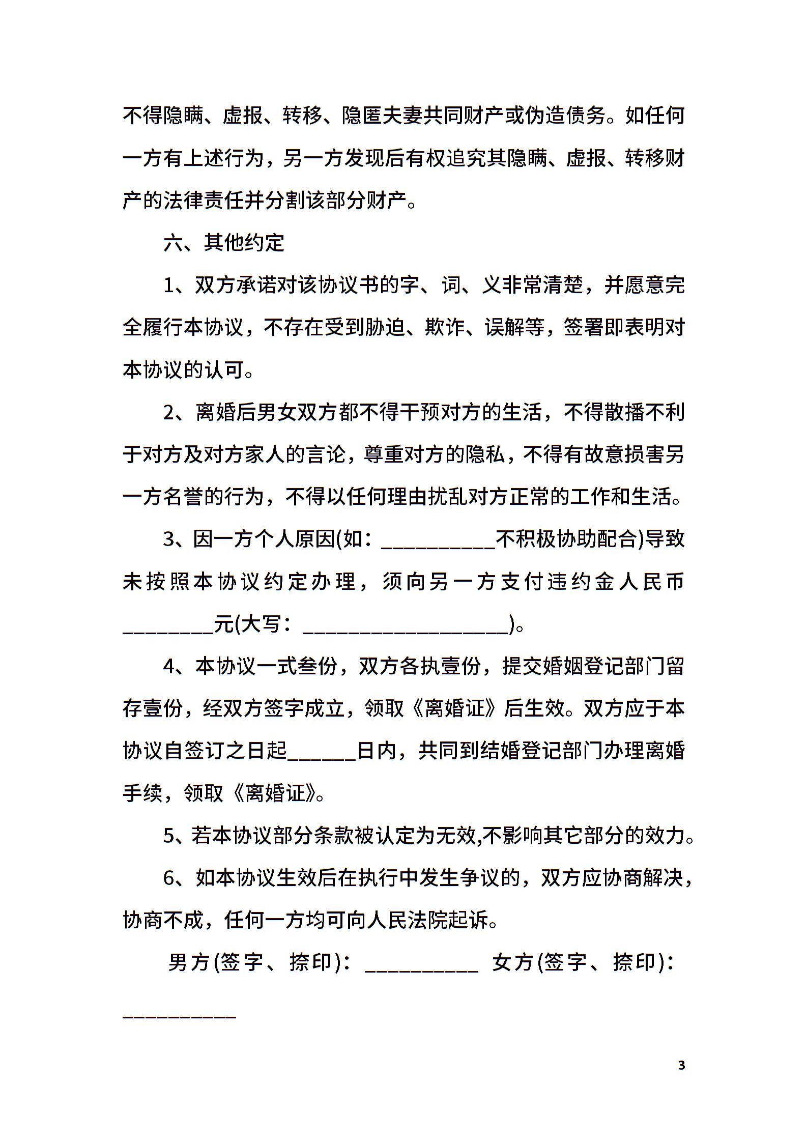 离婚协议常用样式