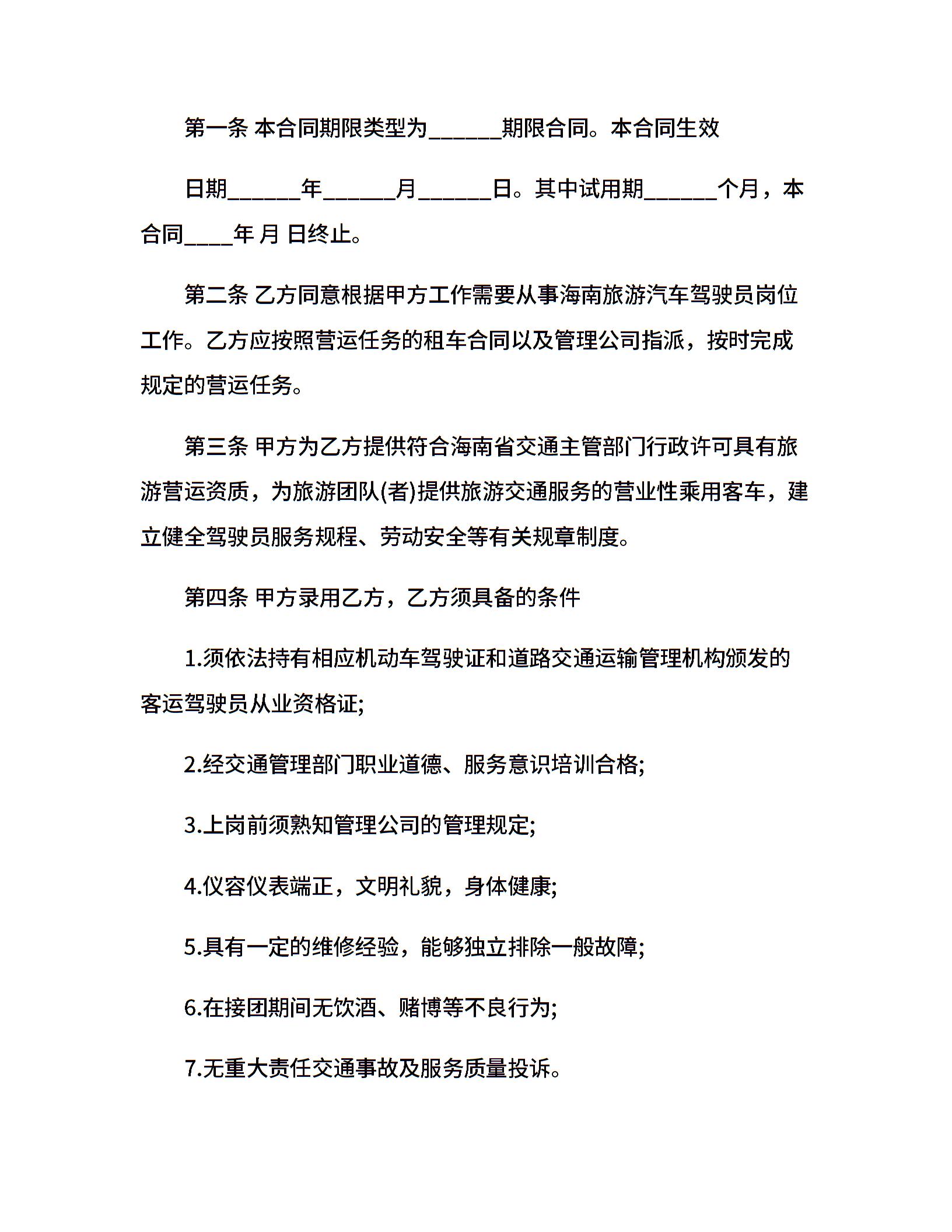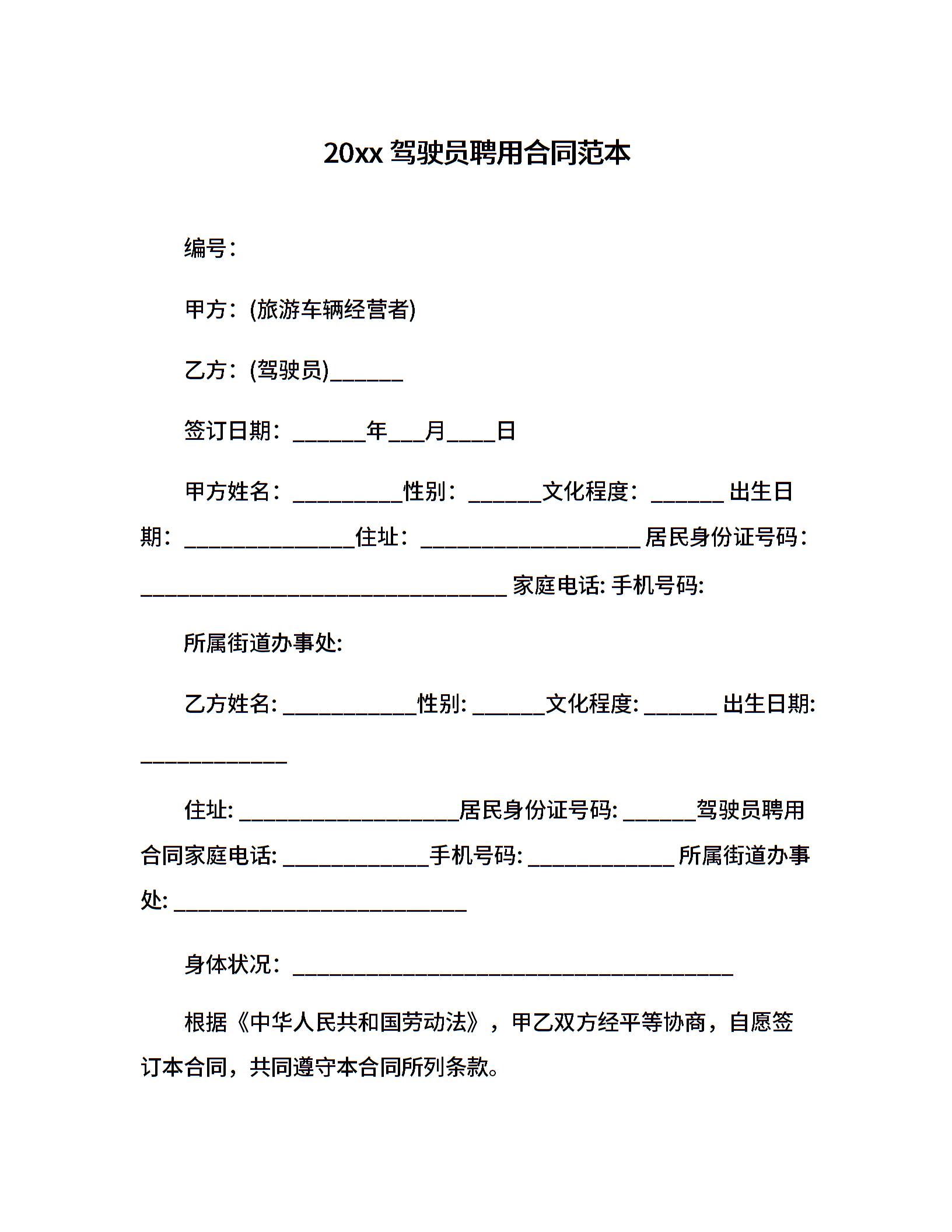 20xx驾驶员聘用合同范本