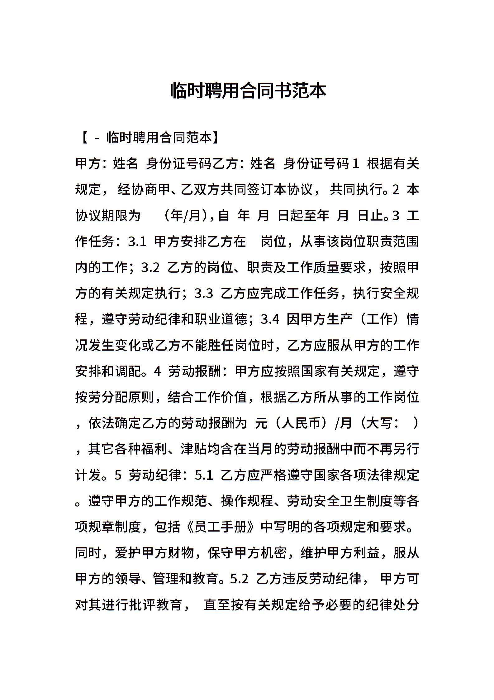 临时聘用合同书范本
